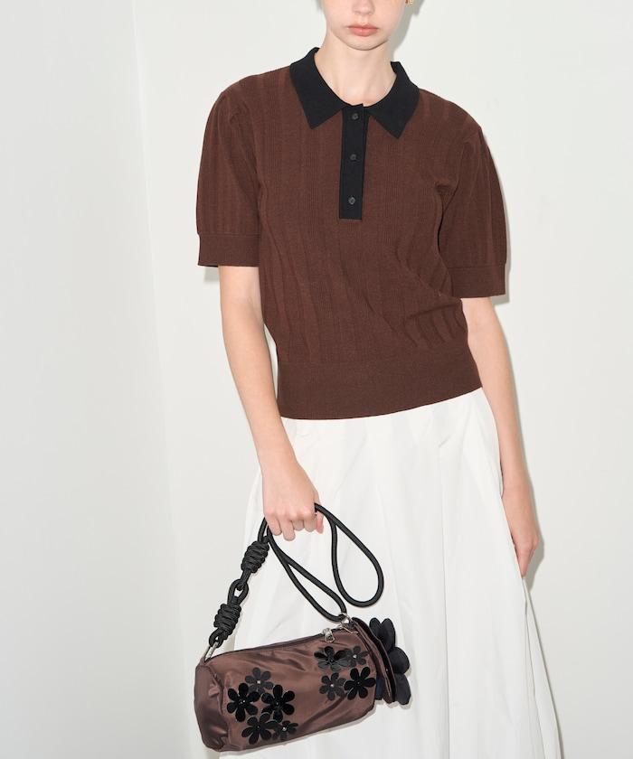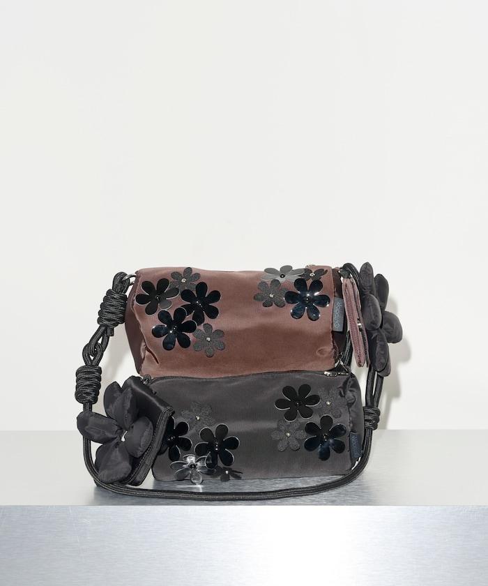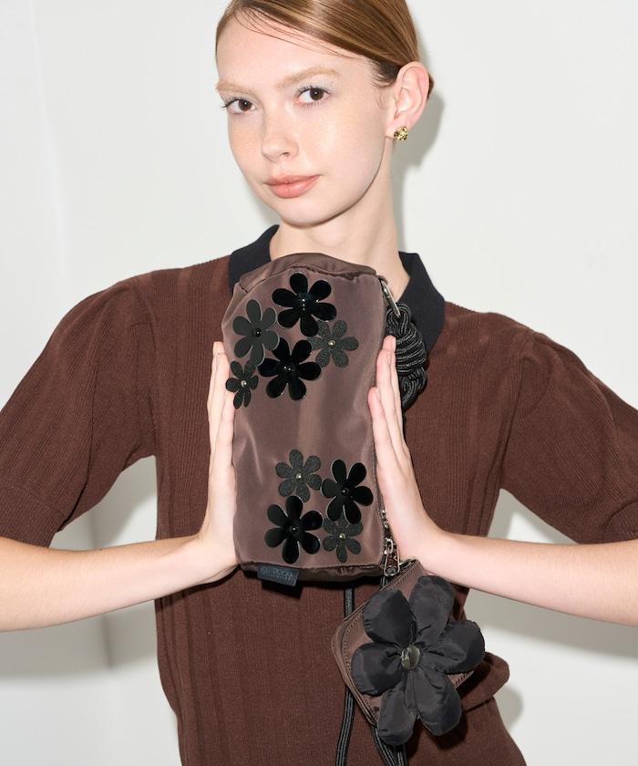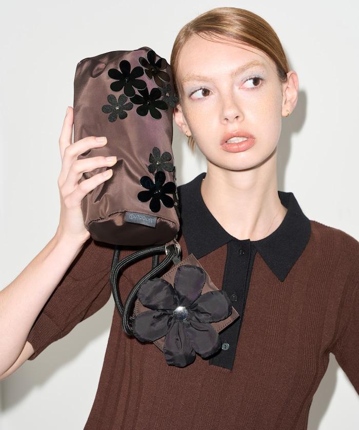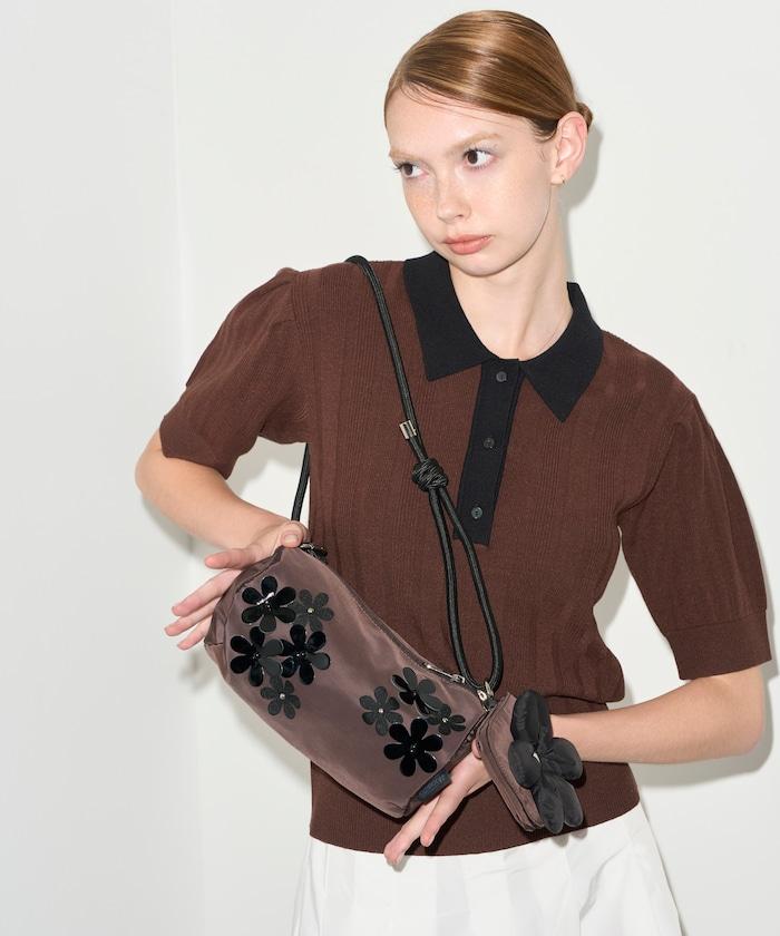 包包正面的獨特花朵貼布使其成為協調的點睛之筆。