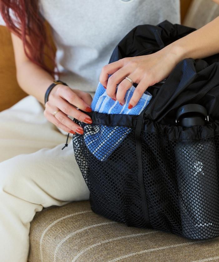 網狀外袋方便存放毛巾和換洗衣物等潮溼物品。