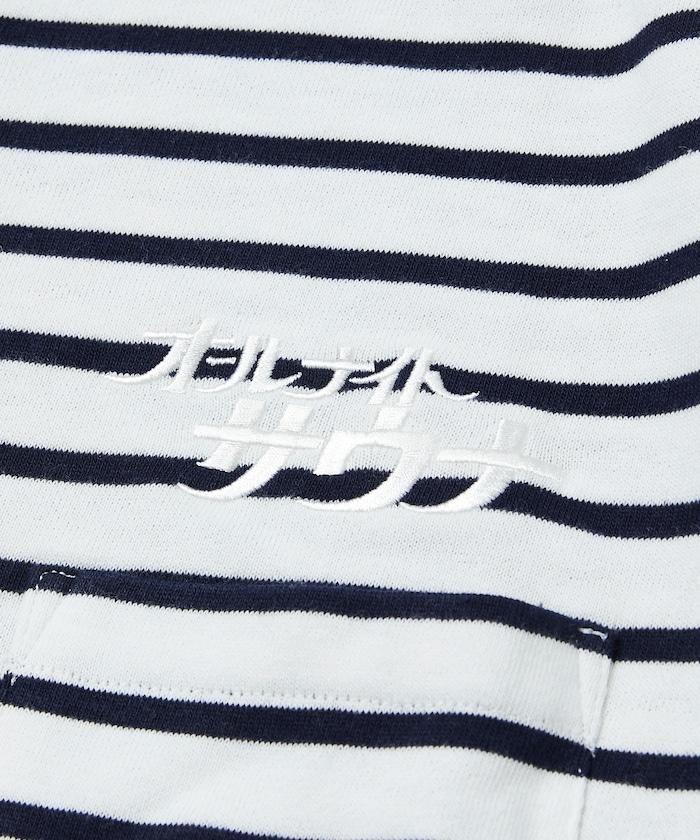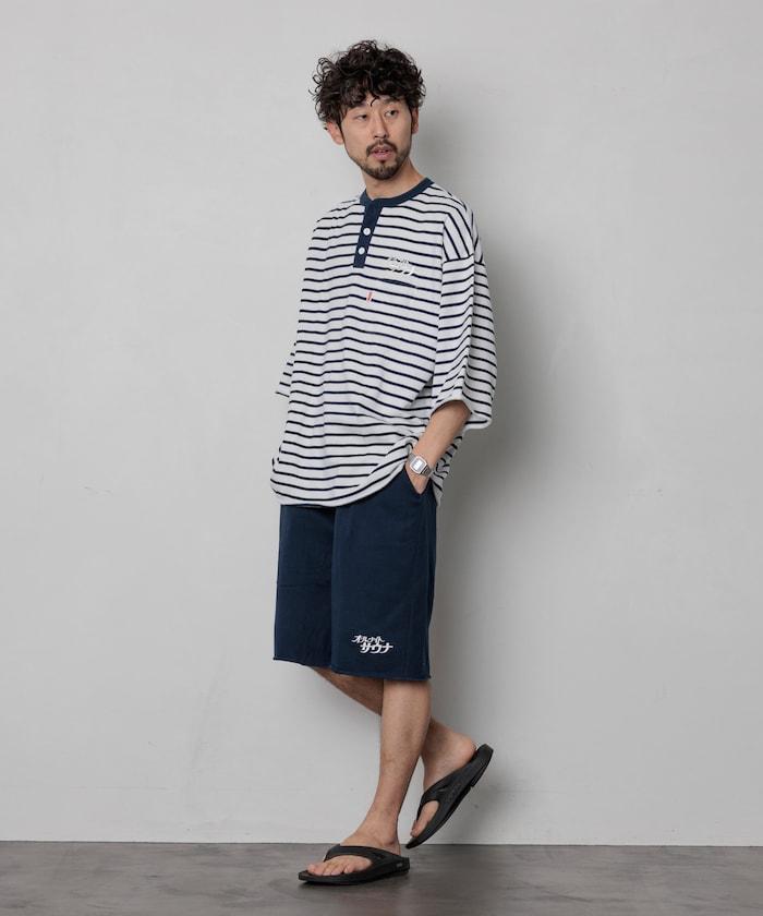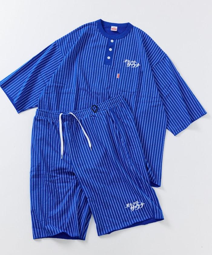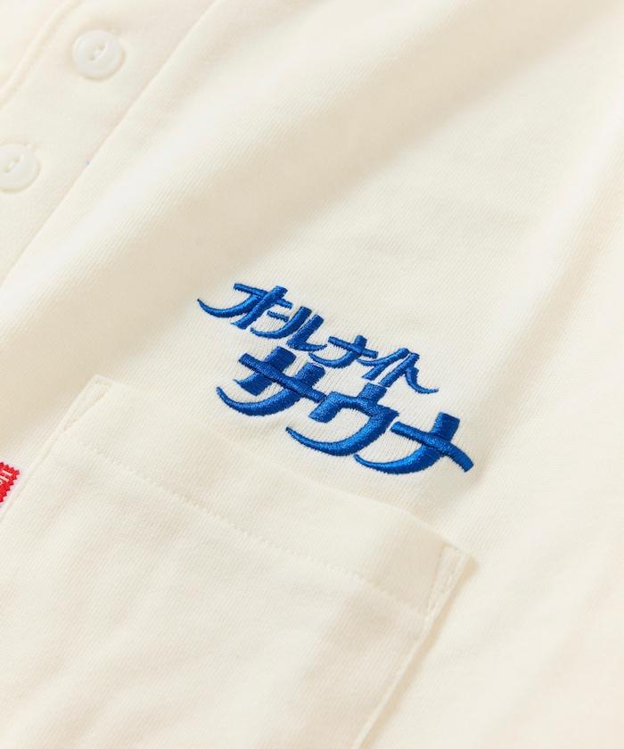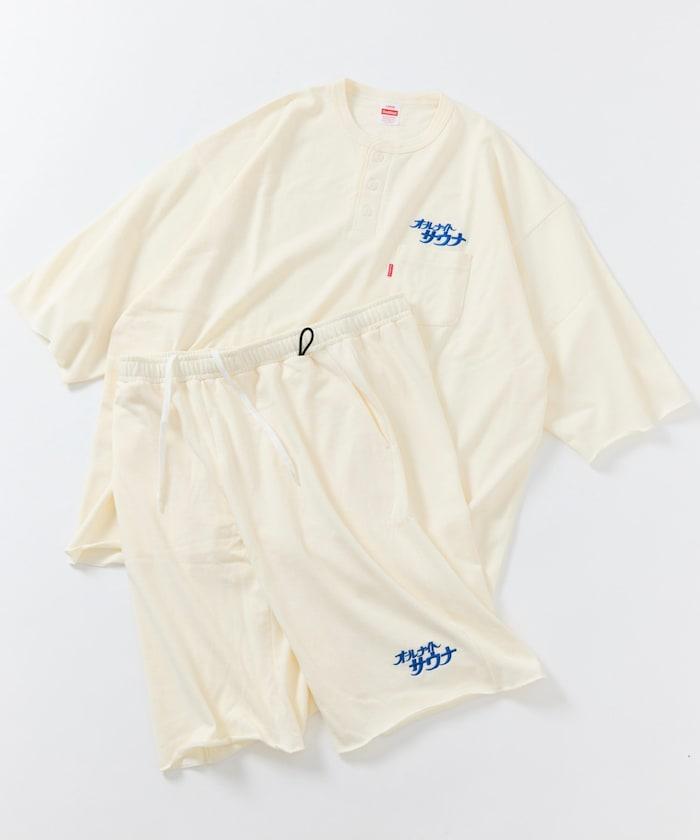 這款內衣的設計靈感來自膠囊酒店和超級公共浴室中常見的 "Kannai gi",上面繡有 SAUVENIR 標誌性的 "All Night Sauna "標識。