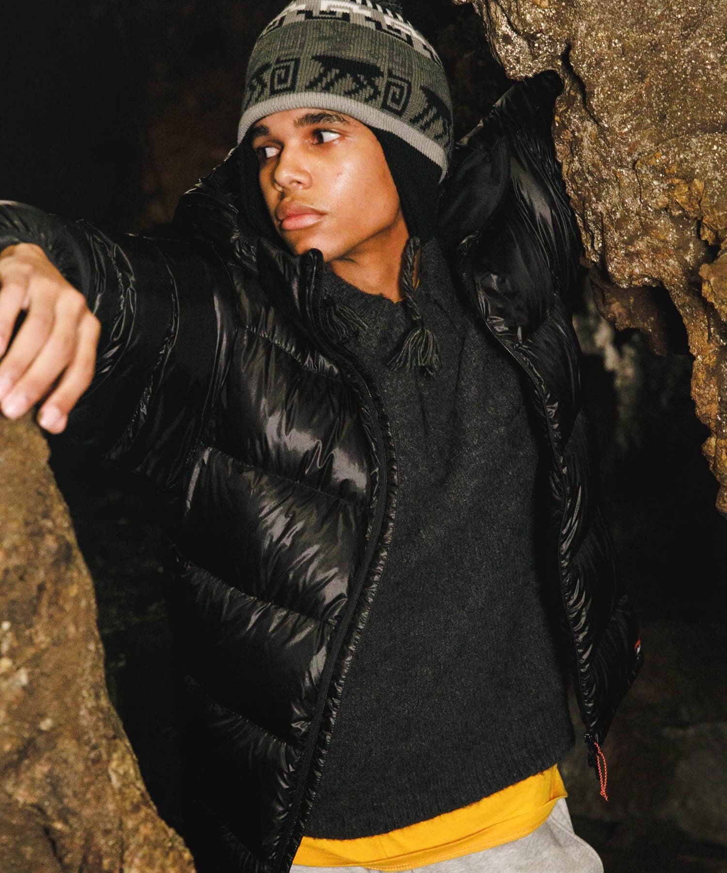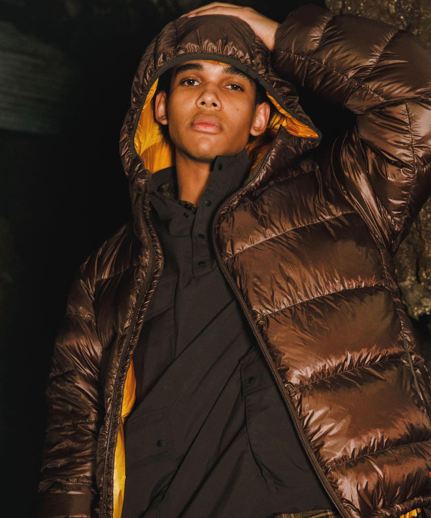 袖口和兜帽用彈力帶捆綁,防止冷空氣進入,而臉部和袖子周圍的細節設計則顯得整潔大方。下襬採用鬆緊紡錘形設計,可根據個人風格和氣溫調整輪廓。