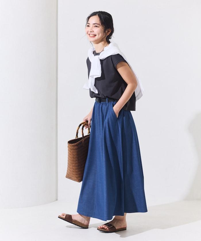 小巧的上衣和適度外擴的裙襬相得益彰,營造出女性的柔美氣質,只需隨意穿著就能完成搭配。