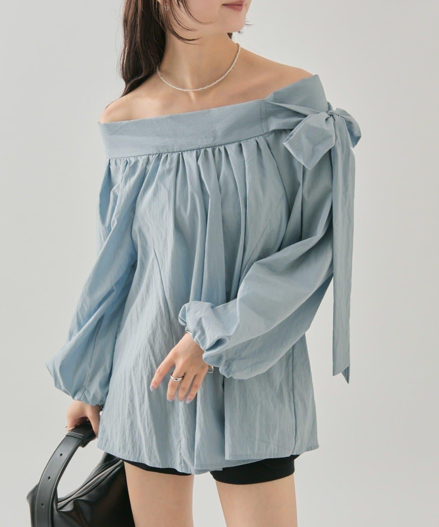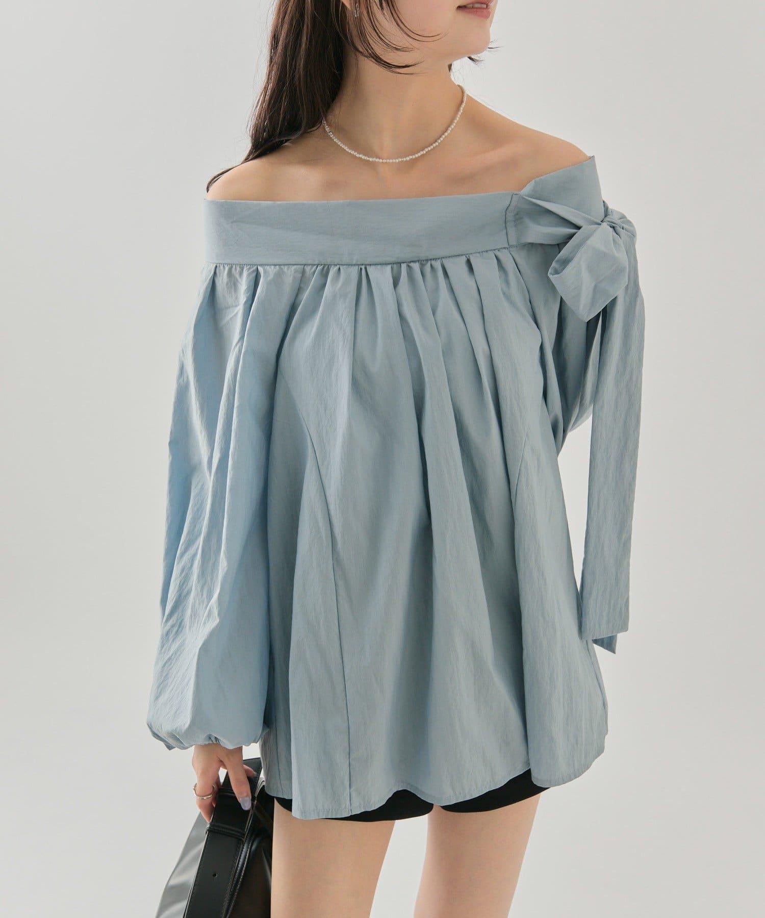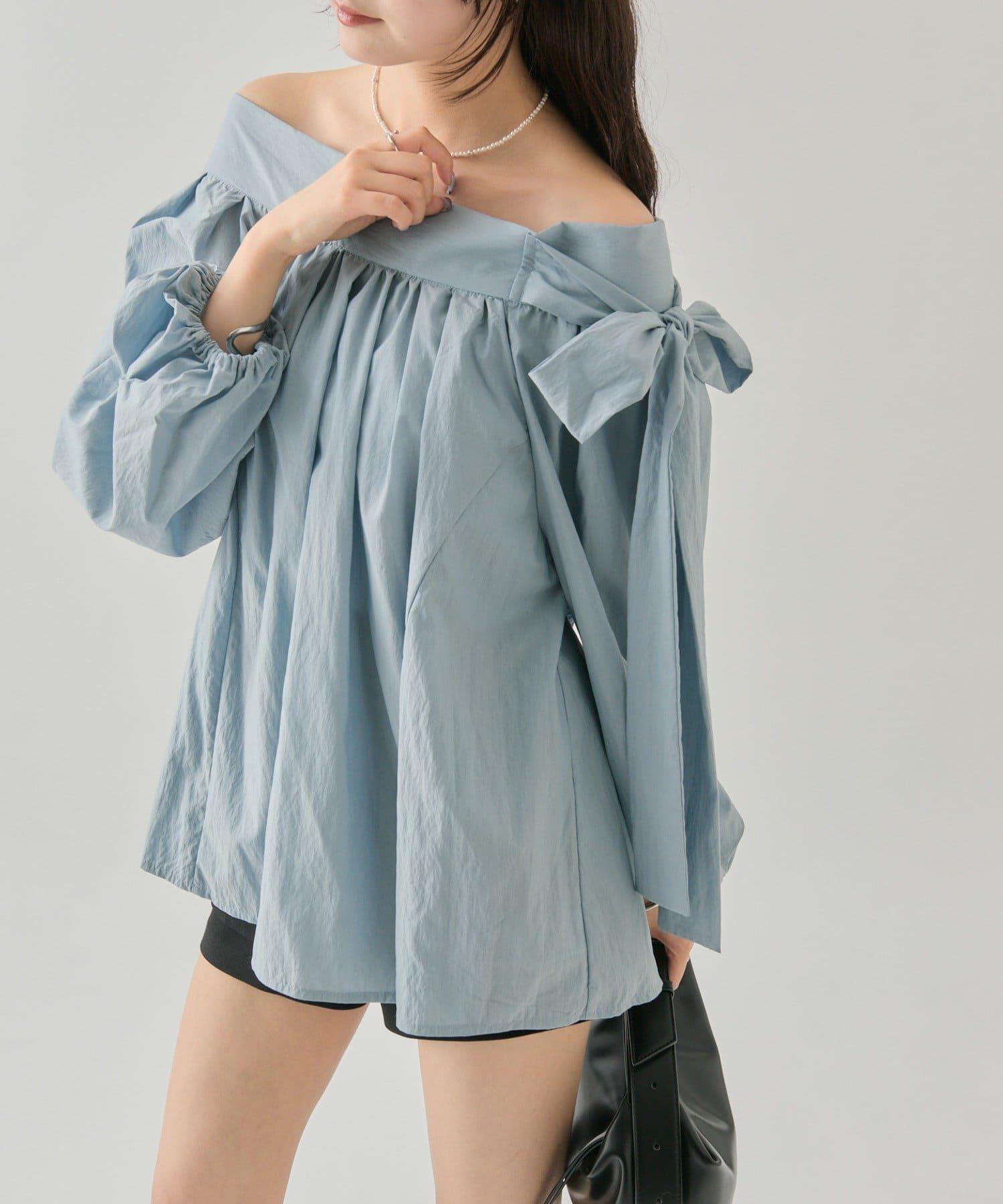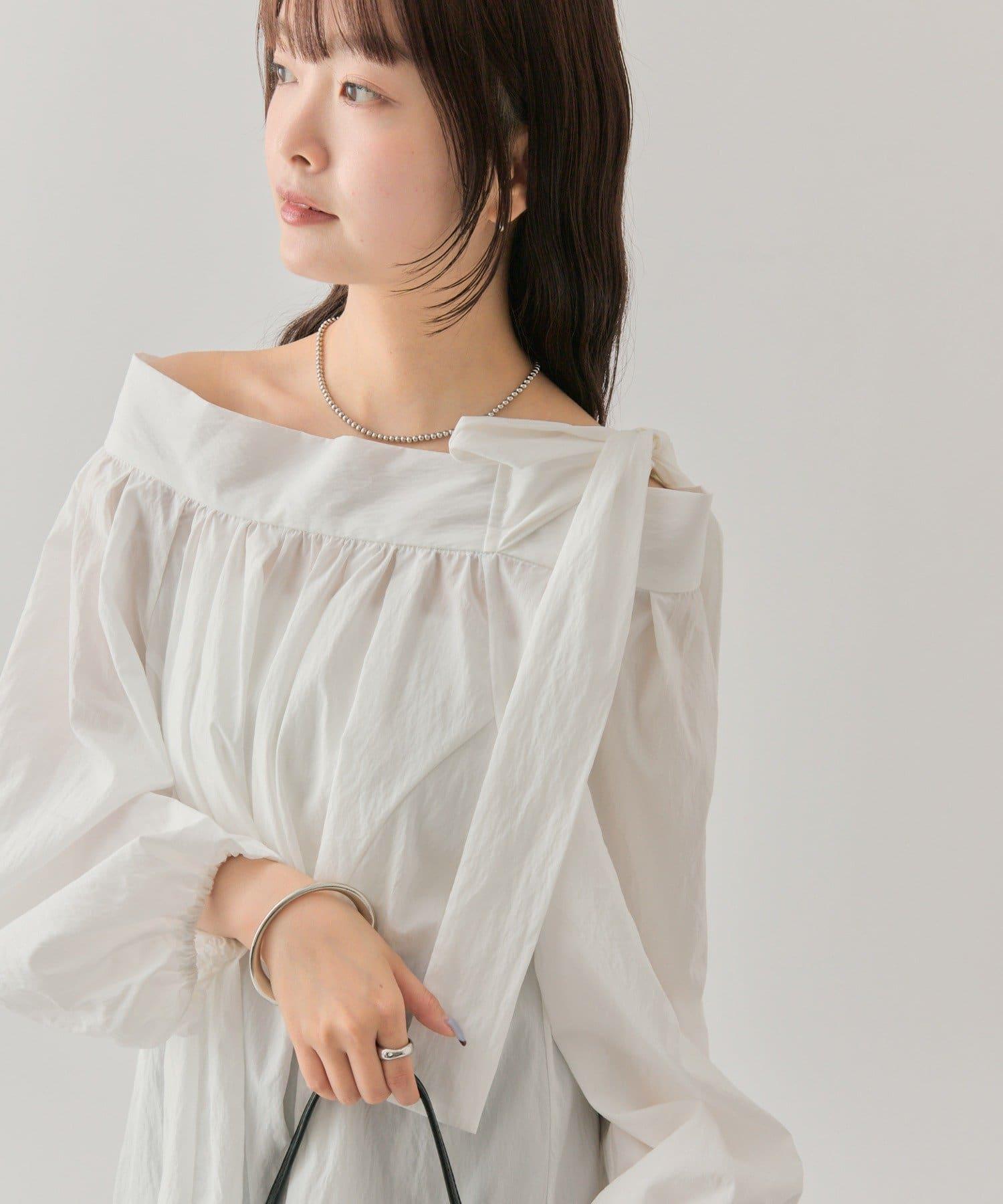肩部的緞帶是吸引眼球的可愛單品♡肩部以外的部分也是很好地展現肩部線條的單品。