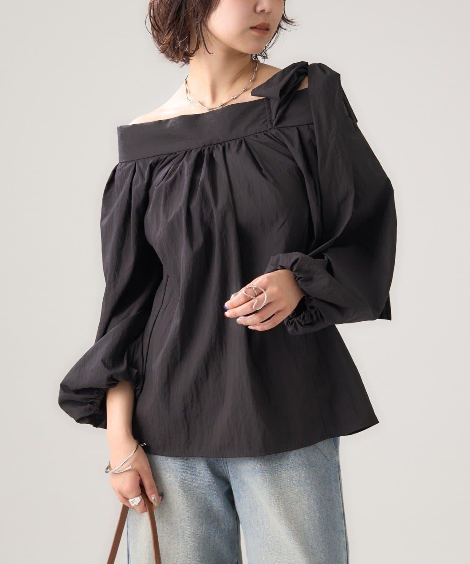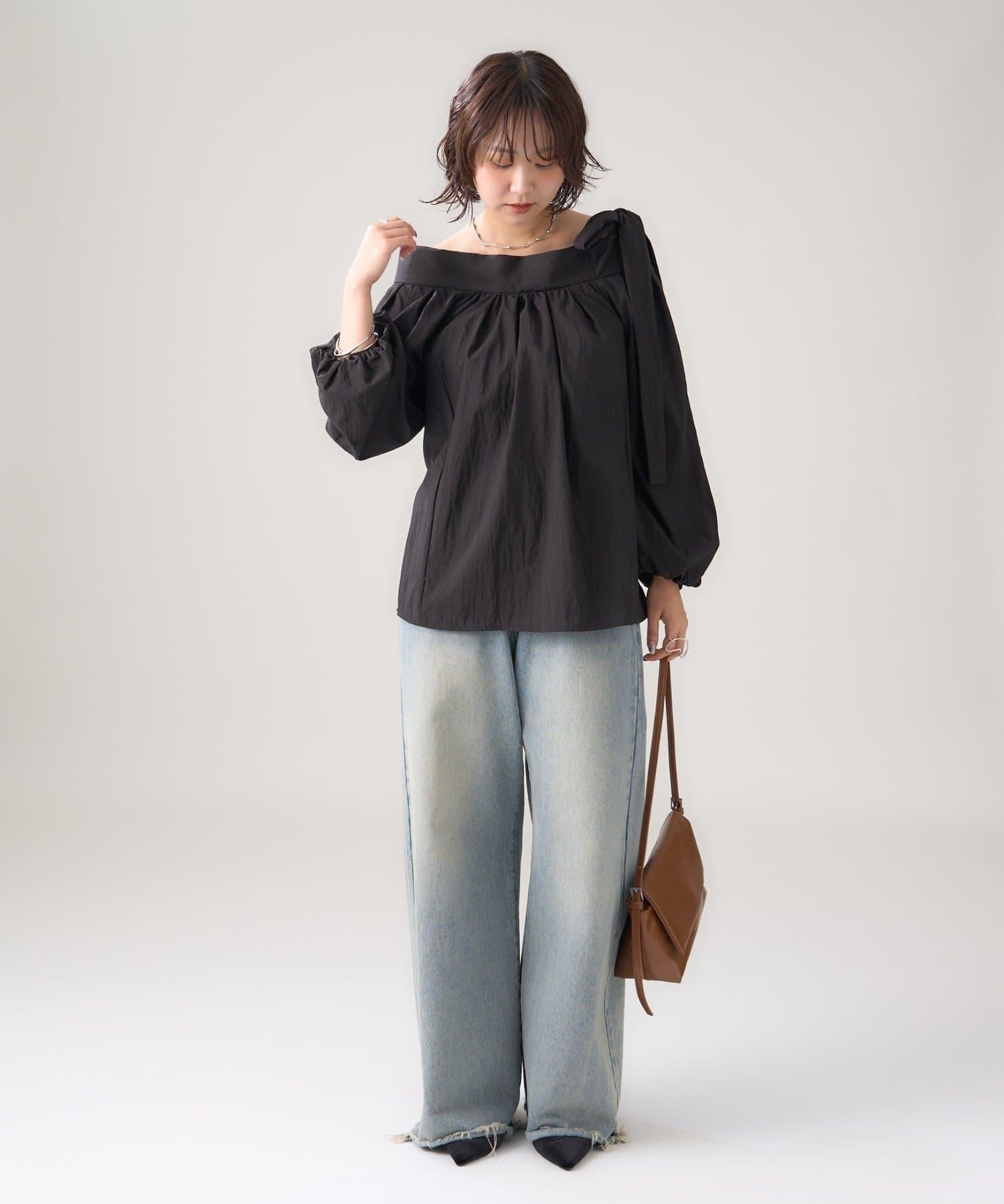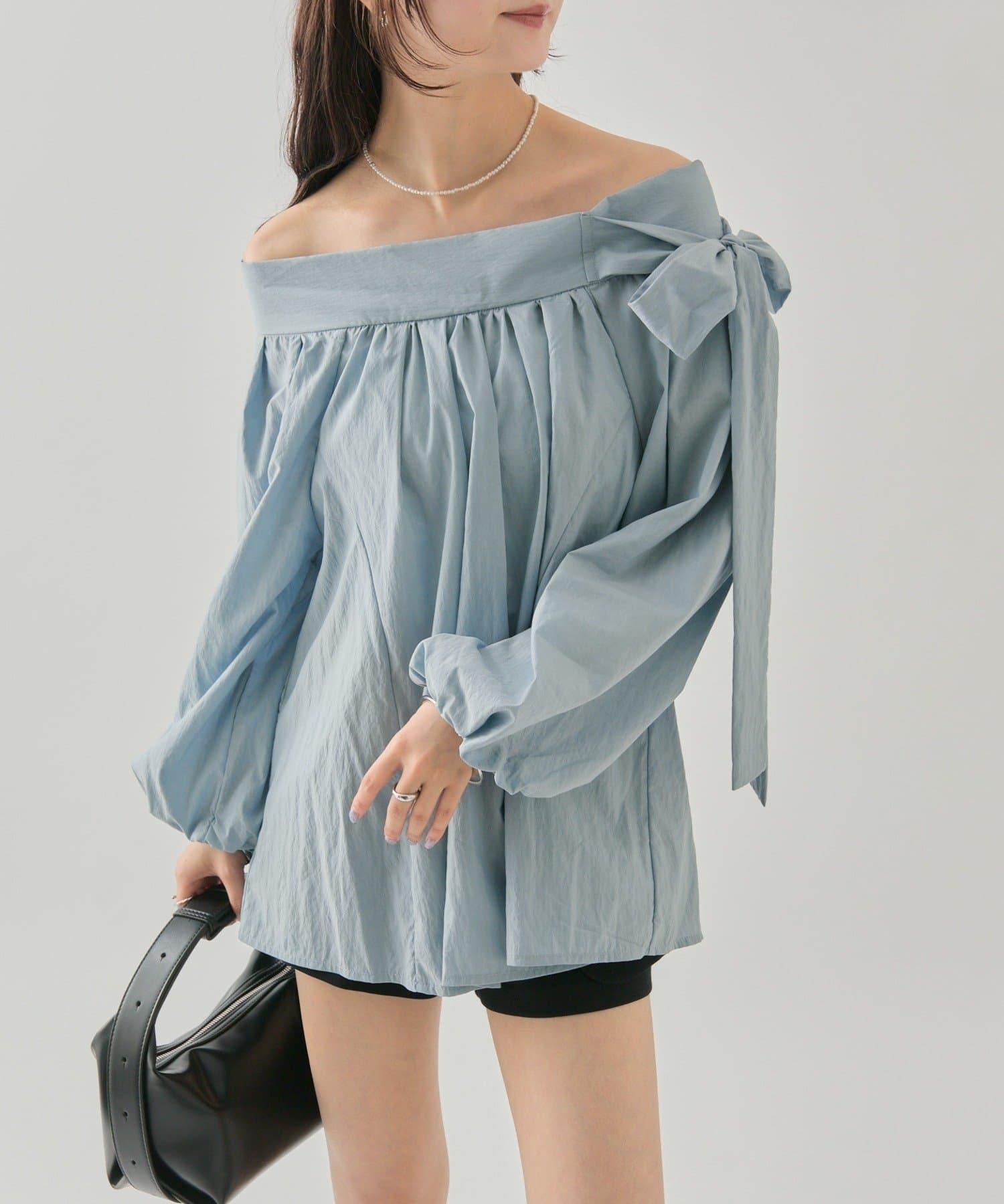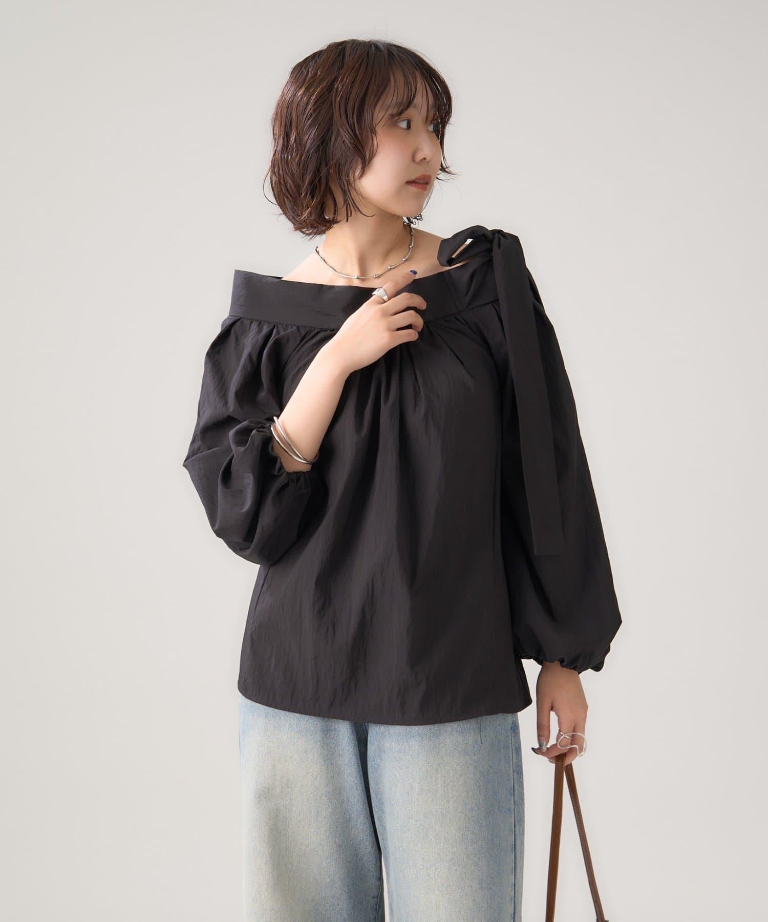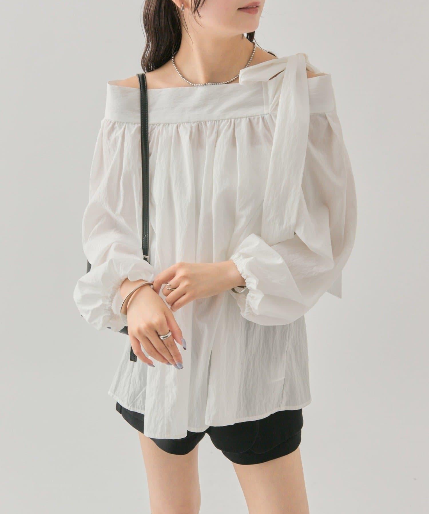肩部的緞帶是吸引眼球的可愛單品♡肩部以外的部分也是很好地展現肩部線條的單品。
