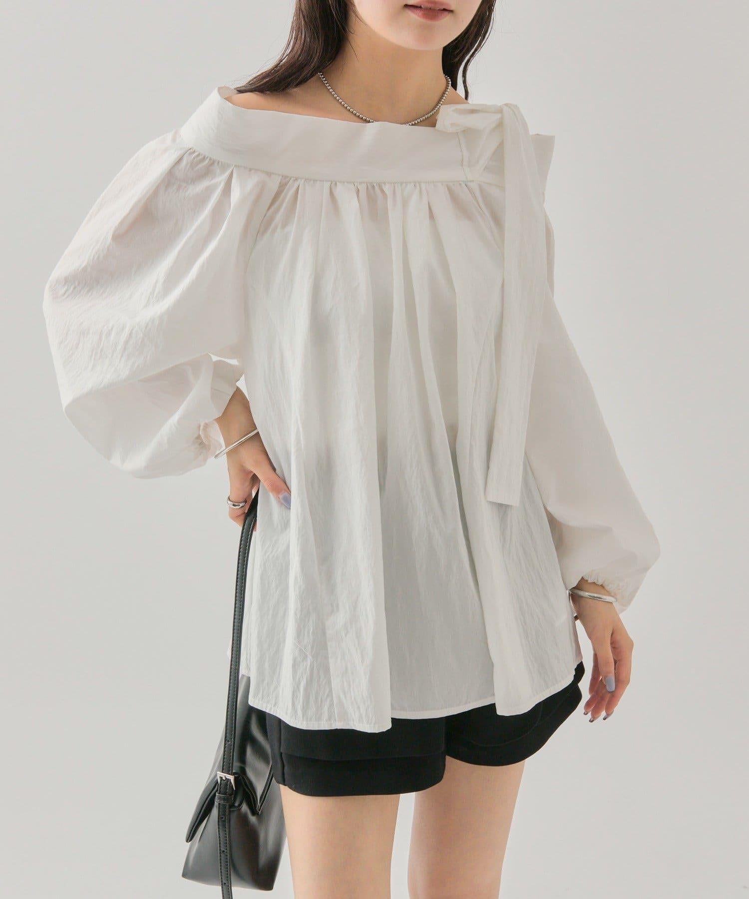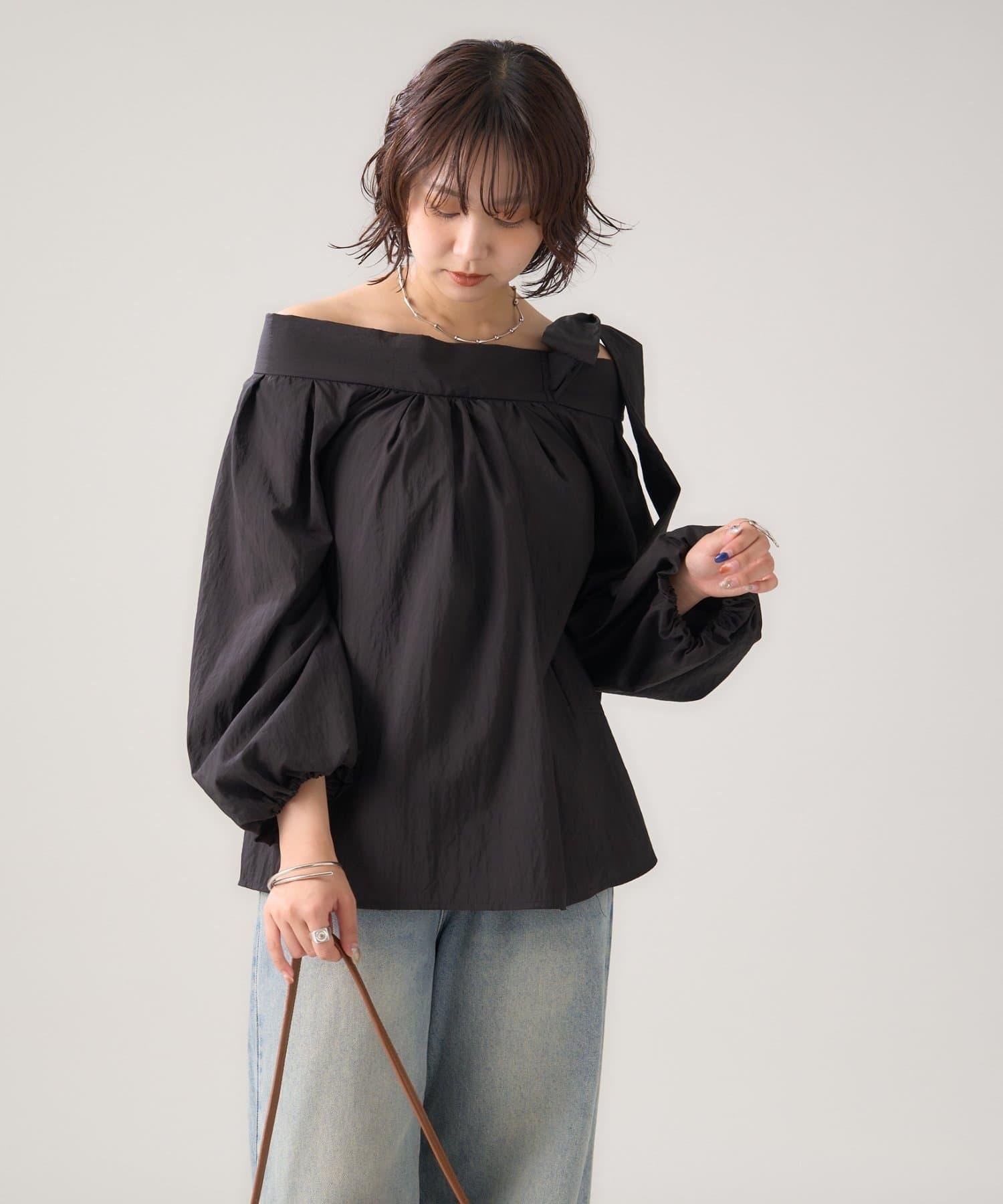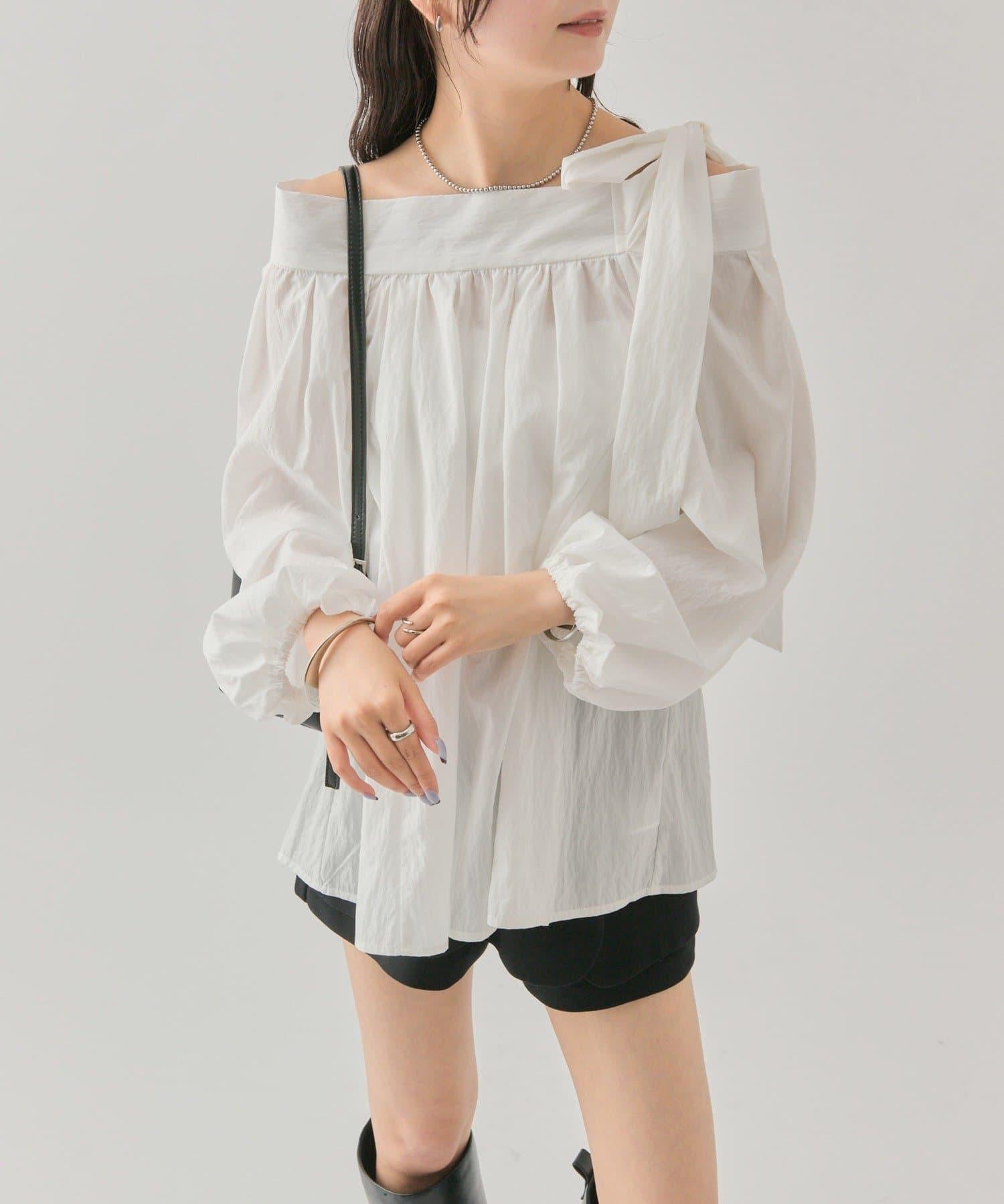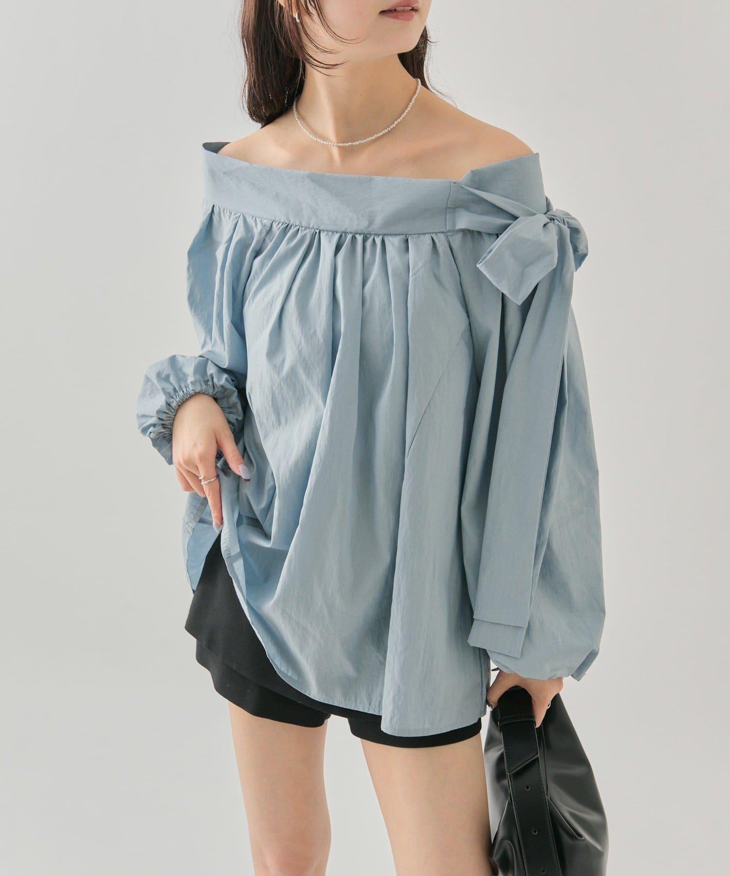 肩部的緞帶是吸引眼球的可愛單品♡肩部以外的部分也是很好地展現肩部線條的單品。