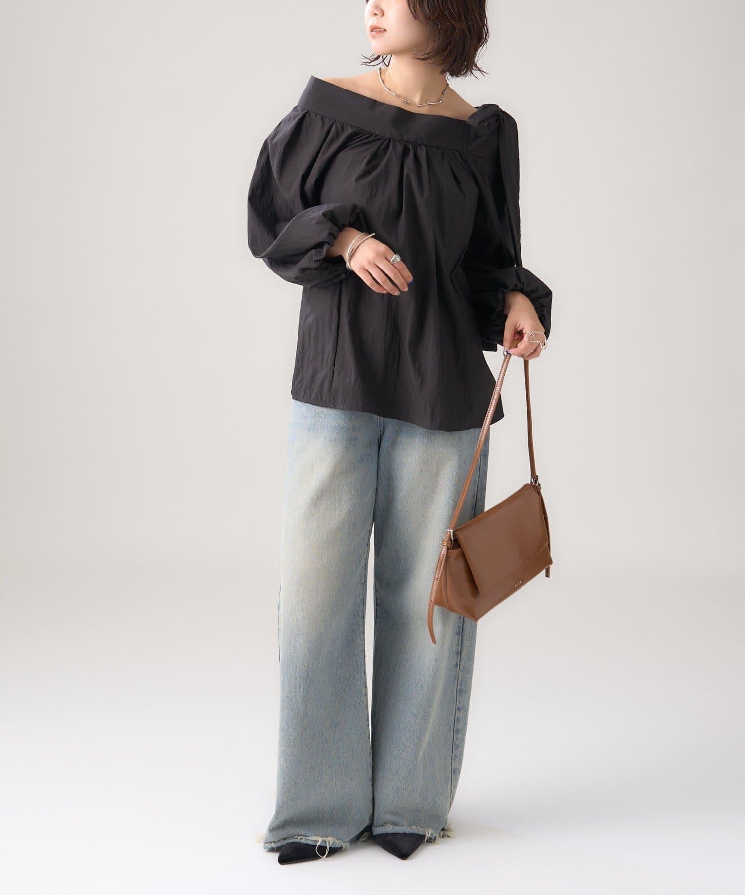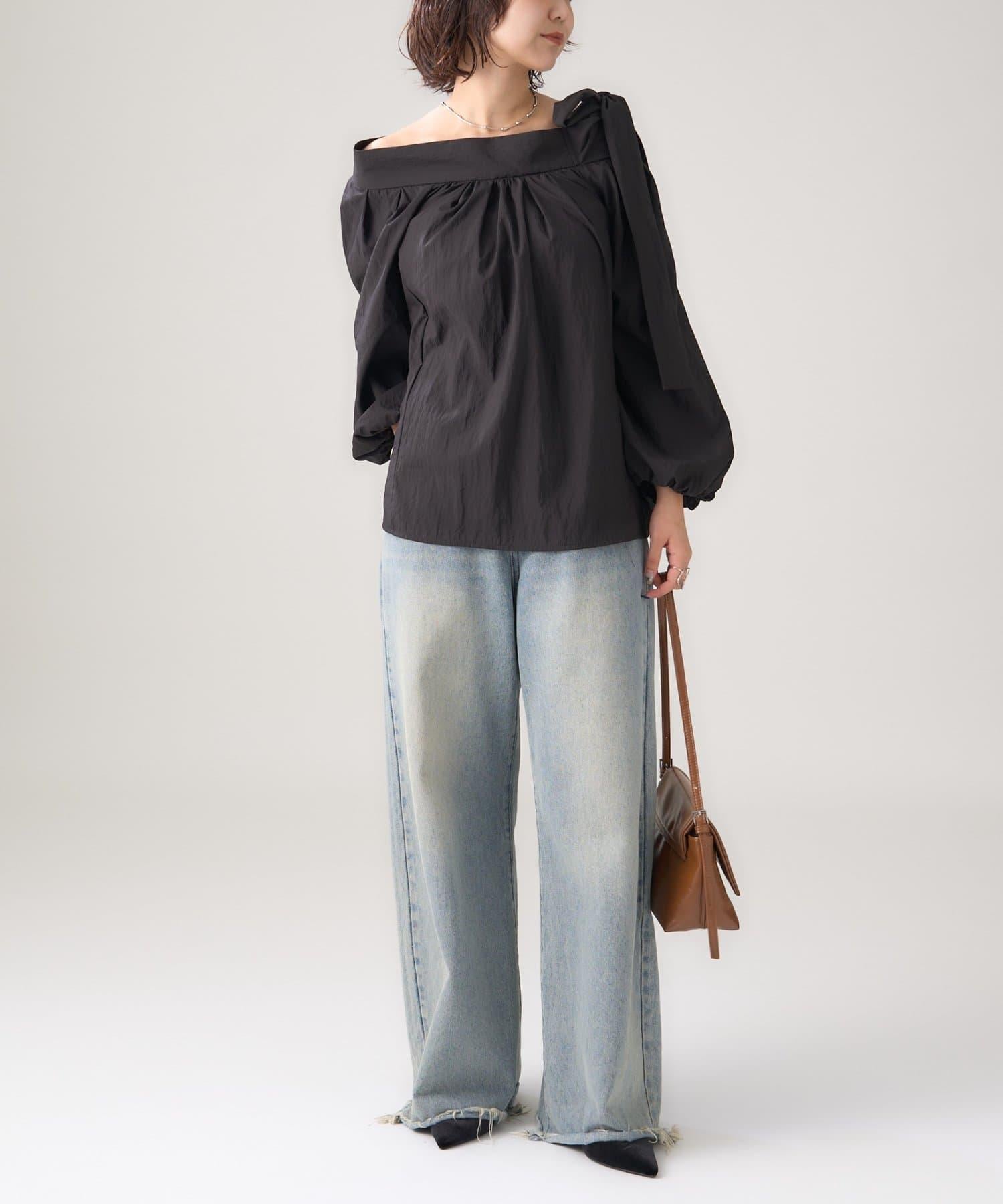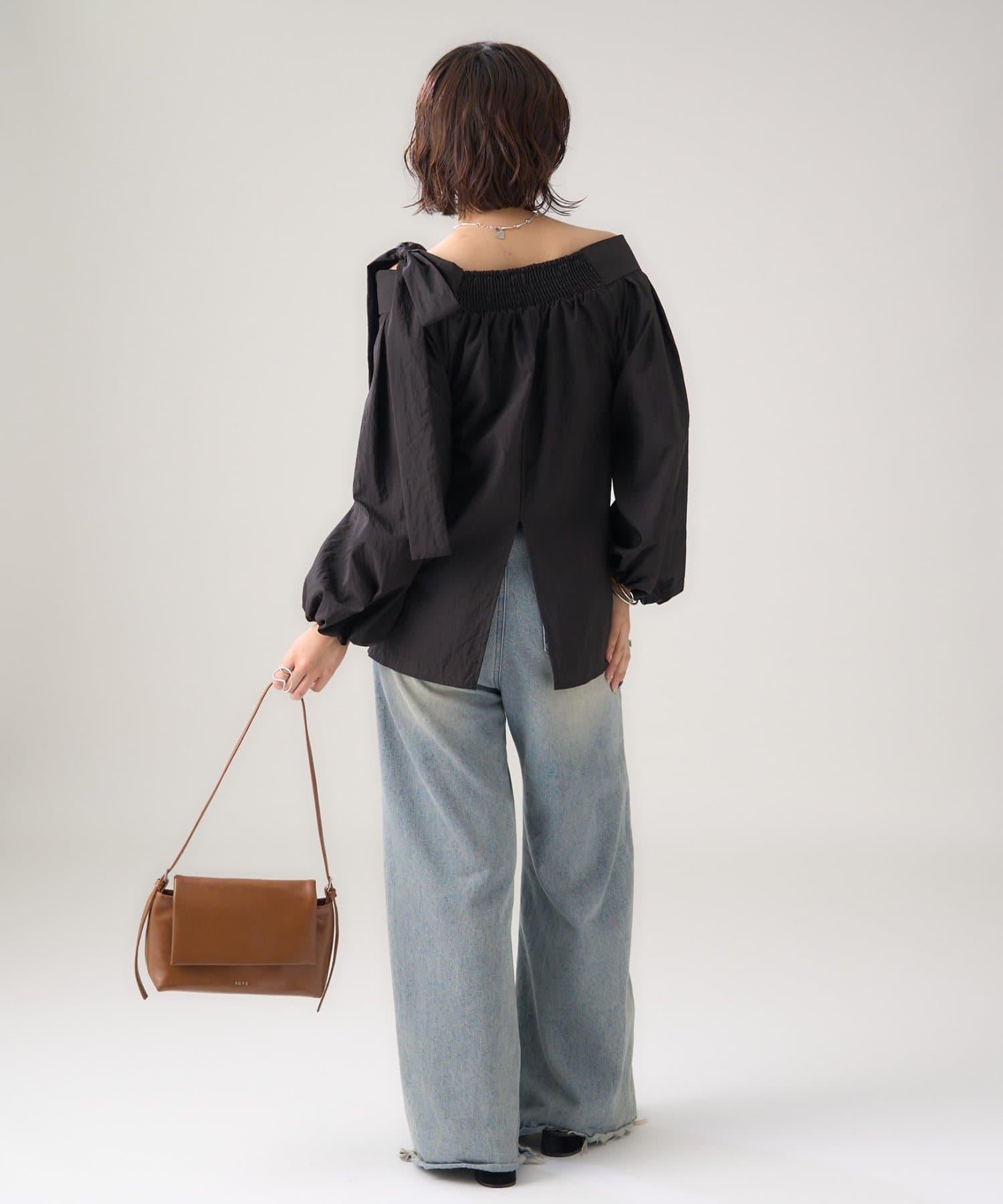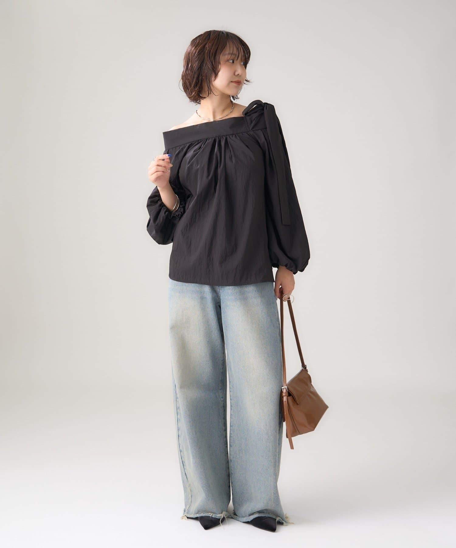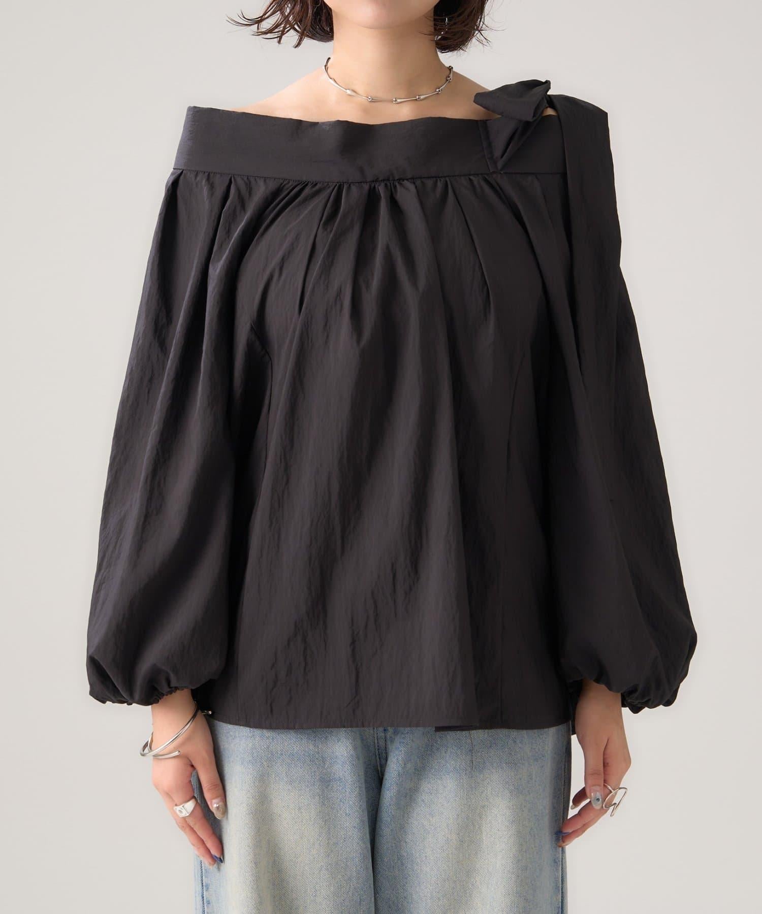 肩部的緞帶是吸引眼球的可愛單品♡肩部以外的部分也是很好地展現肩部線條的單品。