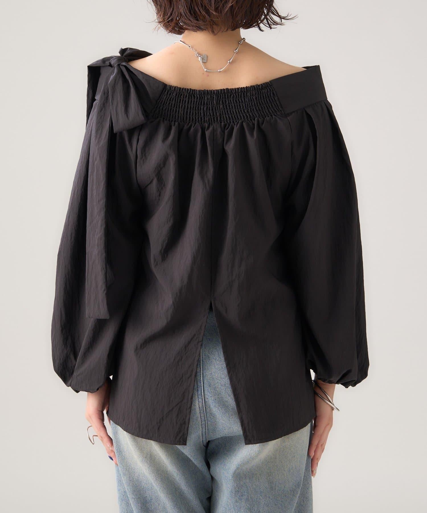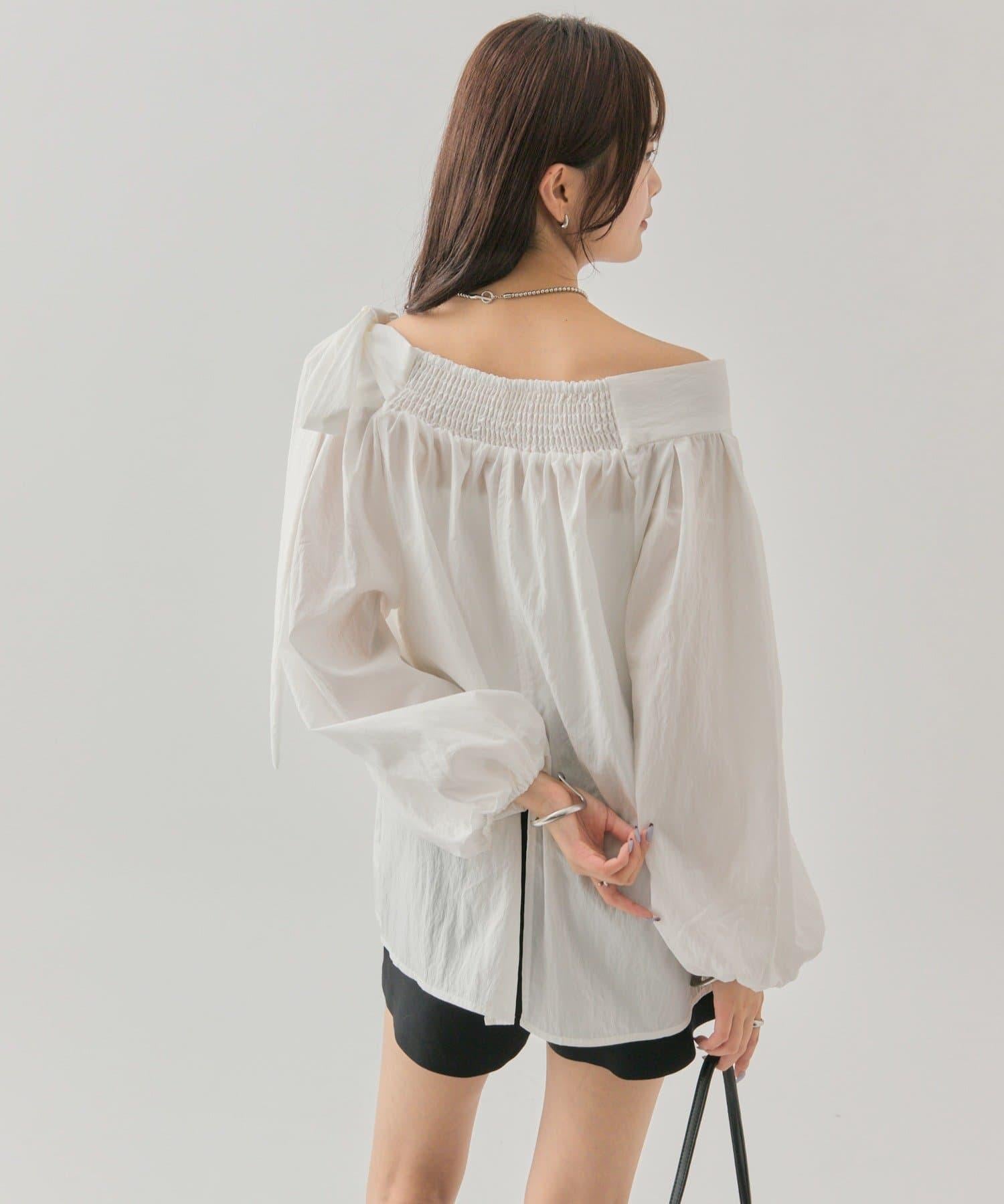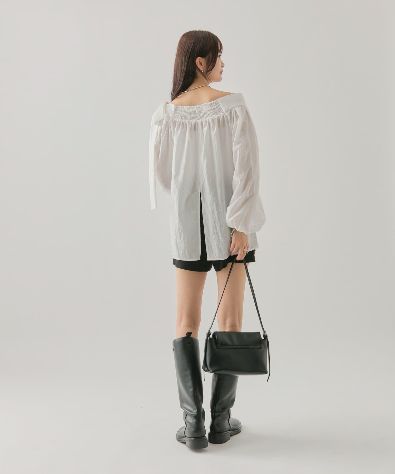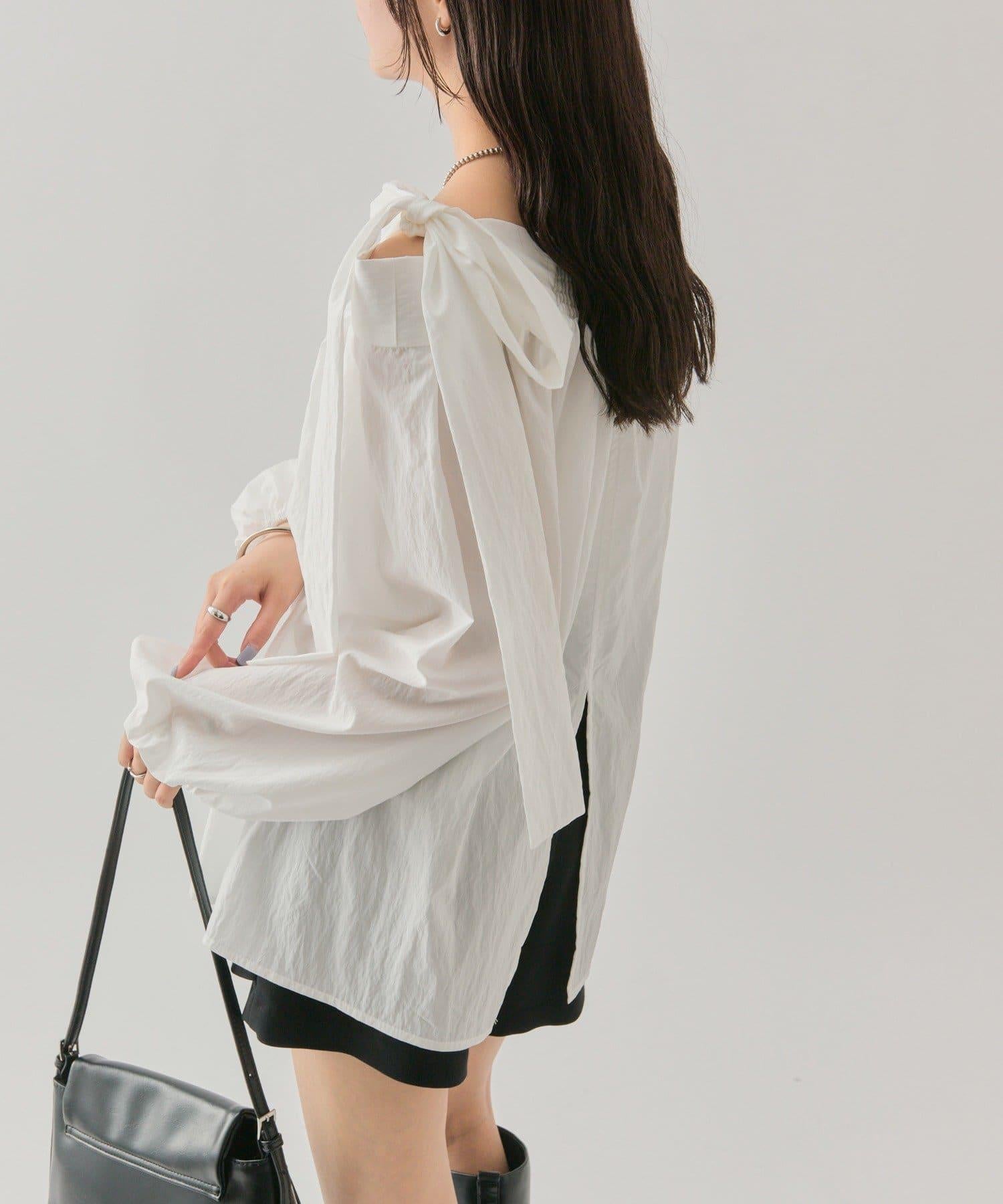 肩帶蝴蝶結一字肩襯衫