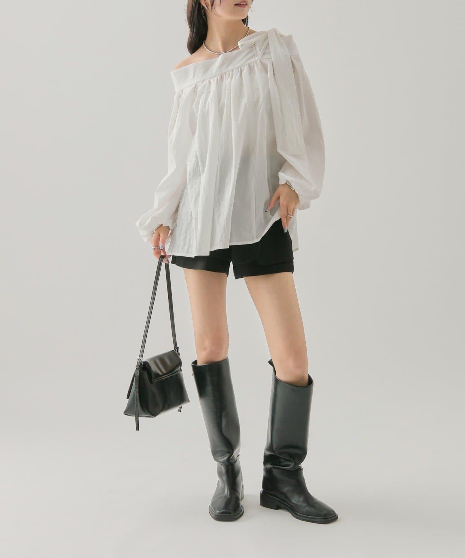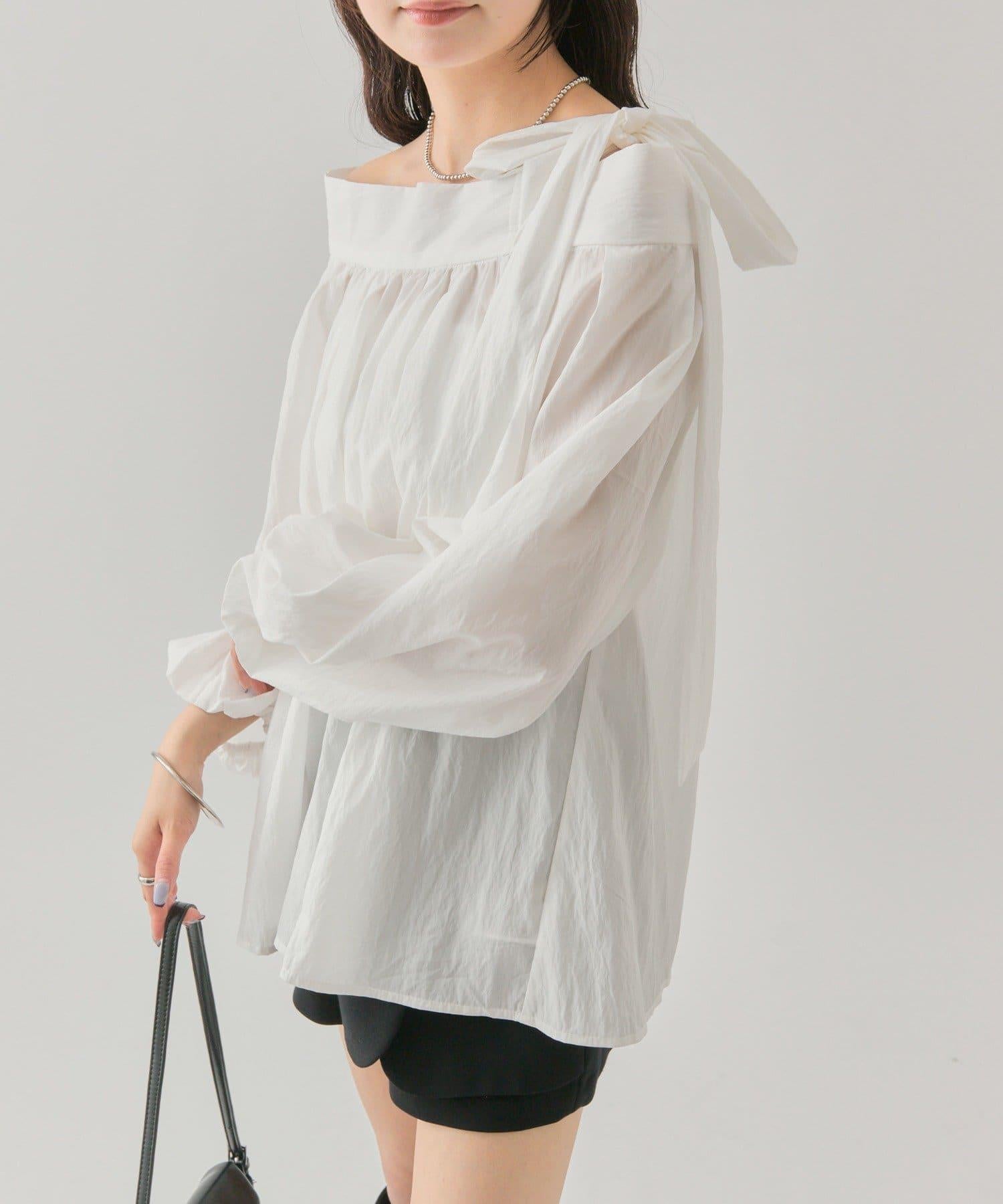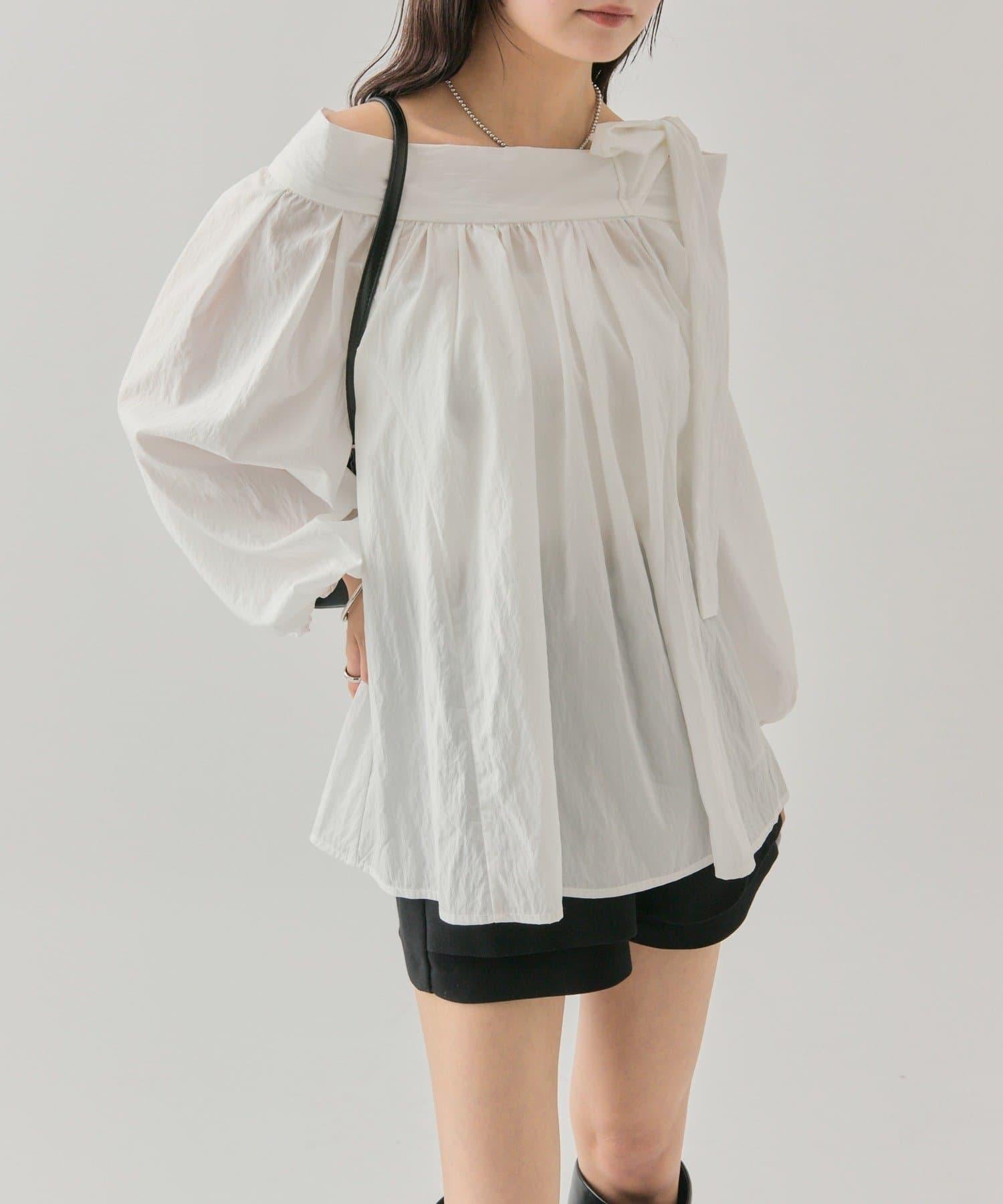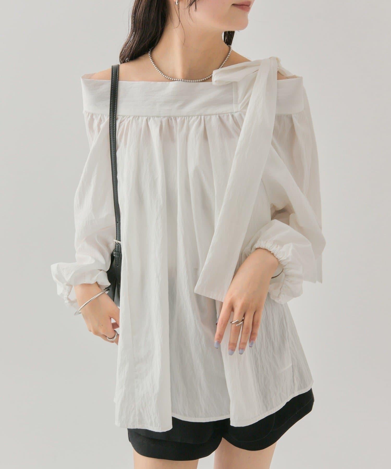 肩帶蝴蝶結一字肩襯衫