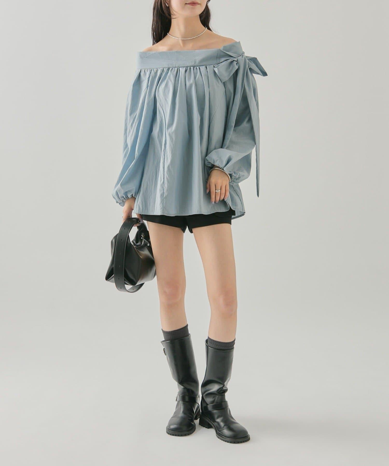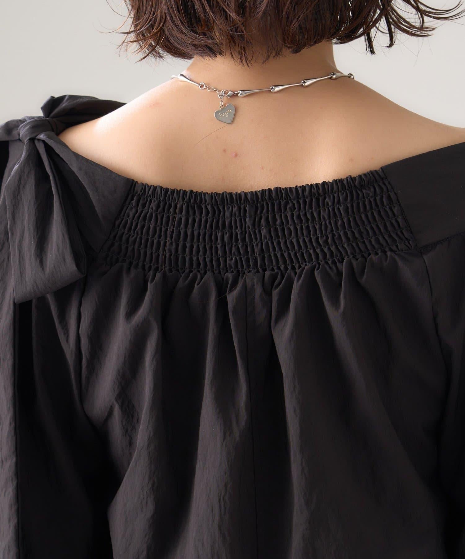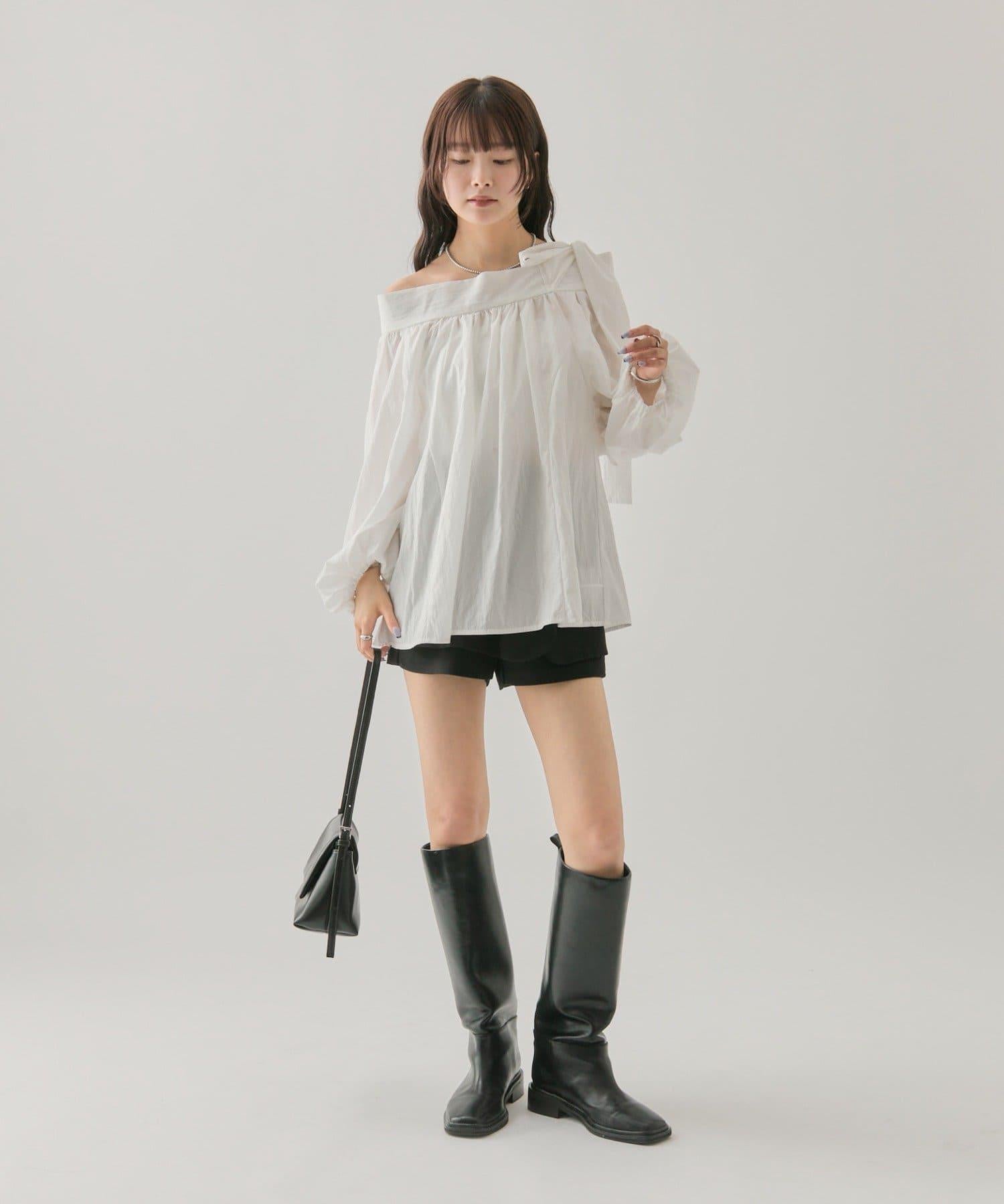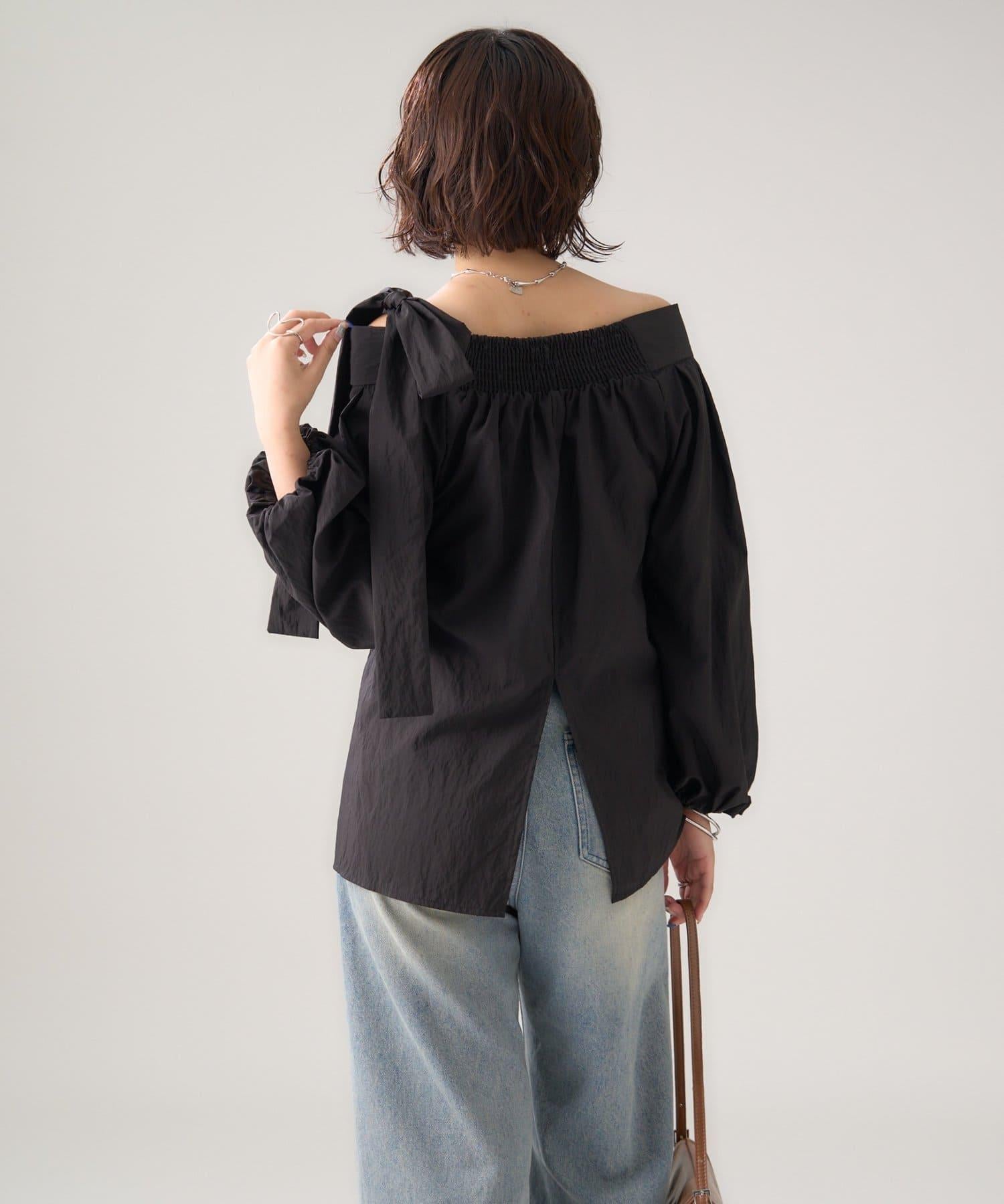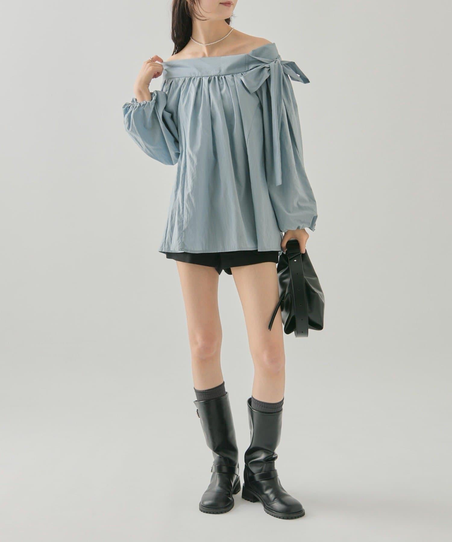 肩帶蝴蝶結一字肩襯衫
