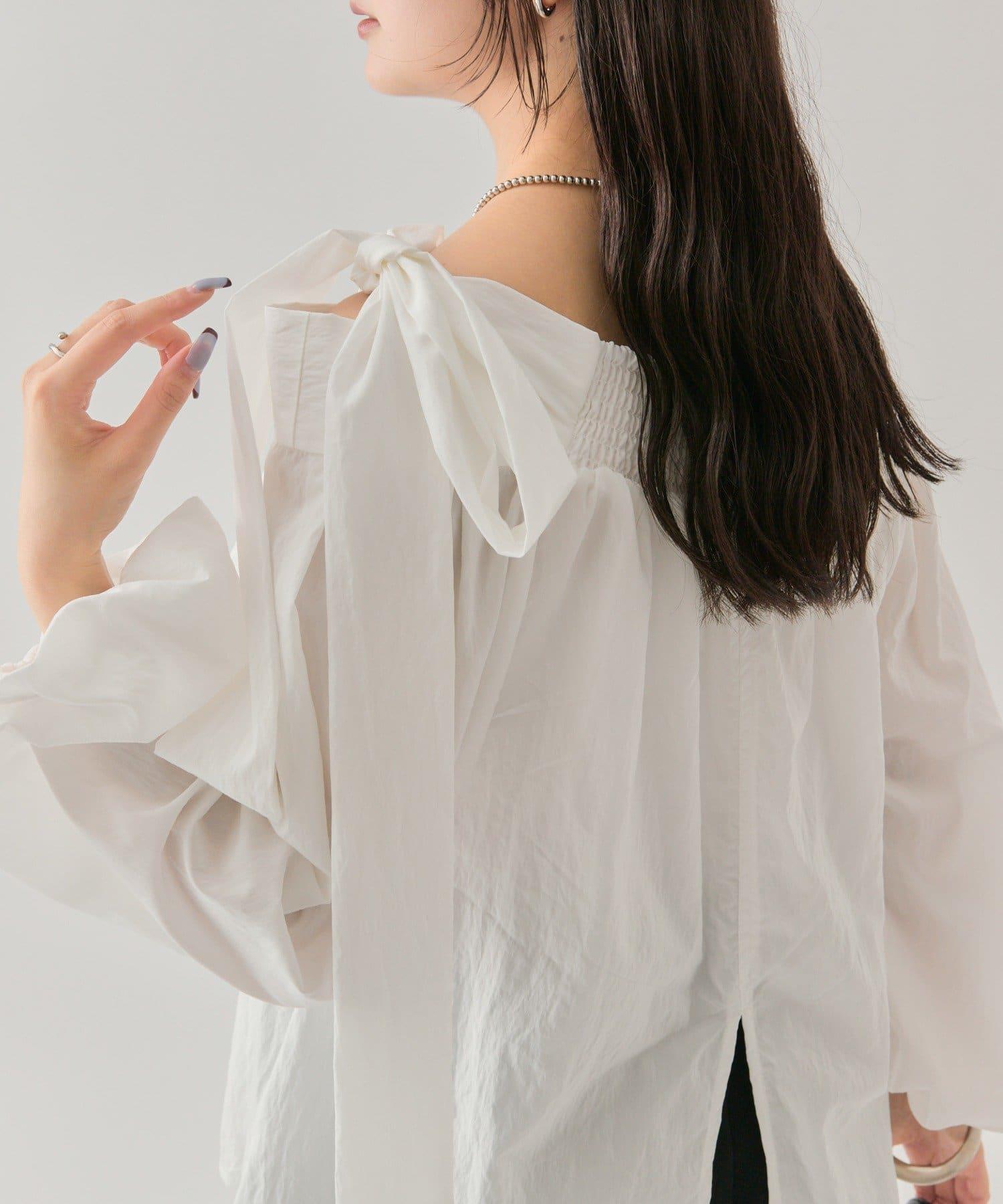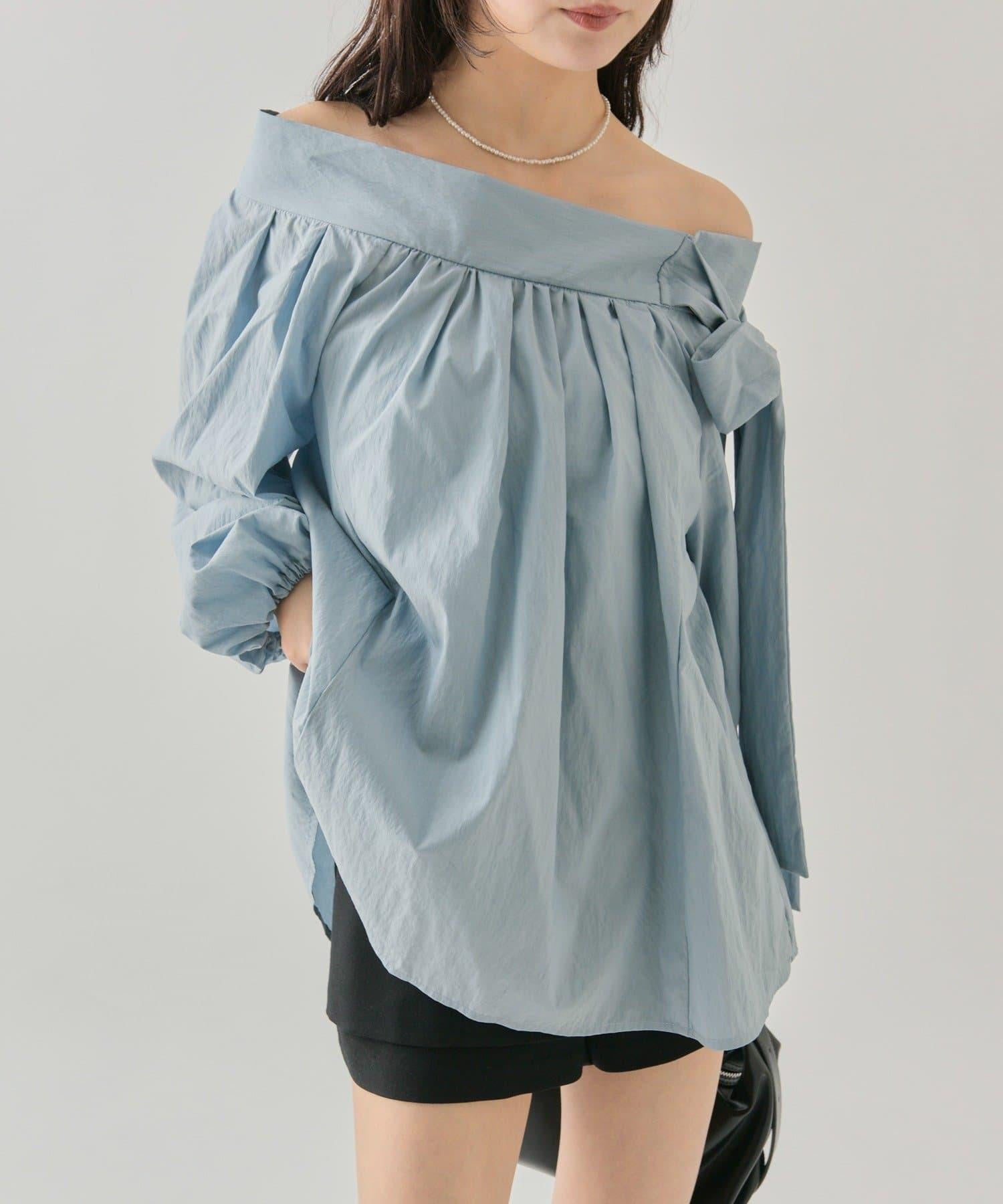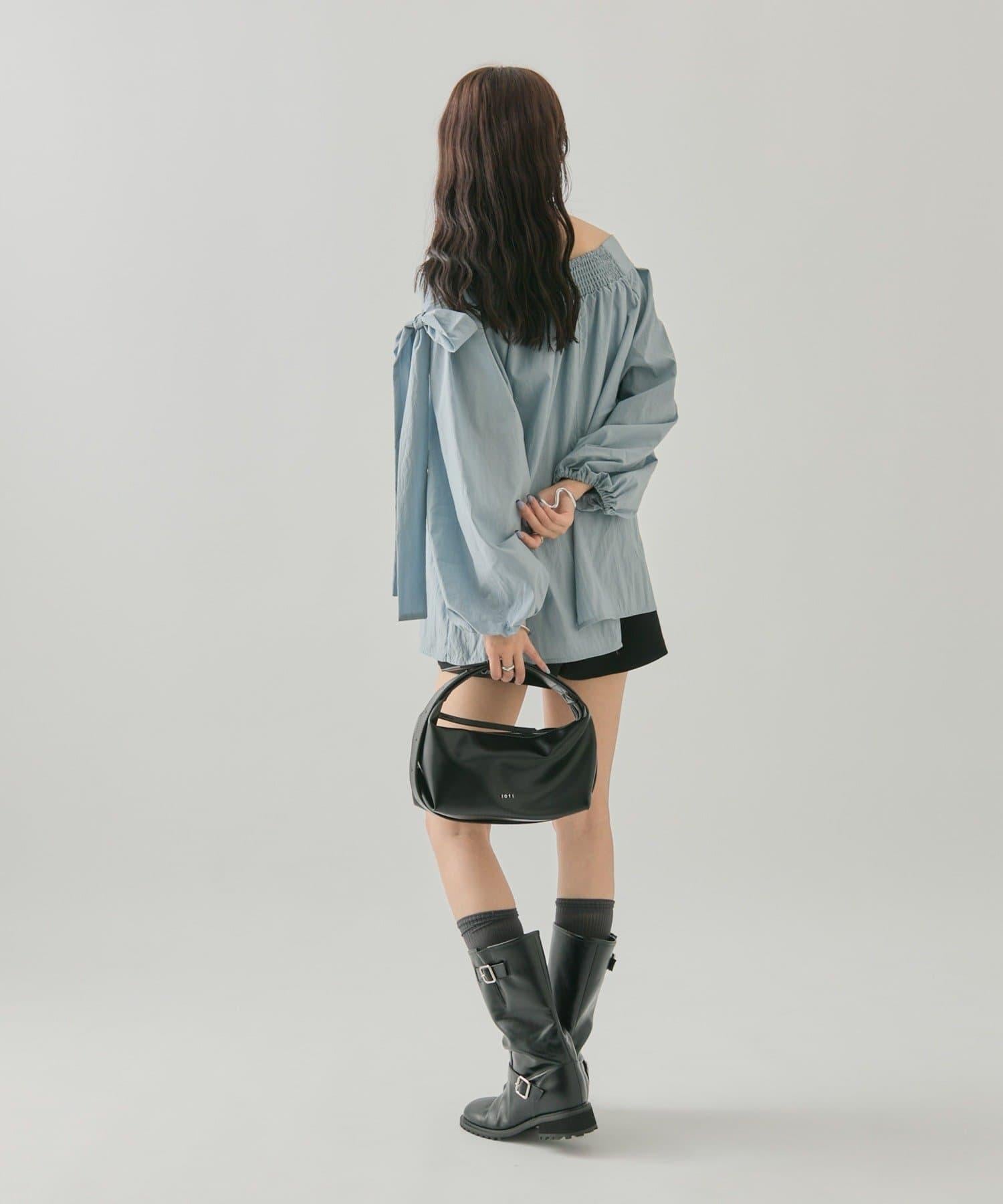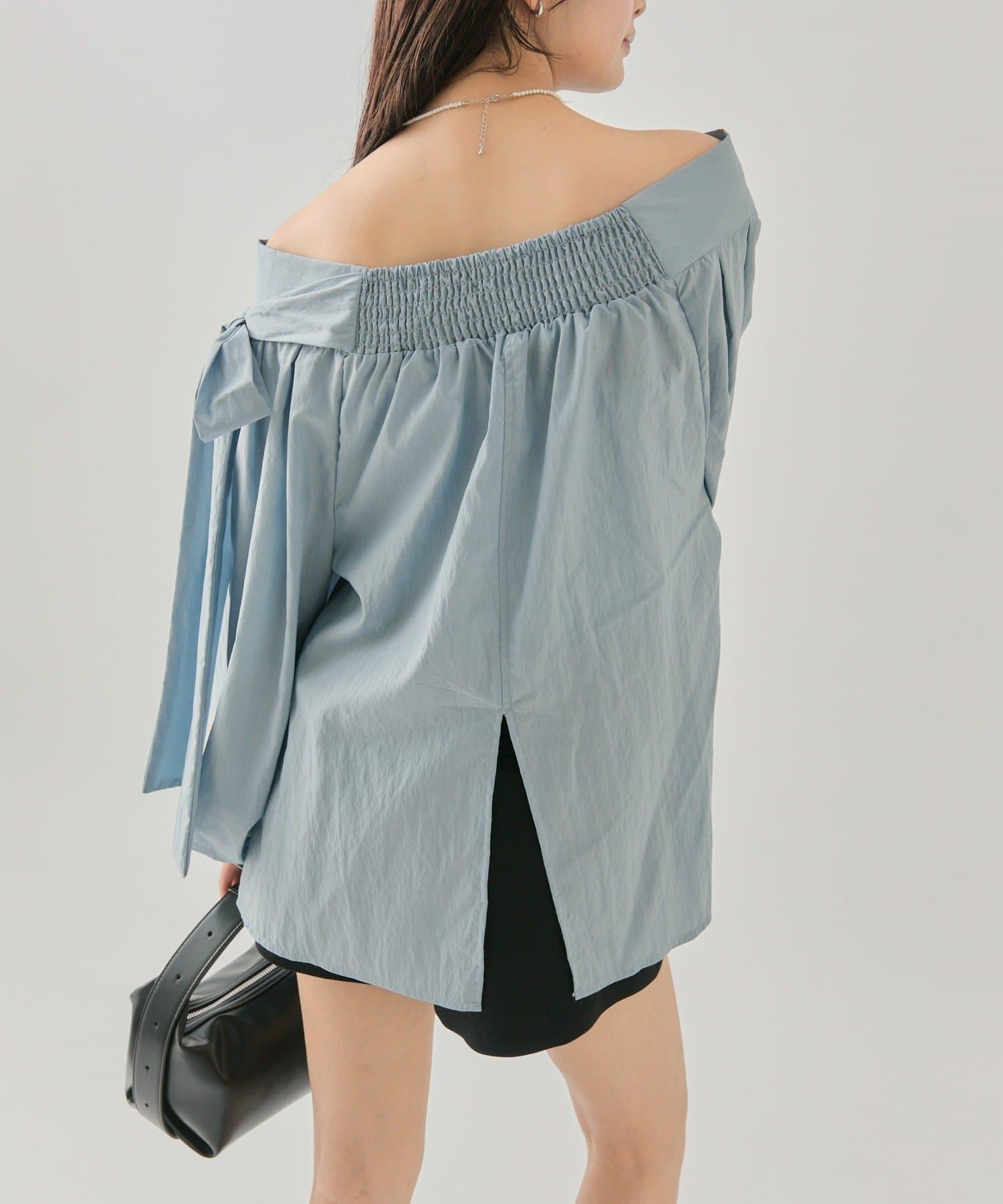 肩帶蝴蝶結一字肩襯衫