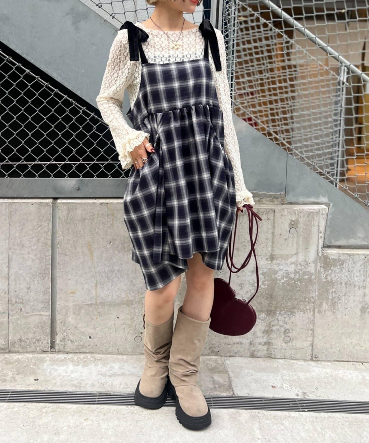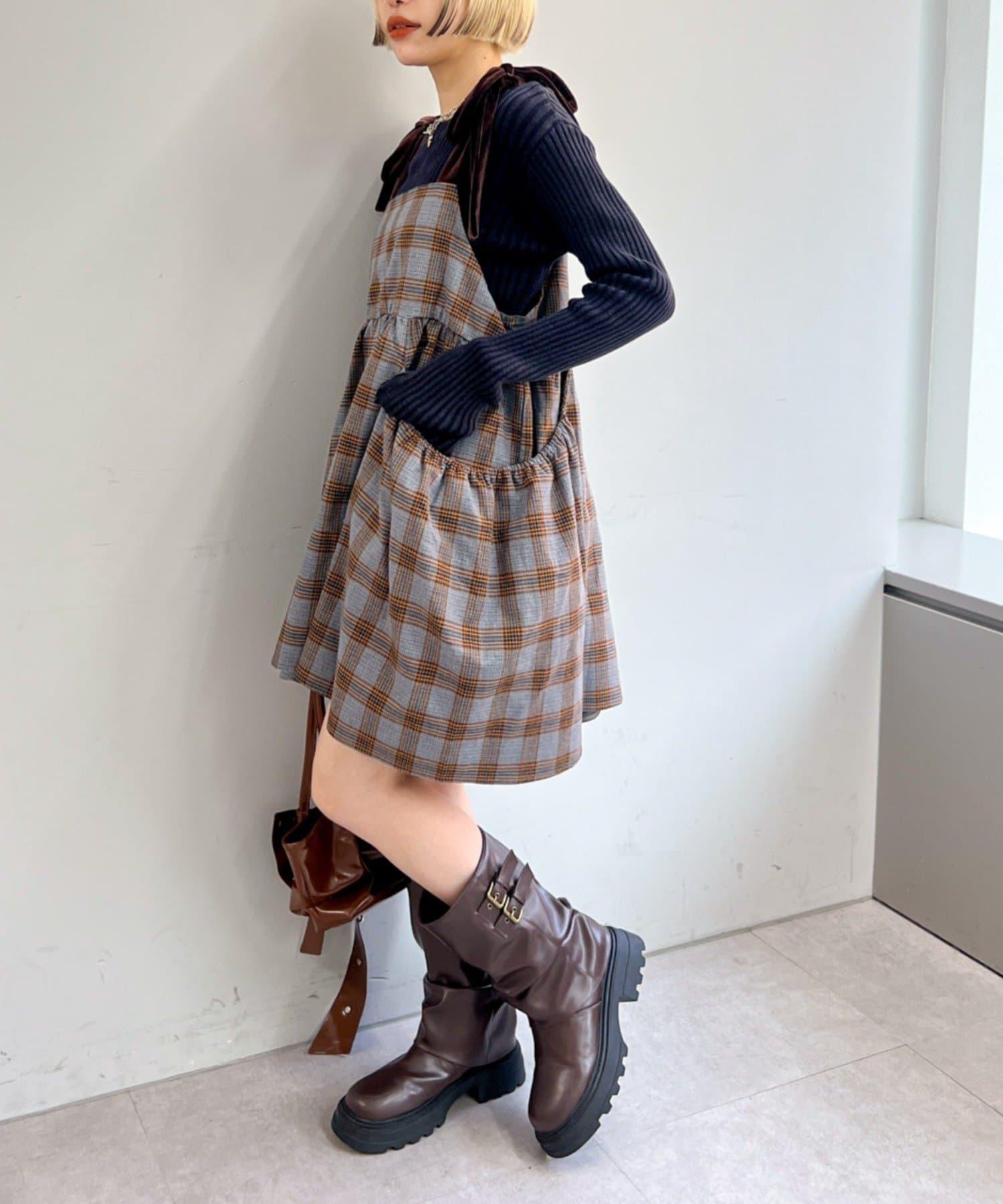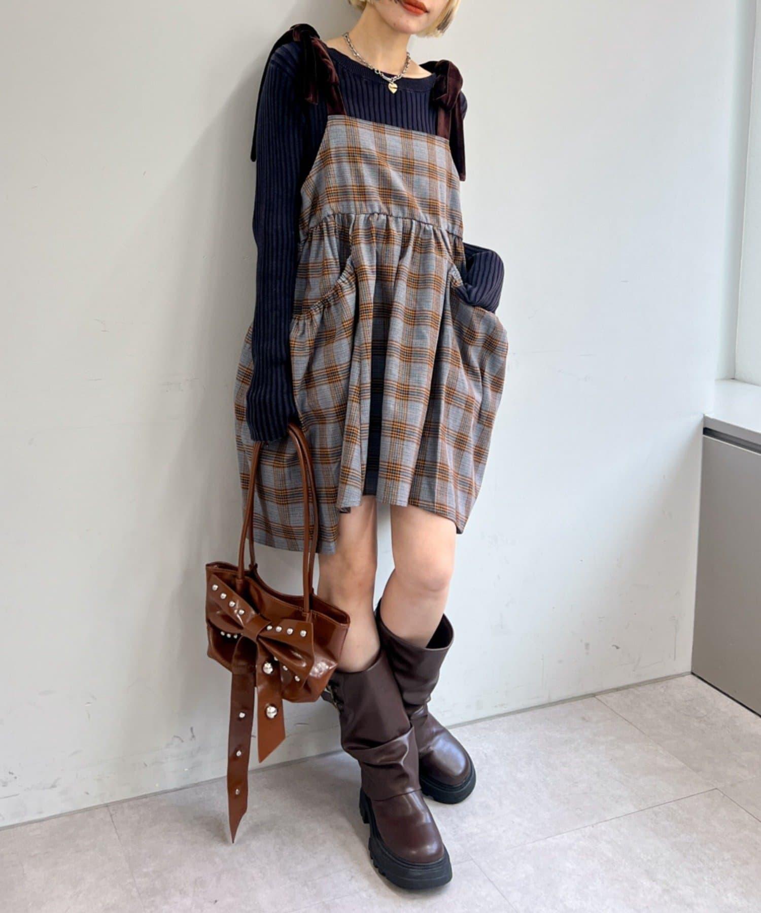 格紋圖案烘托出秋天的氣氛,只需一條裙子就能完成協調。
