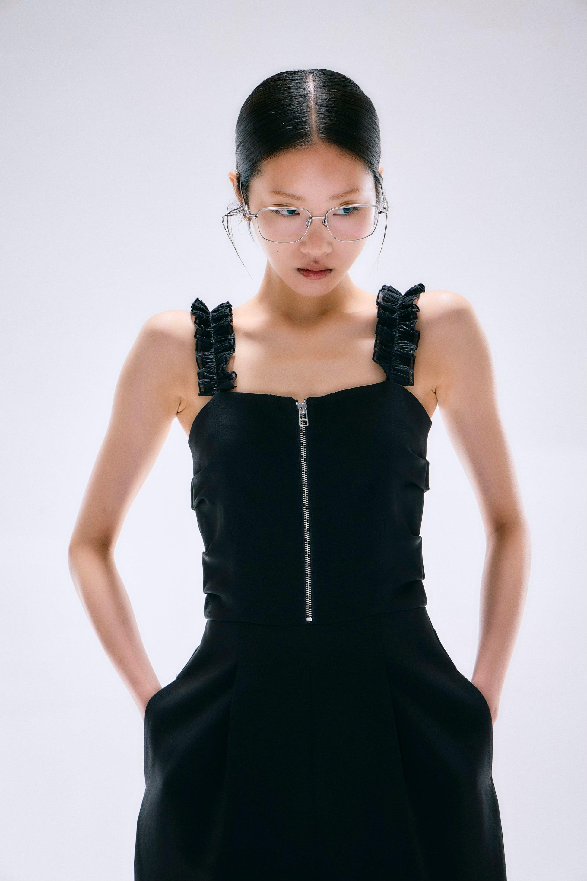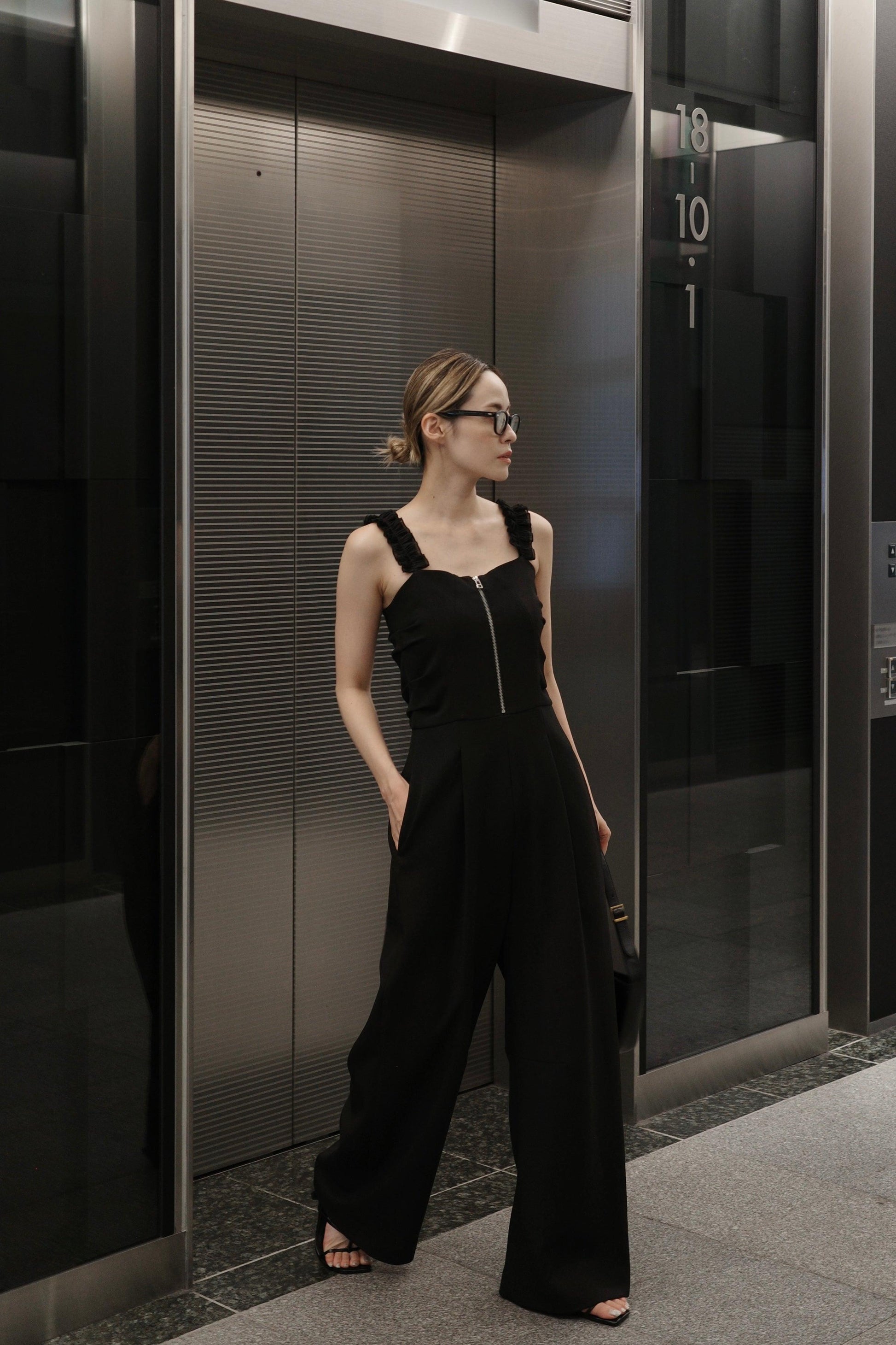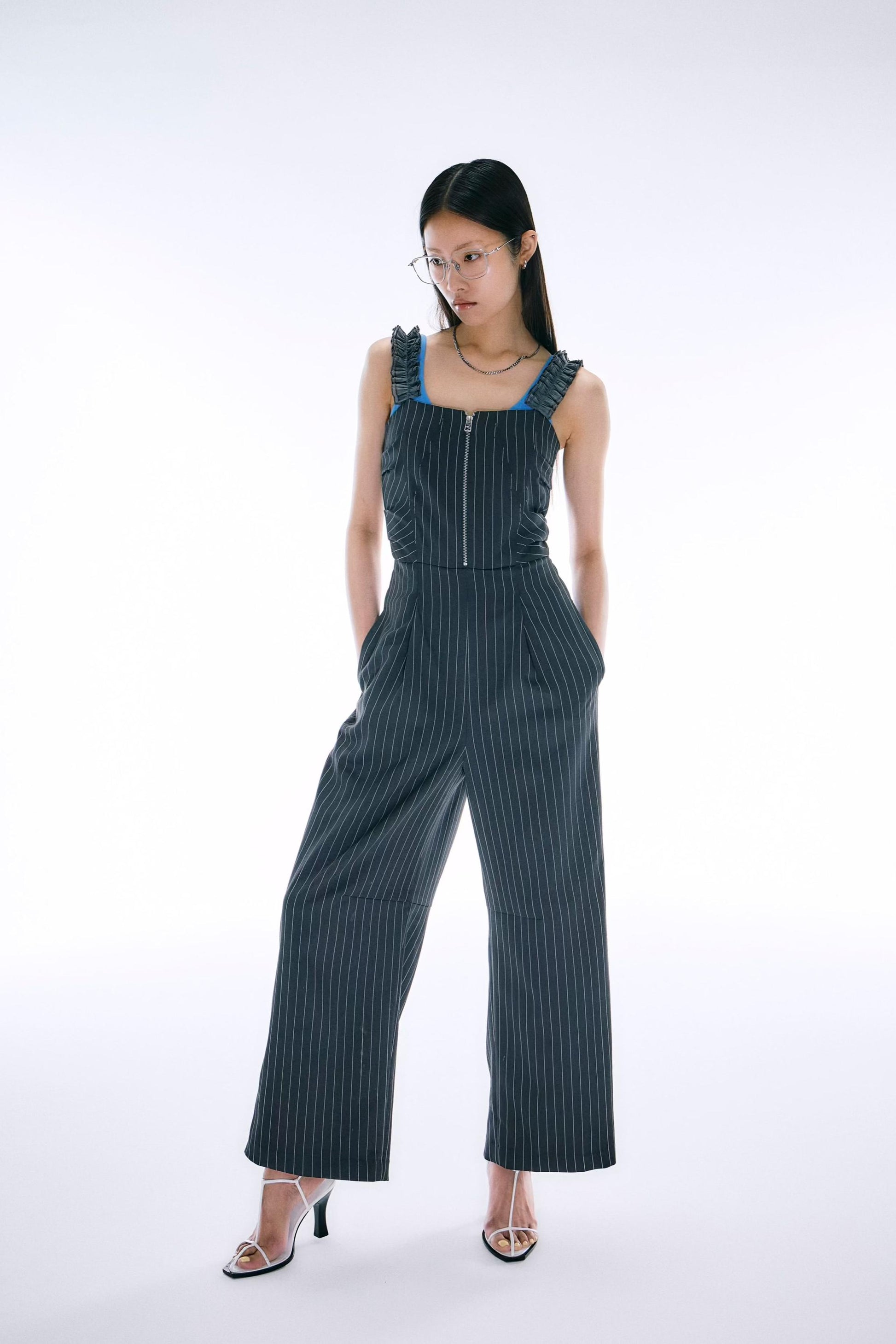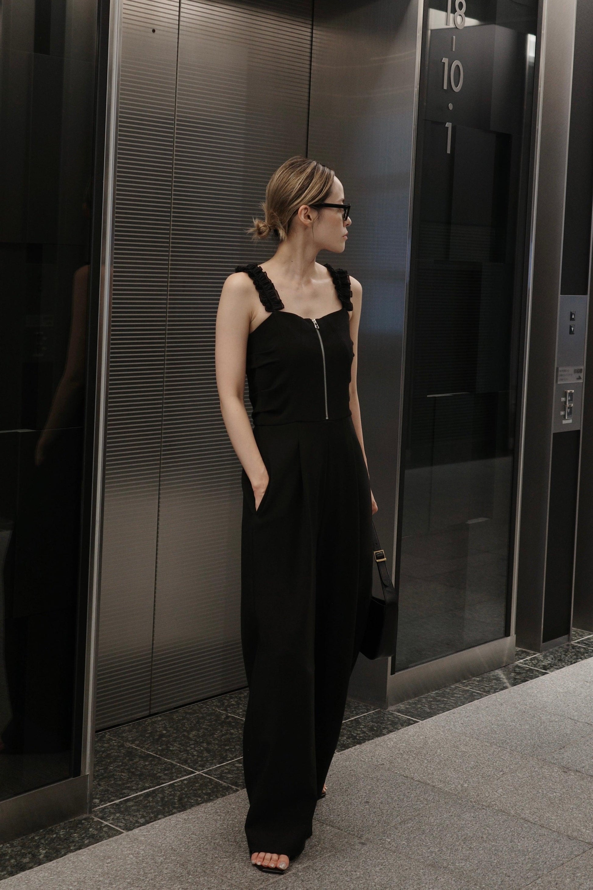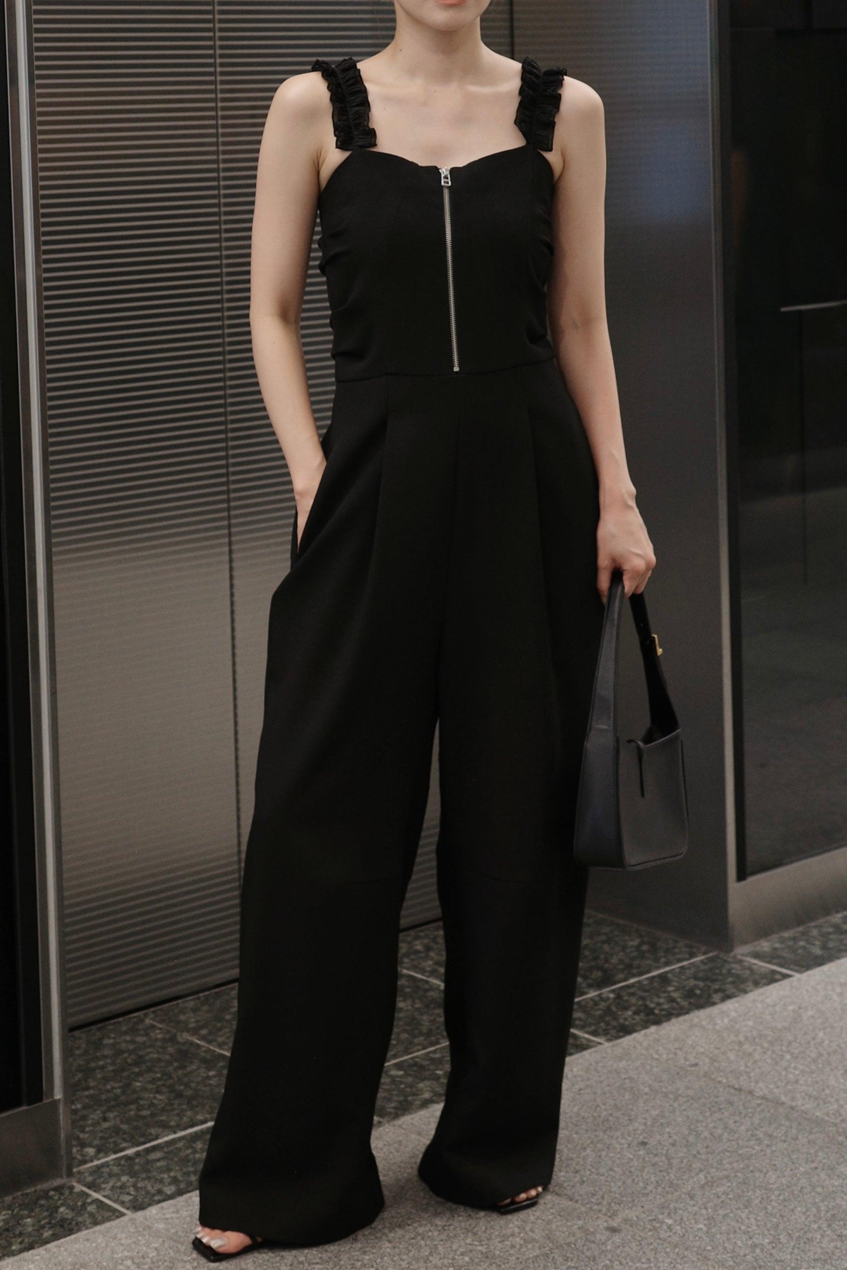 肩褶連體褲