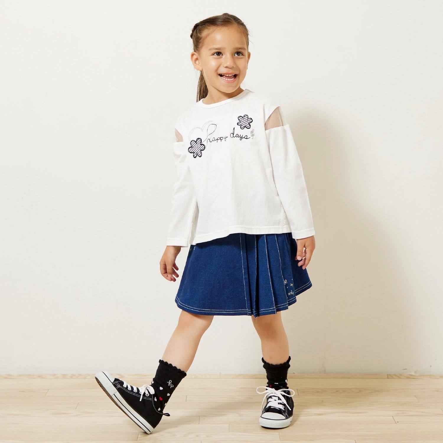 兩側下襬的花朵圖案增添了自然的可愛感。