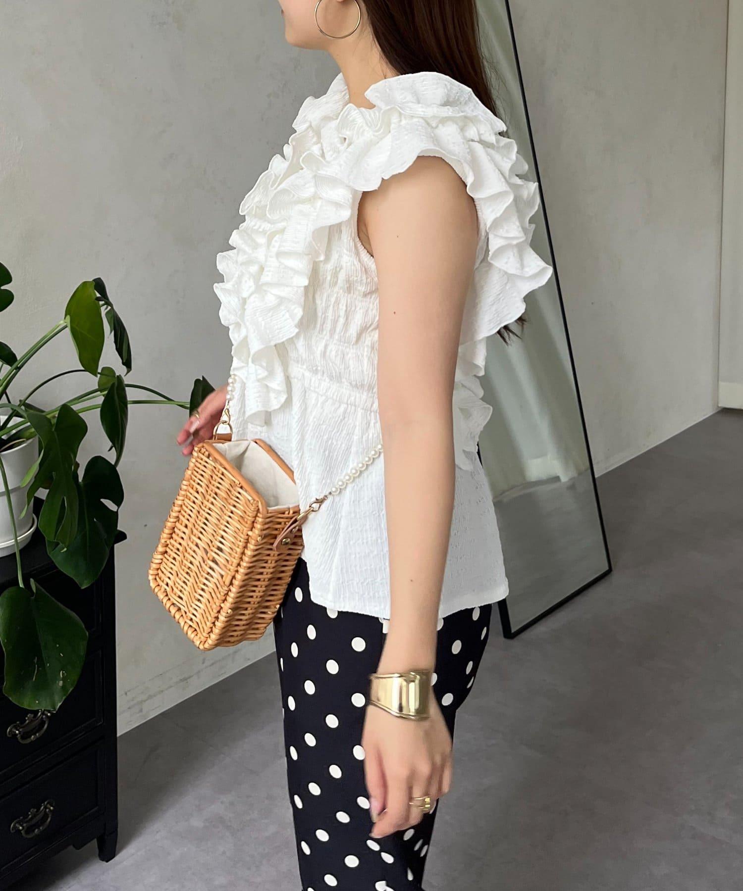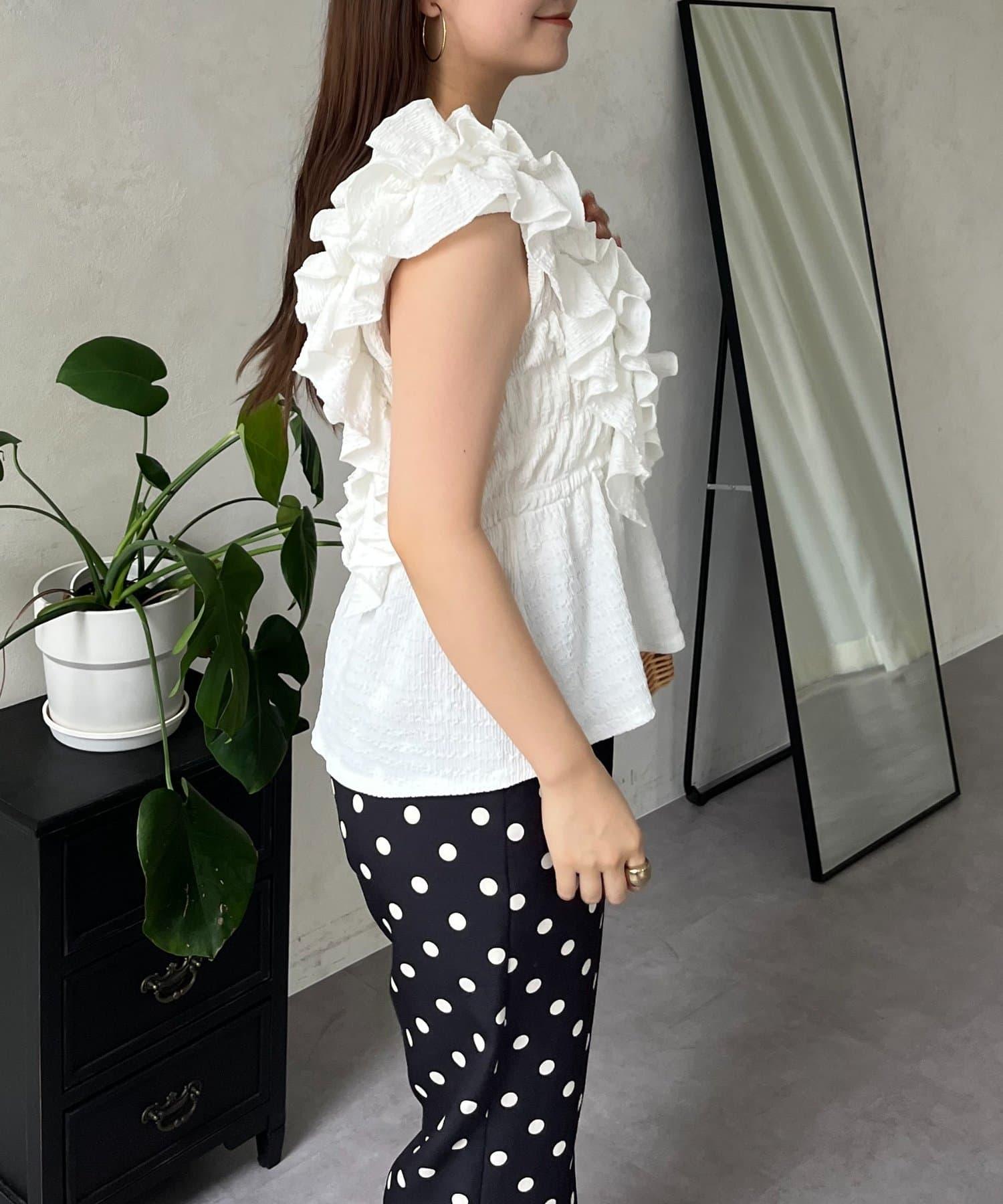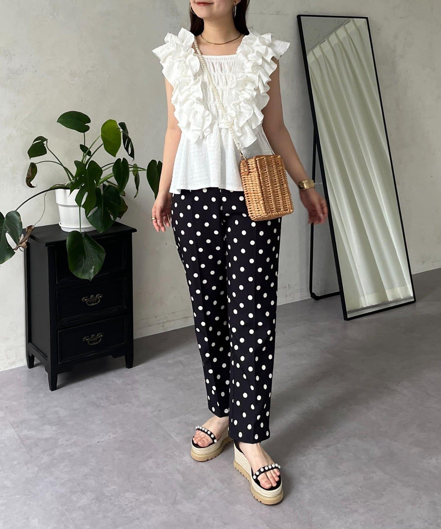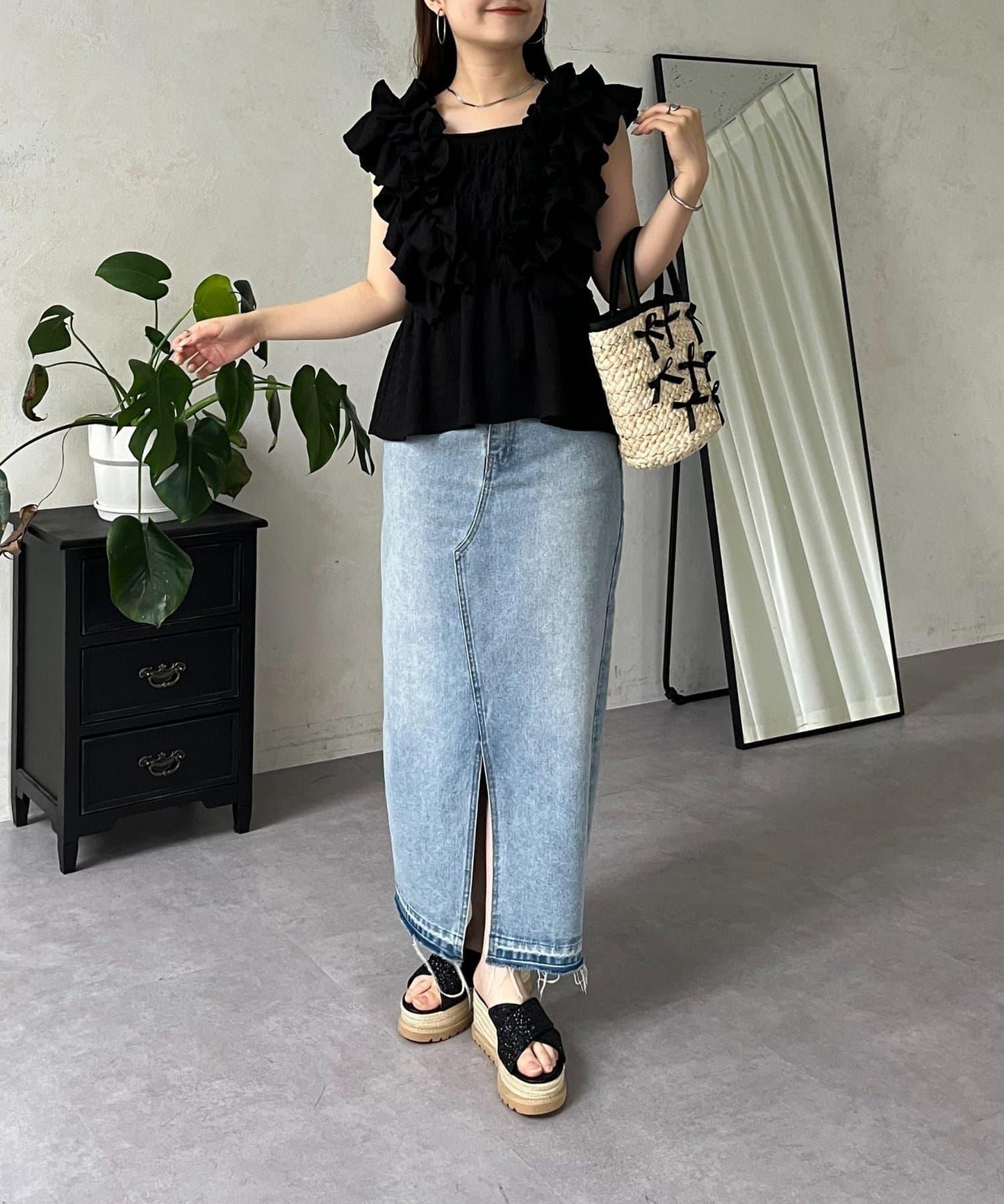荷葉邊的設計偏向甜美,但如果搭配牛仔褲等。