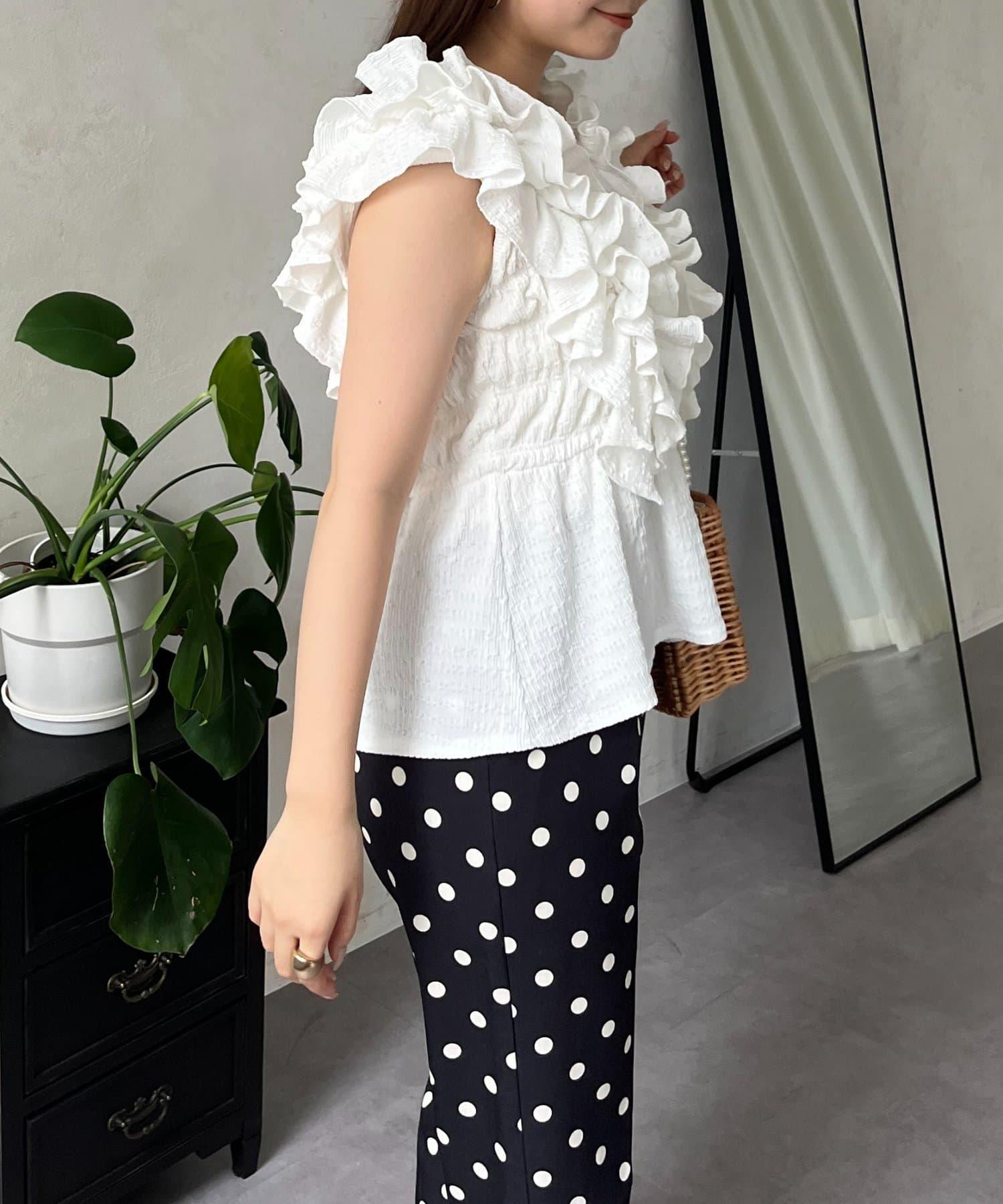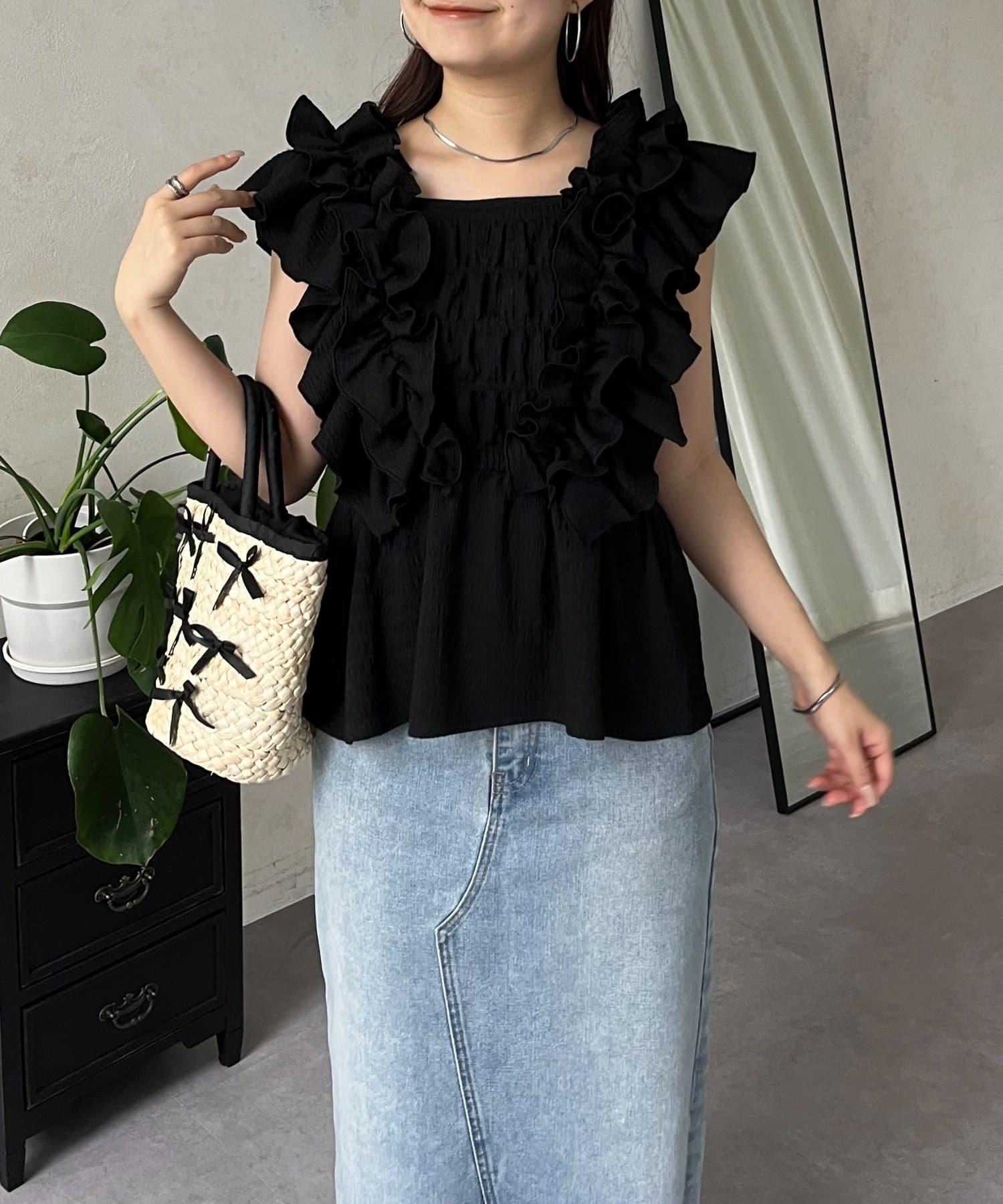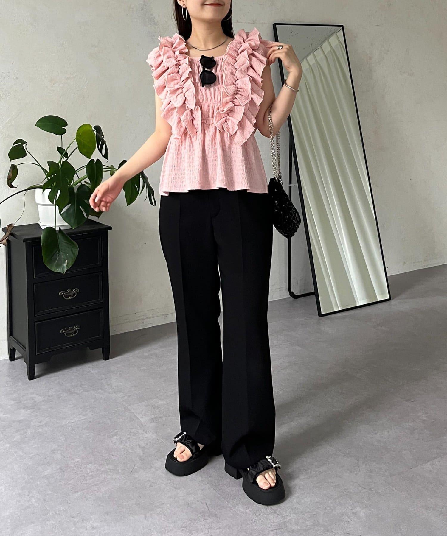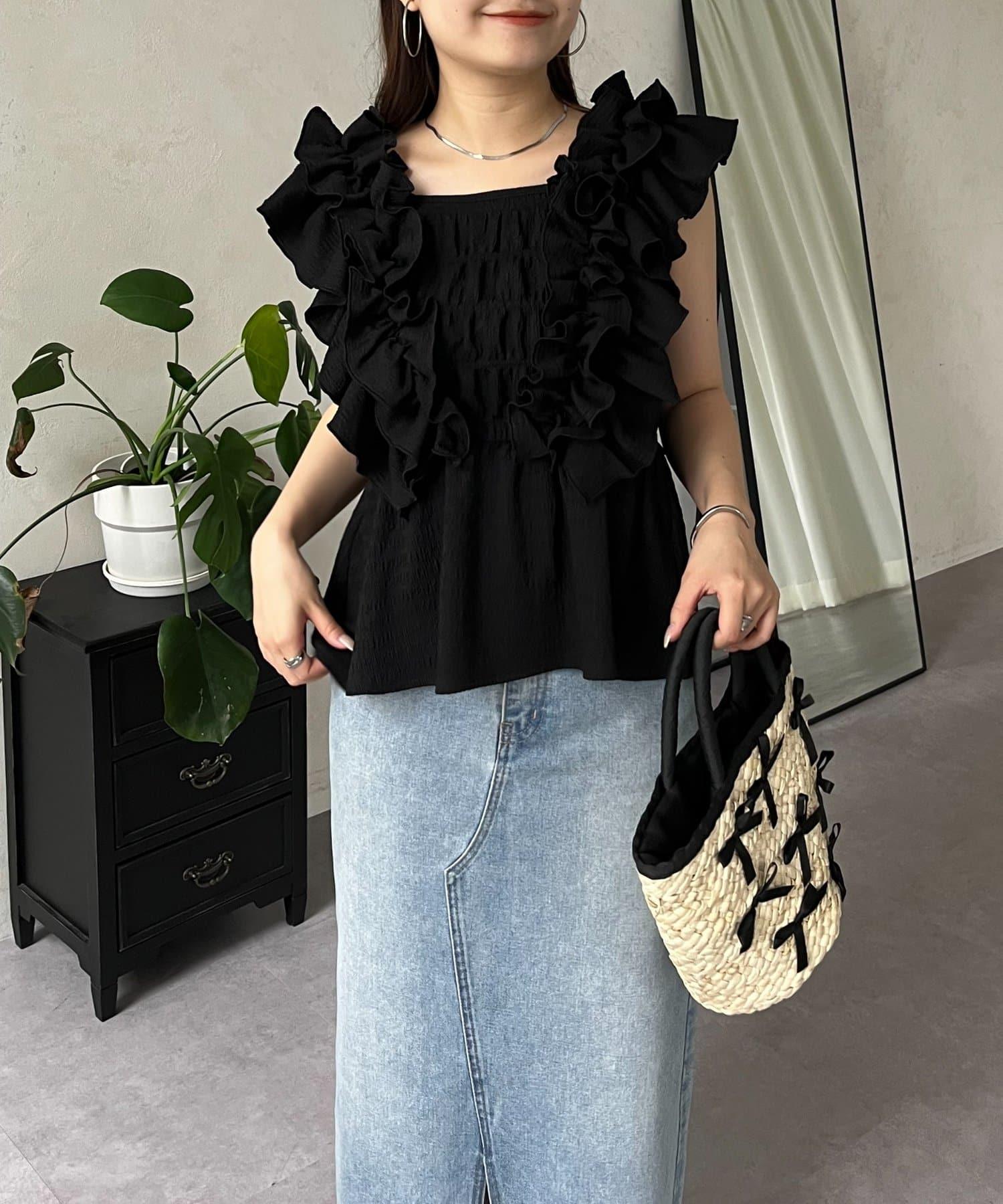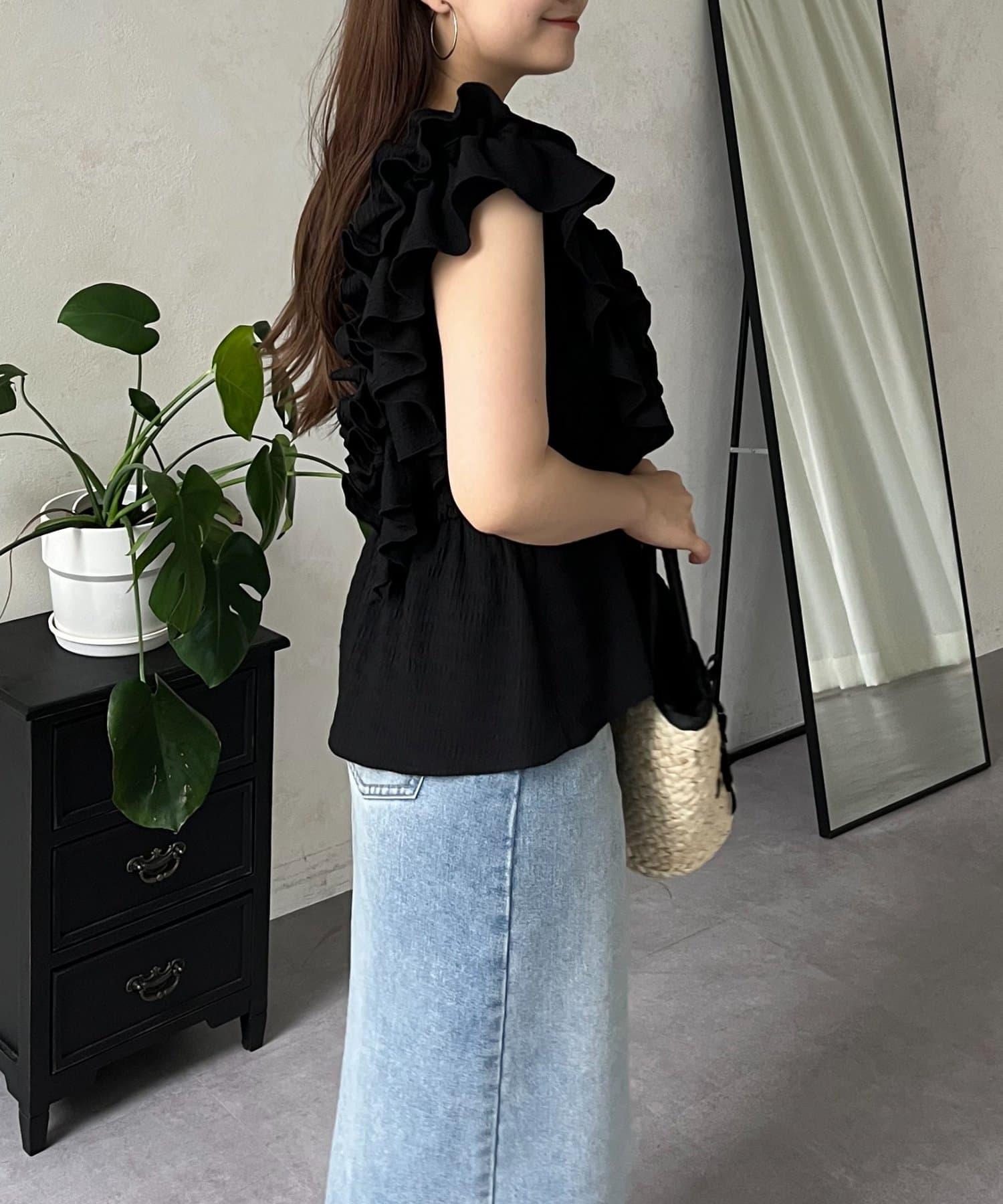 荷葉邊的設計偏向甜美,但如果搭配牛仔褲等。