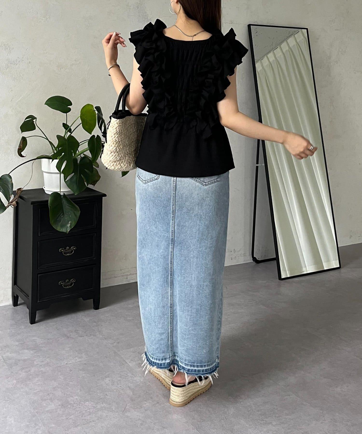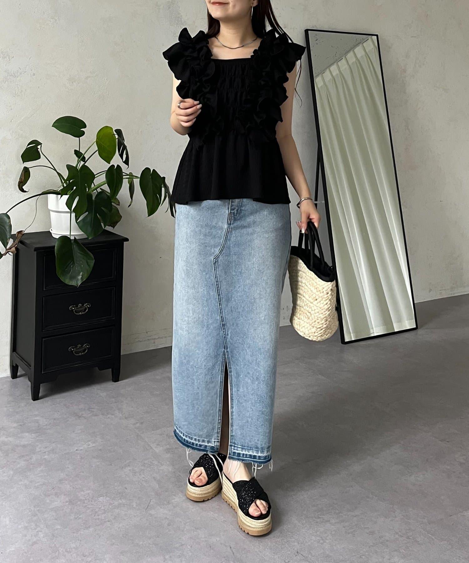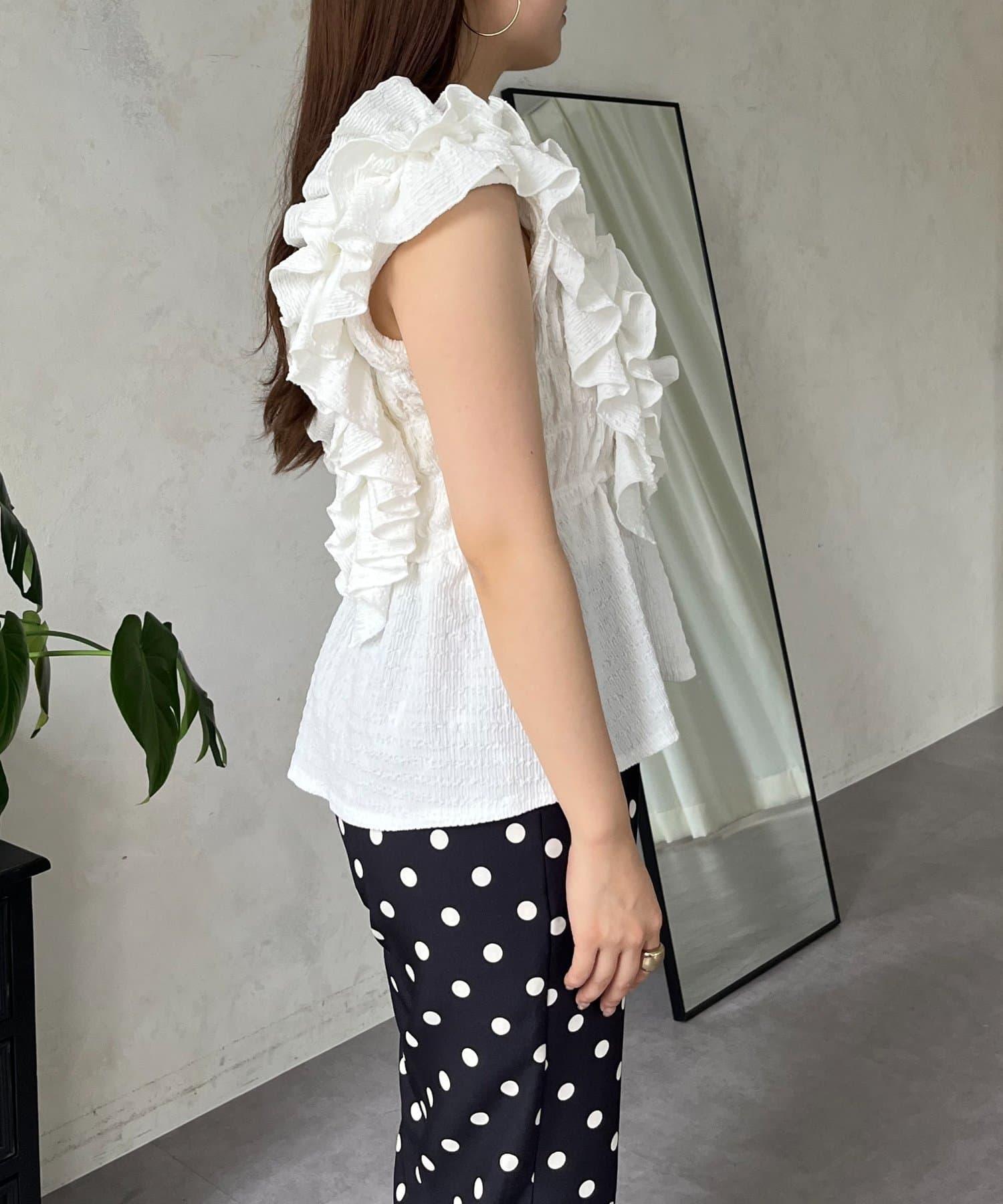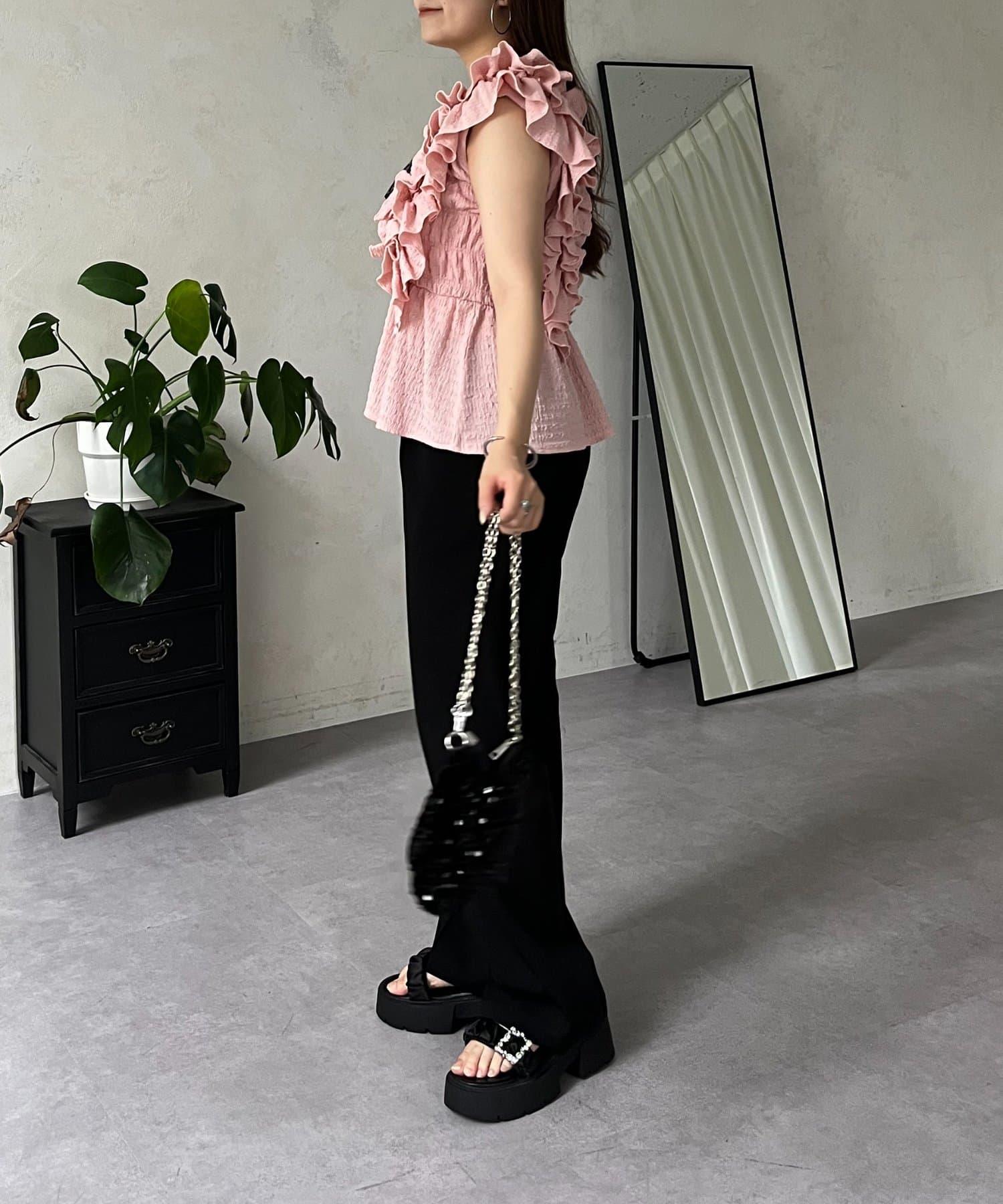 荷葉邊的設計偏向甜美,但如果搭配牛仔褲等。