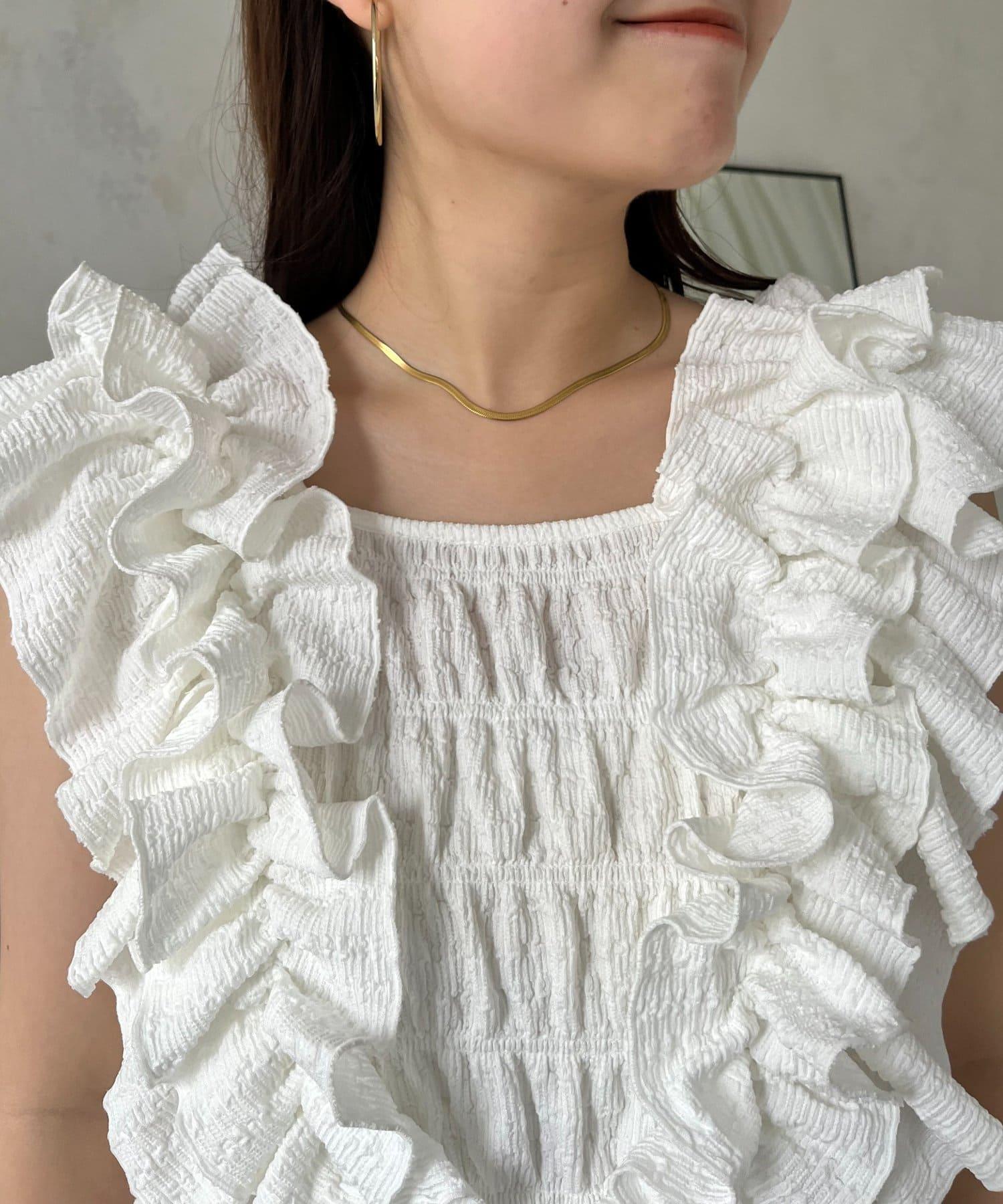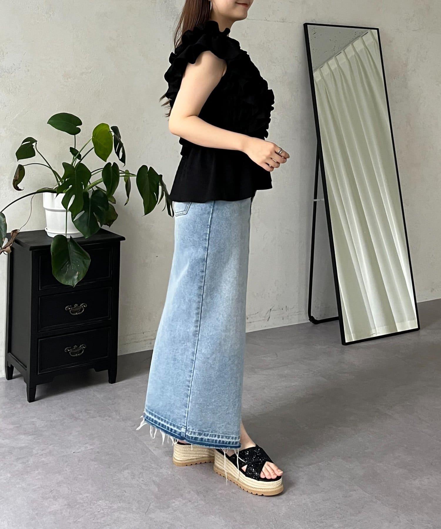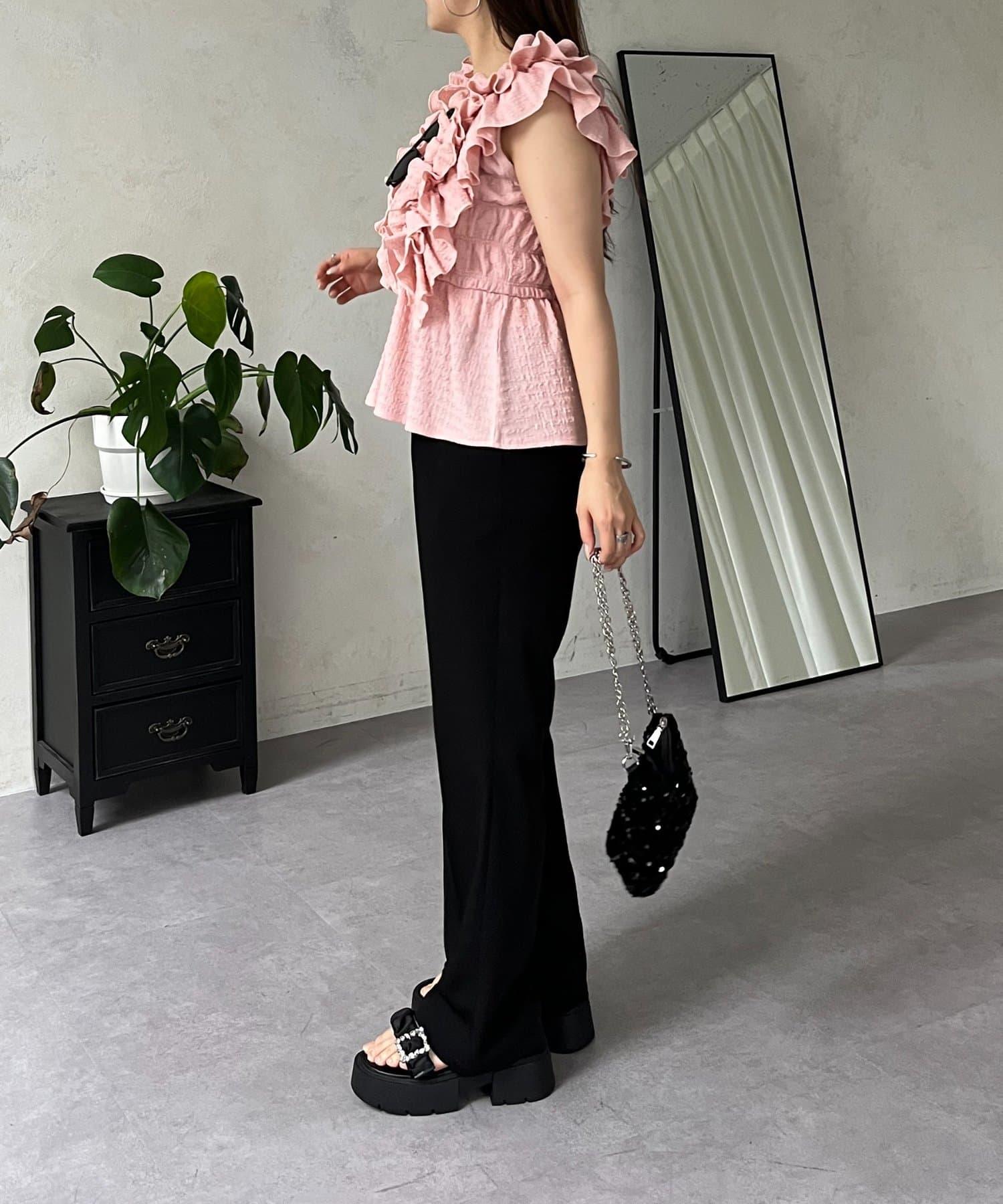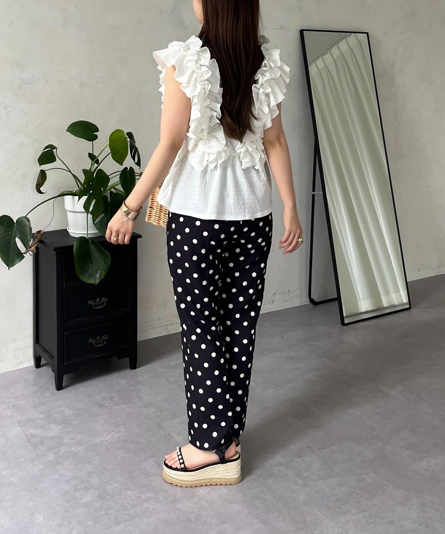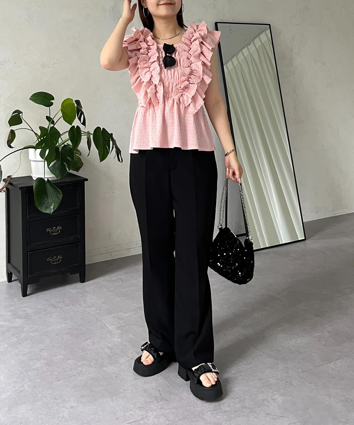荷葉邊的設計偏向甜美,但如果搭配牛仔褲等。