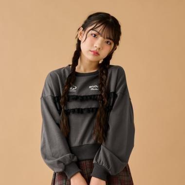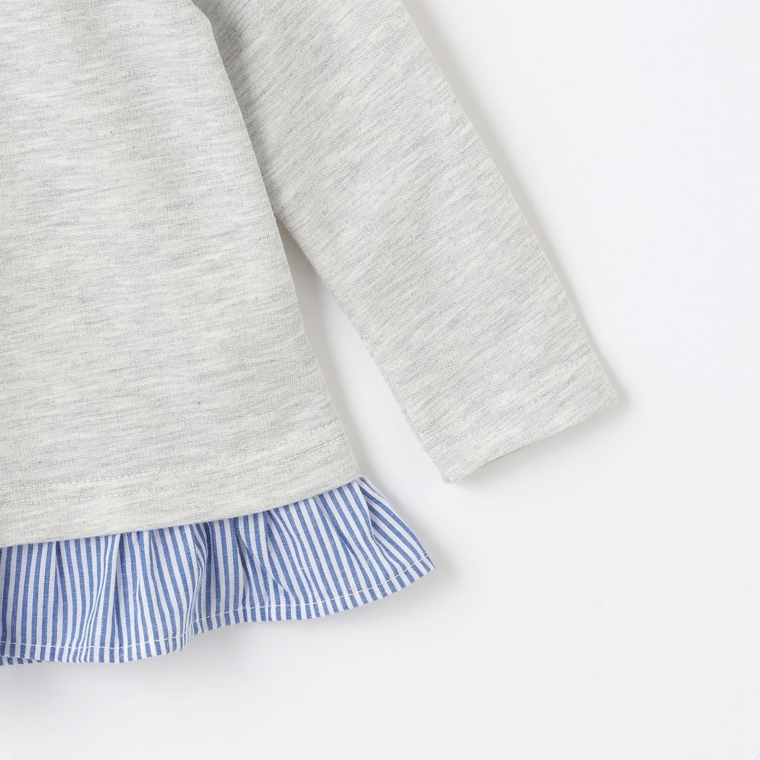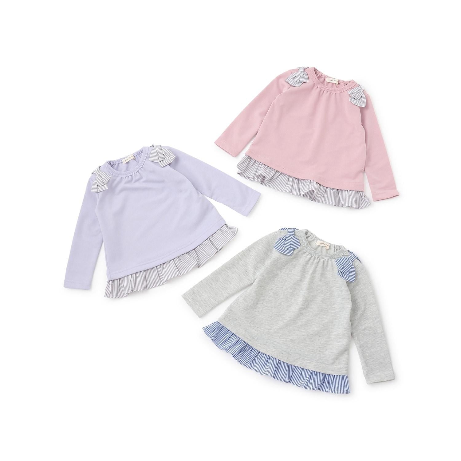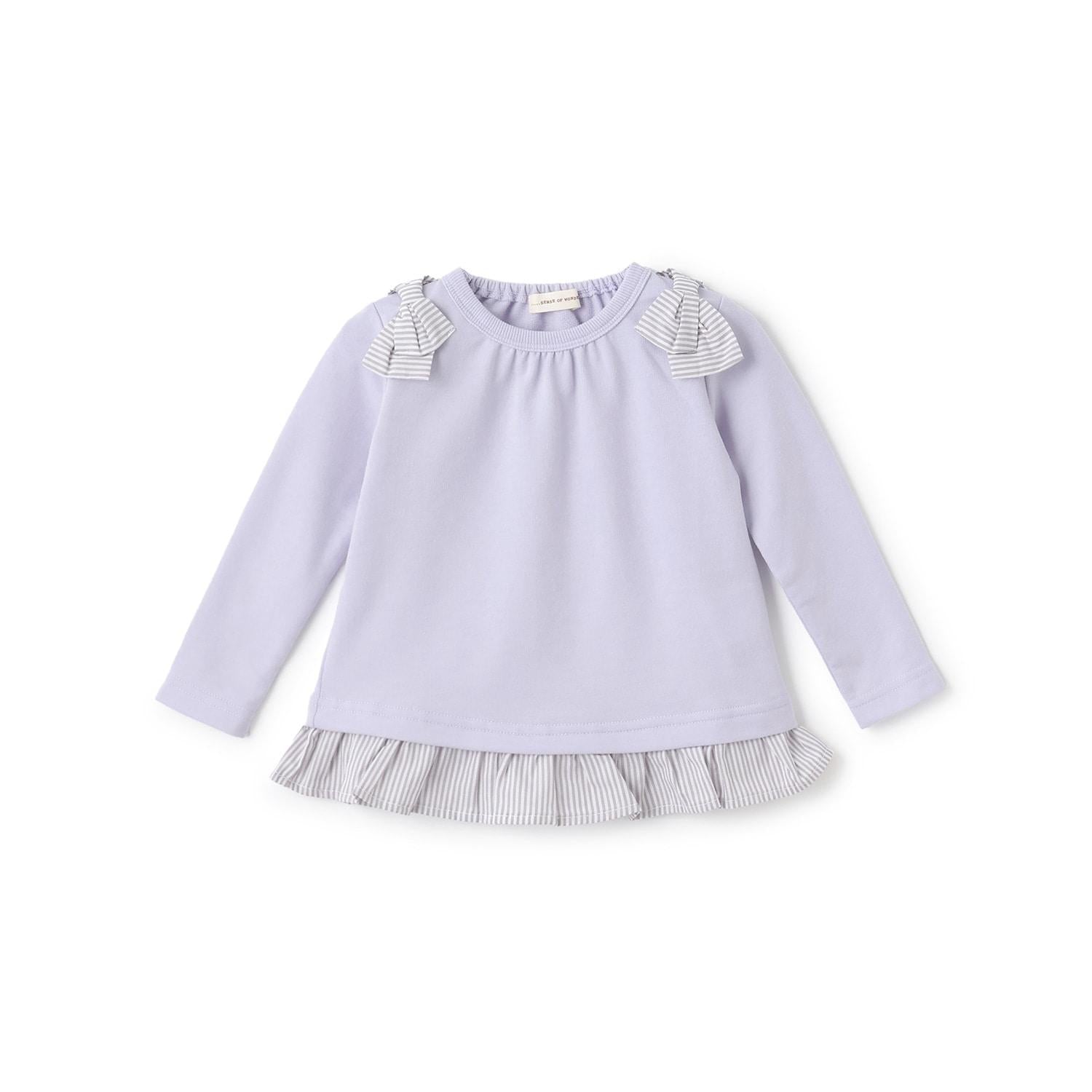 下襬的荷葉邊與緞帶有著相同的條紋圖案,營造出清新的氛圍。