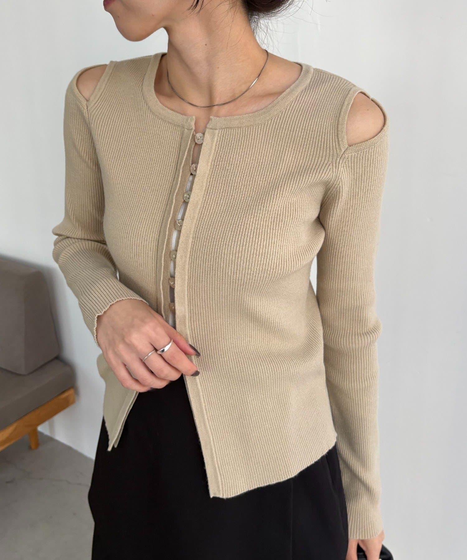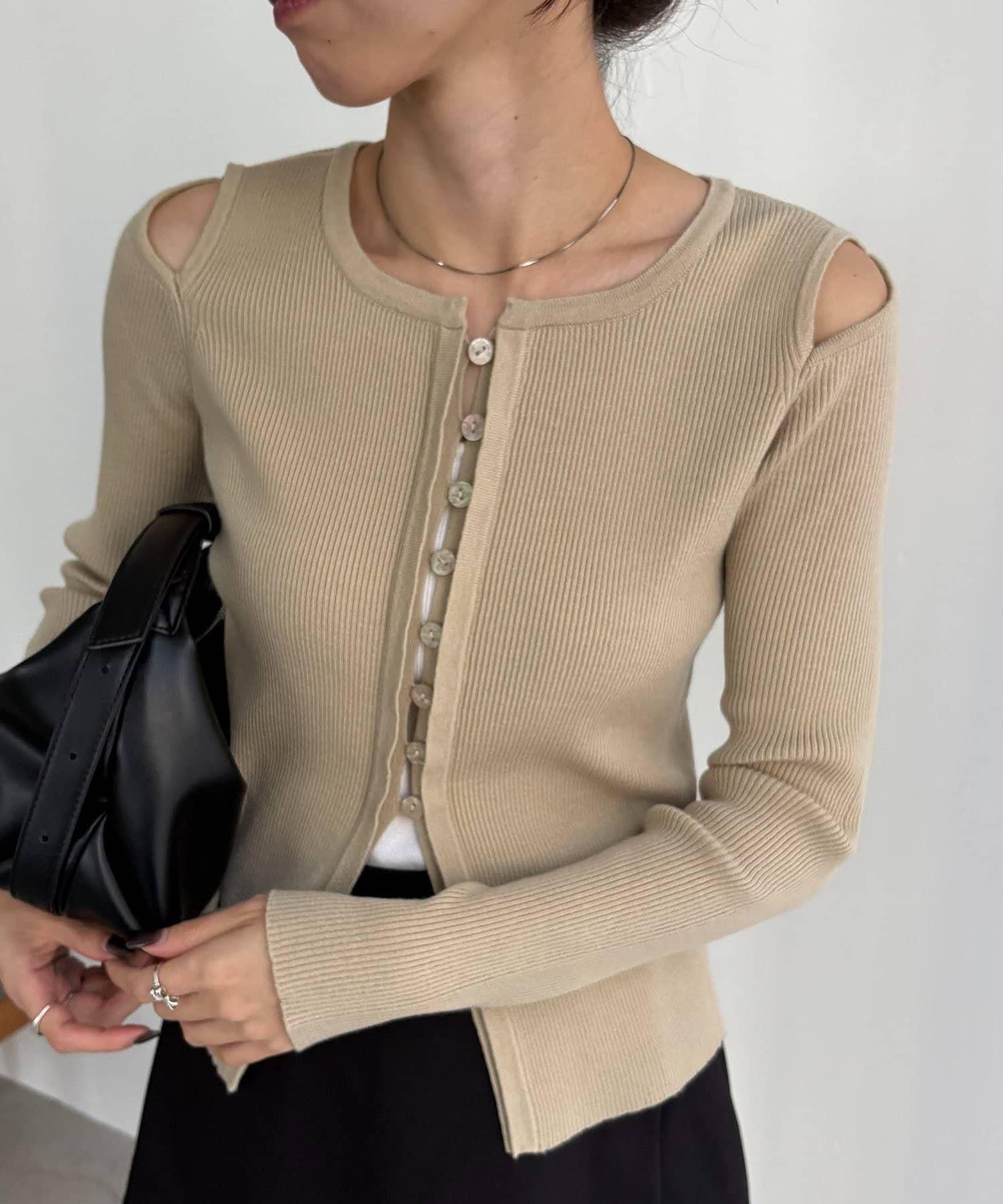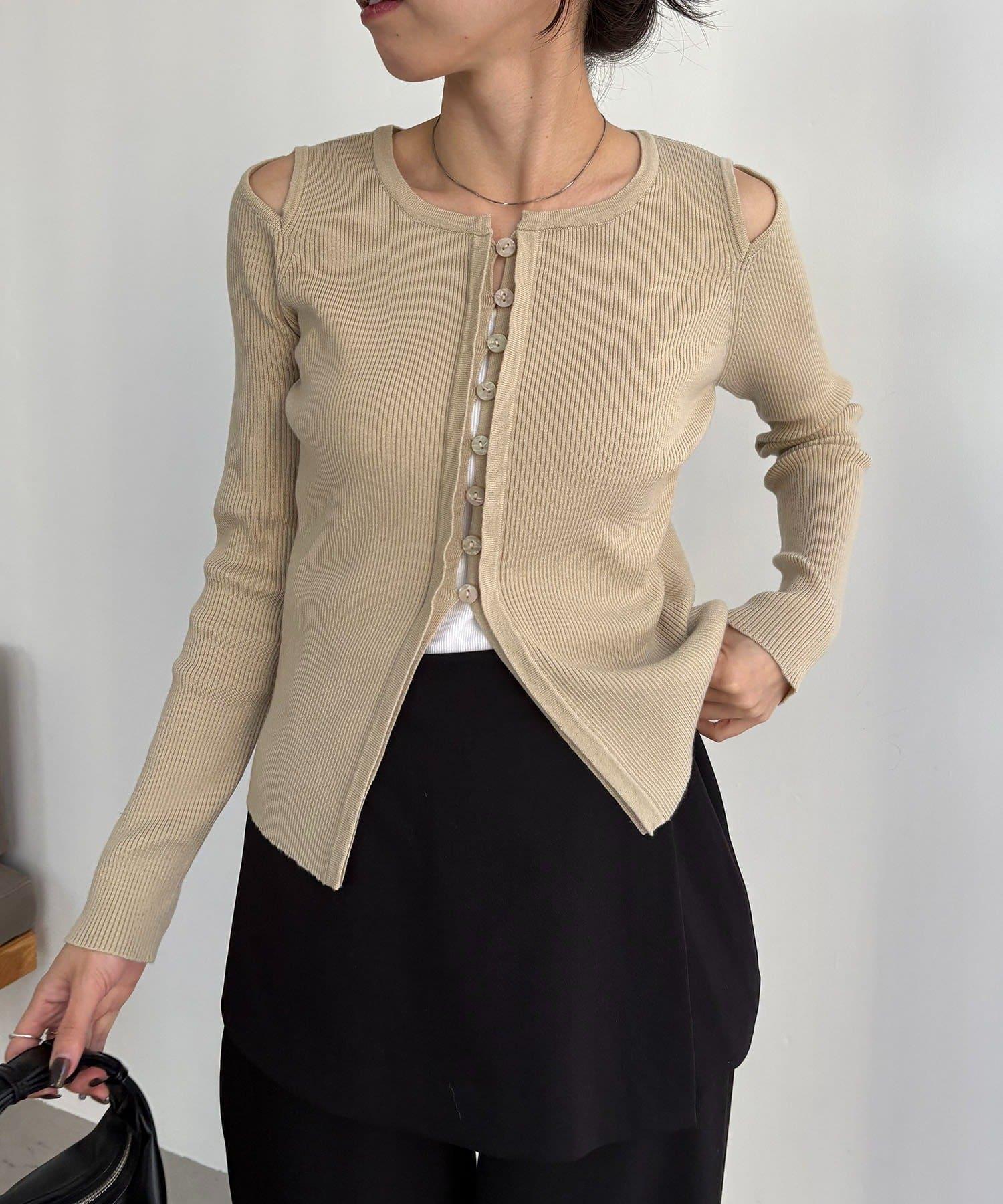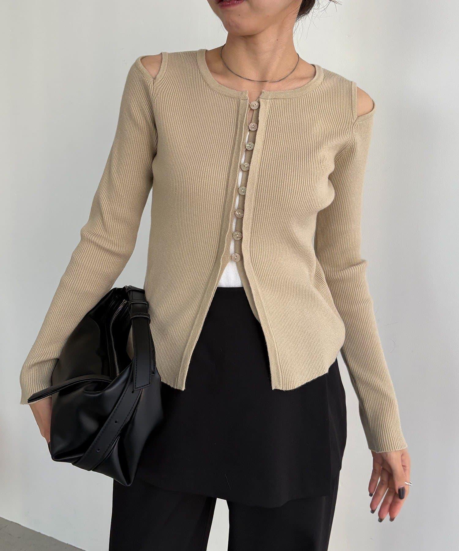 肩部開口紐扣開衫
