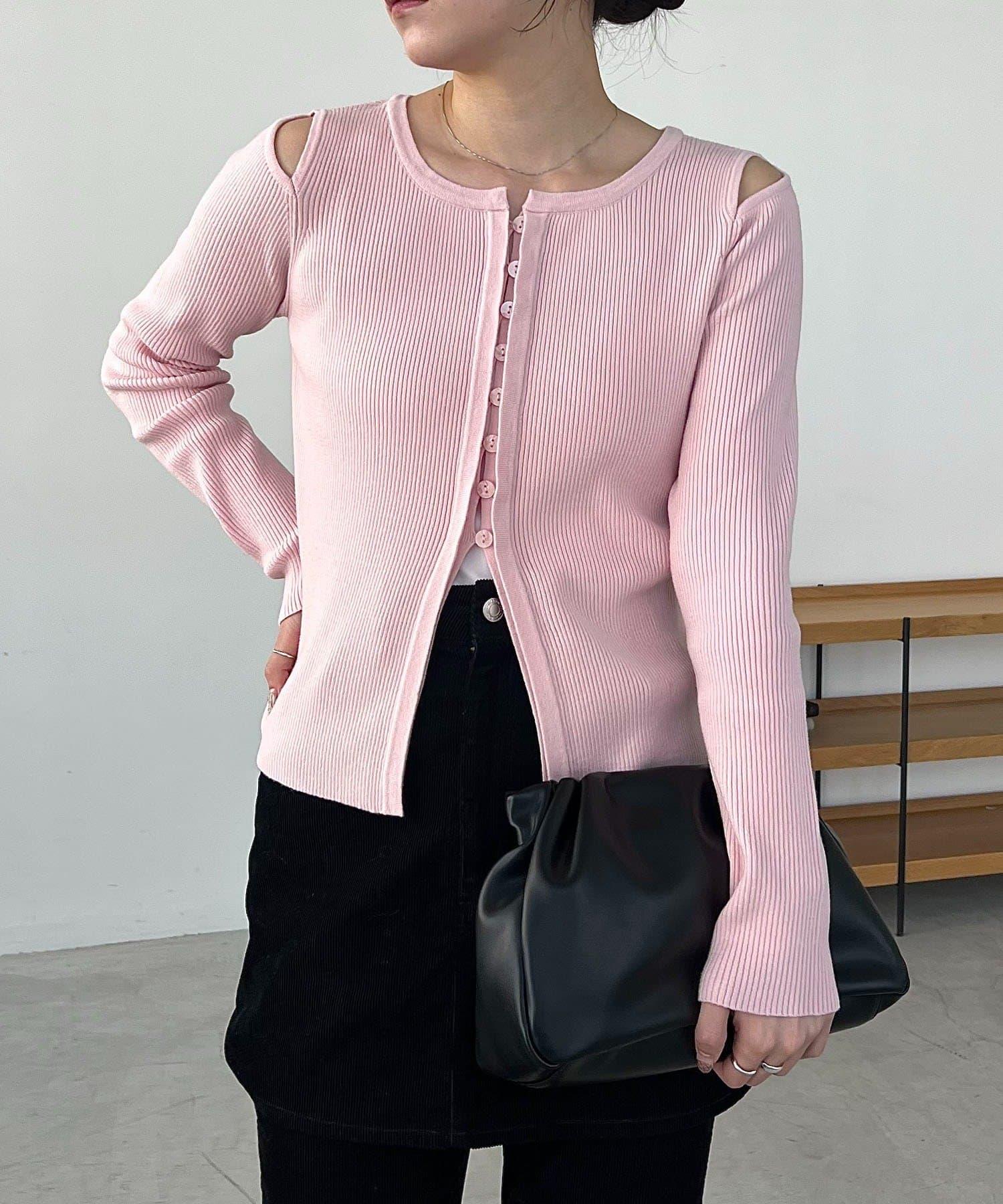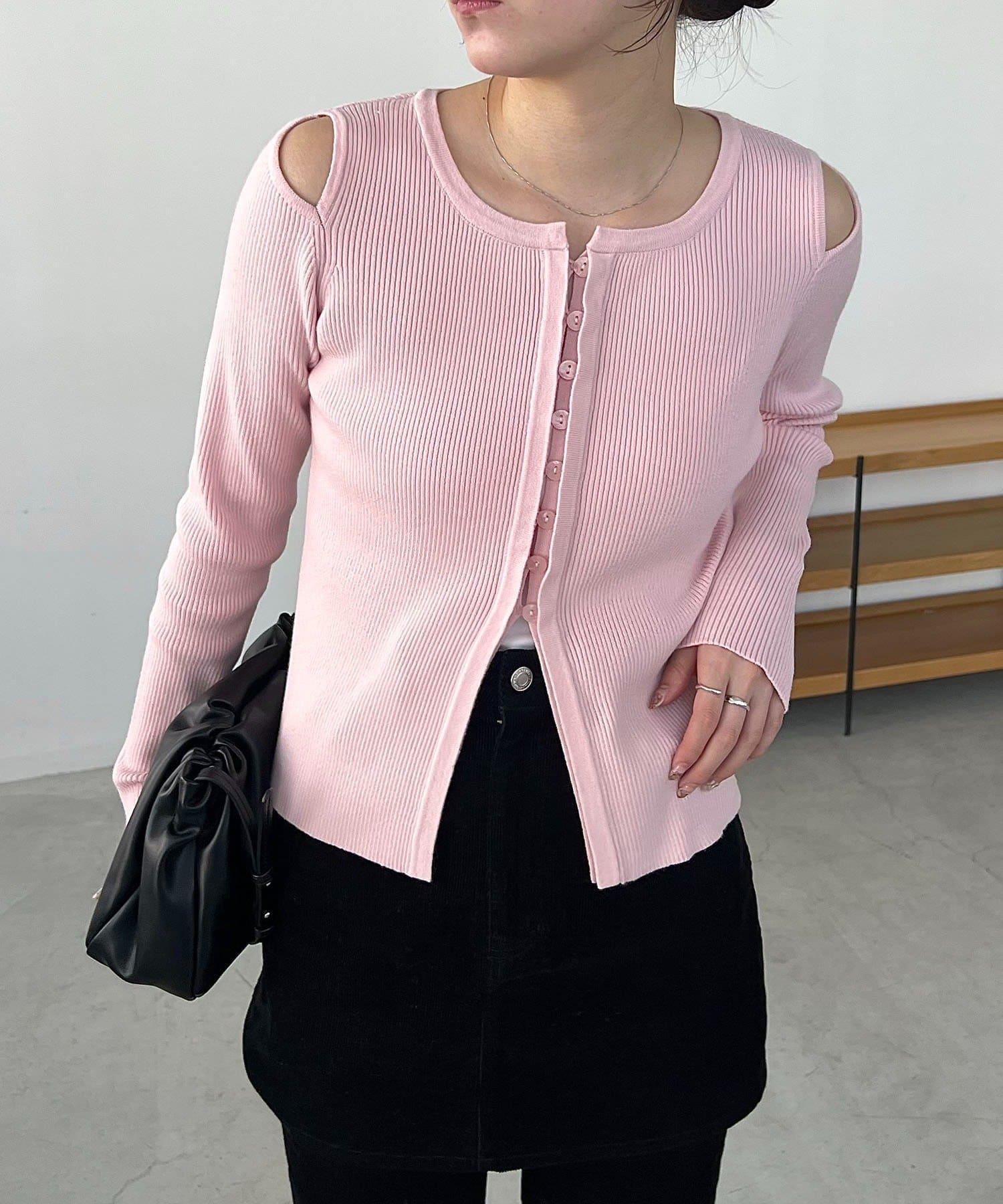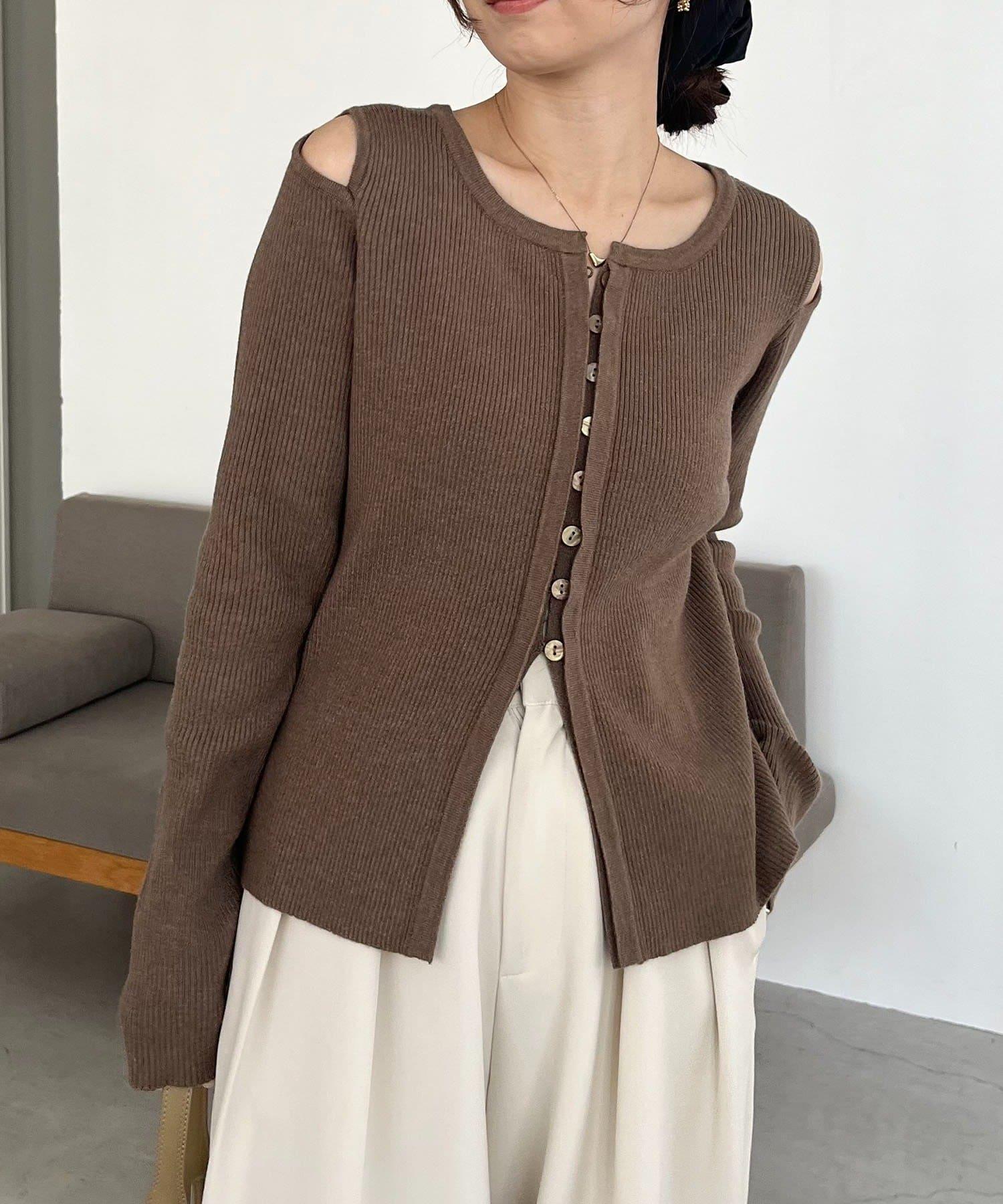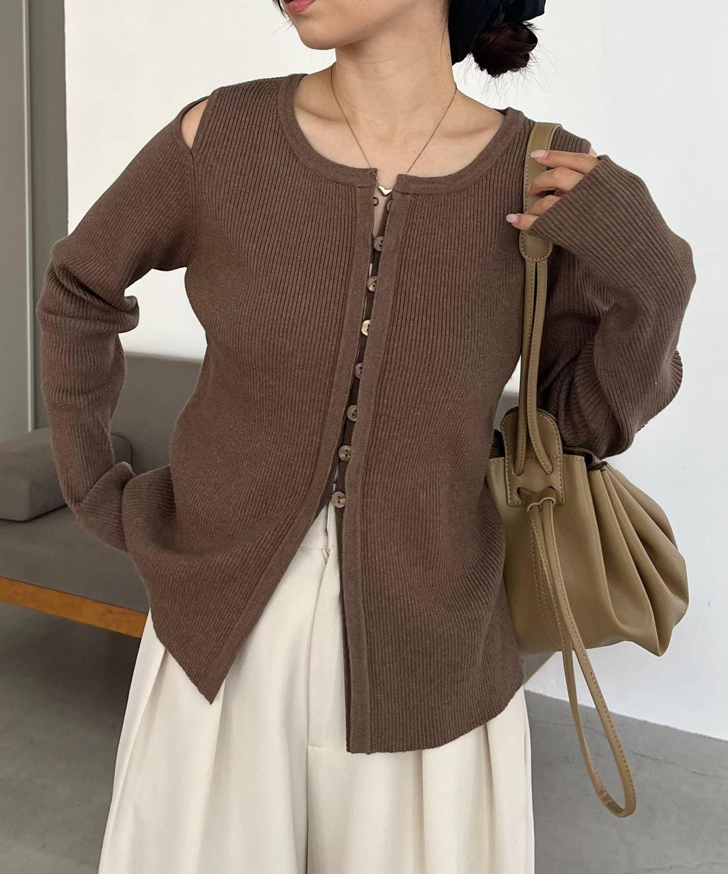 肩部開口紐扣開衫