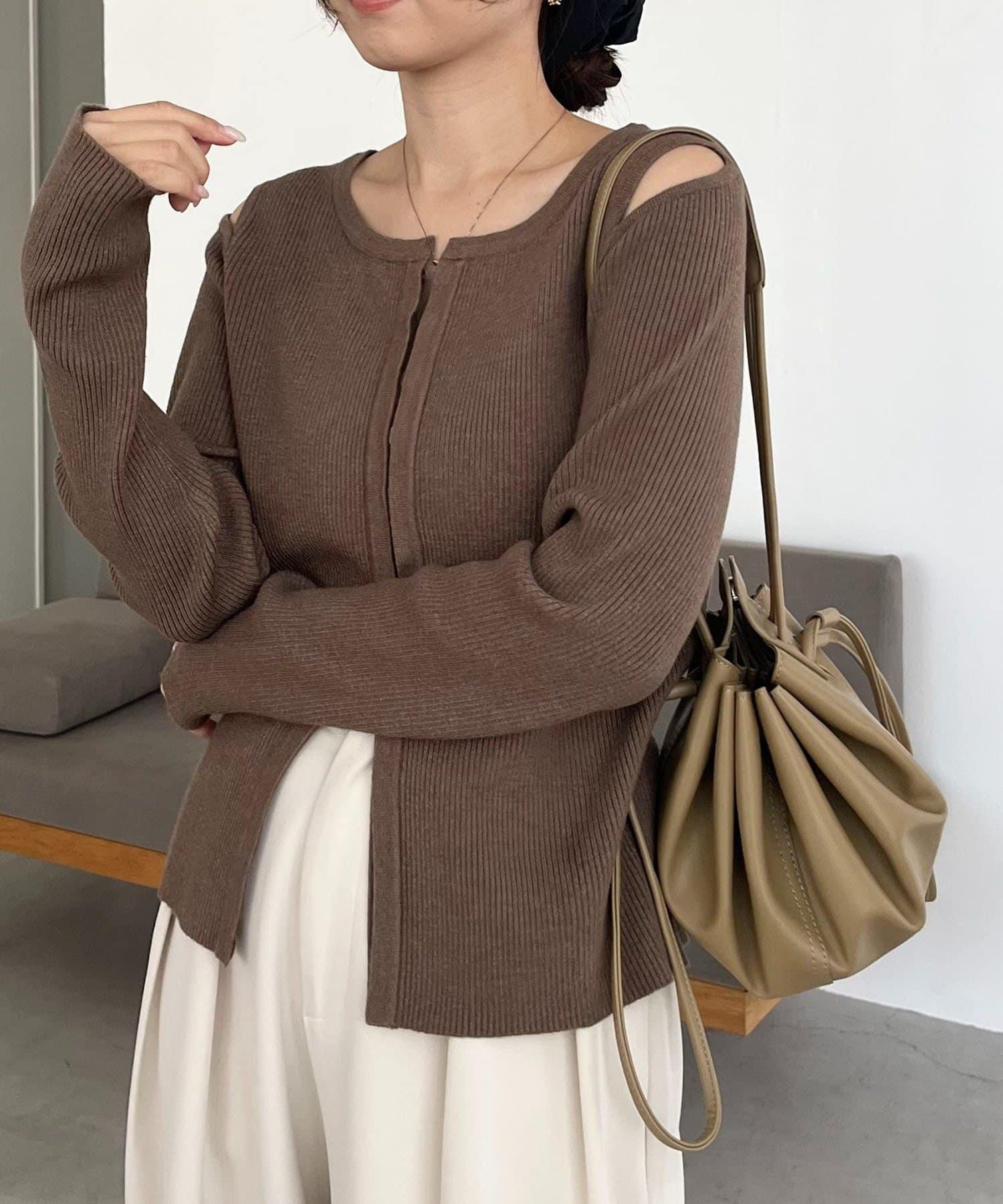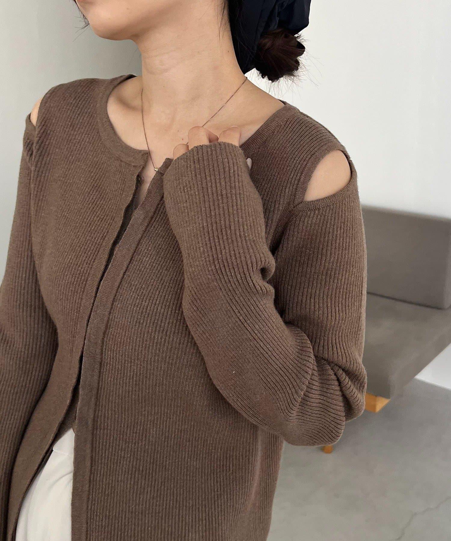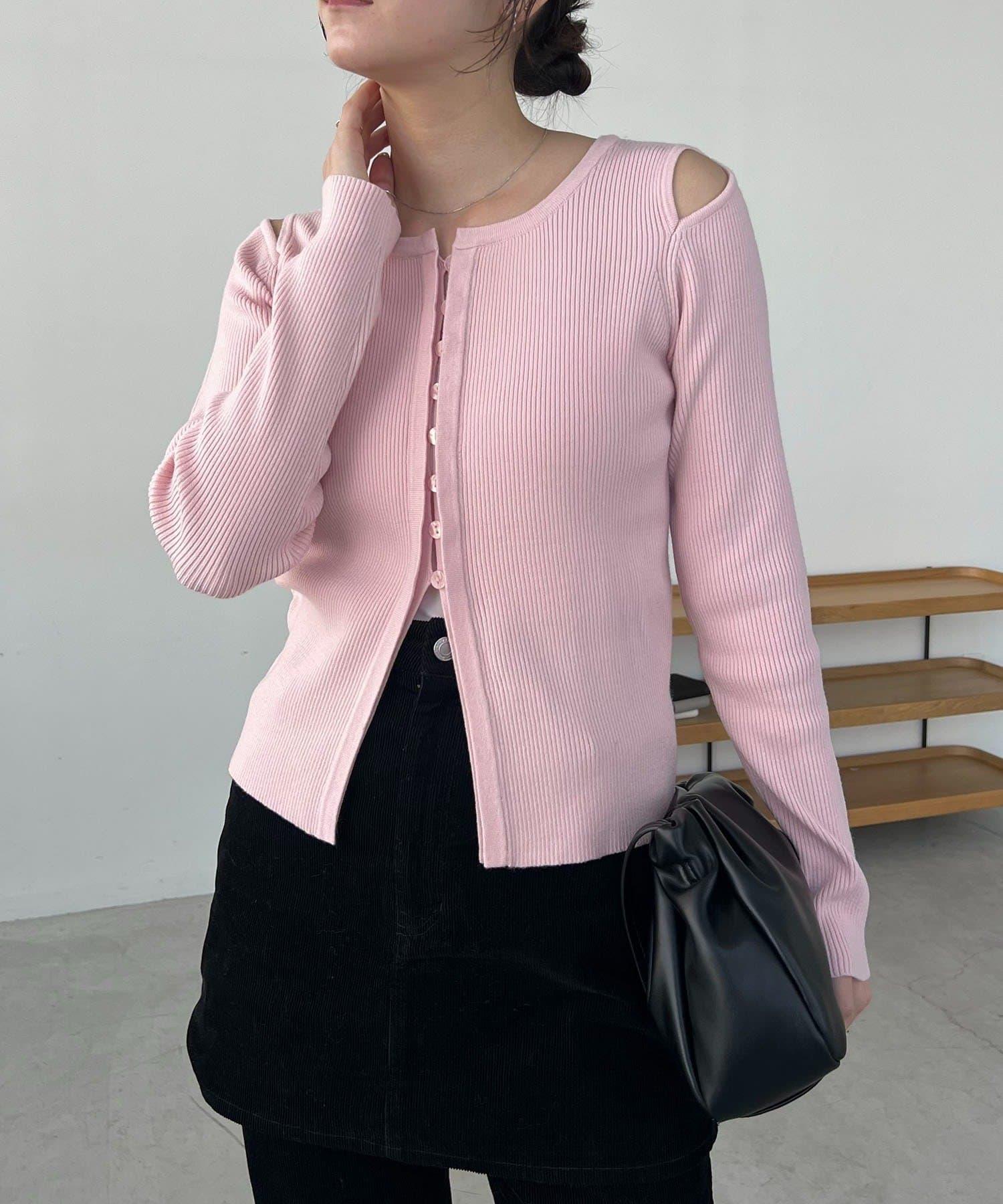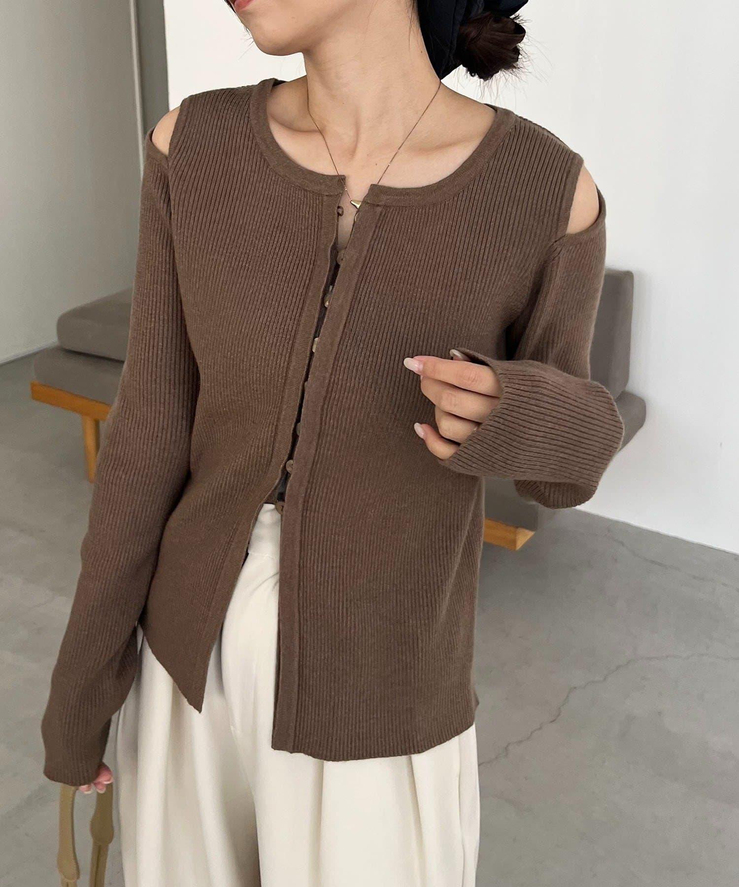 肩部開口紐扣開衫