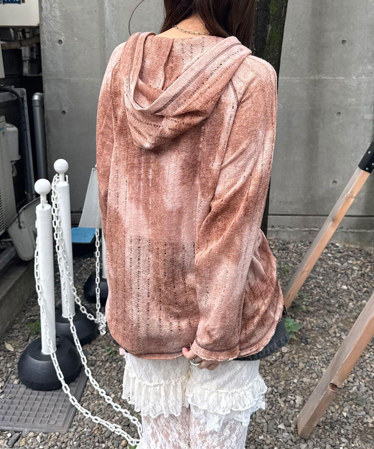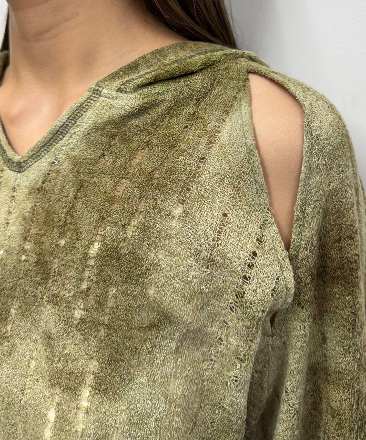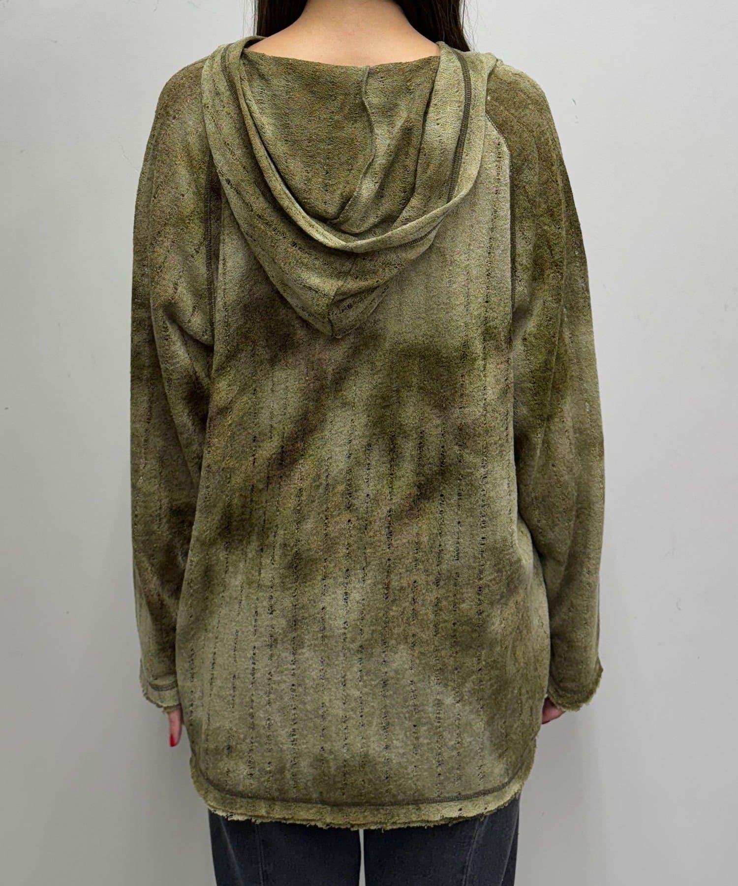 這款扎染連帽衫肩部開衩,在寬鬆感和露膚之間取得了精緻的平衡。
