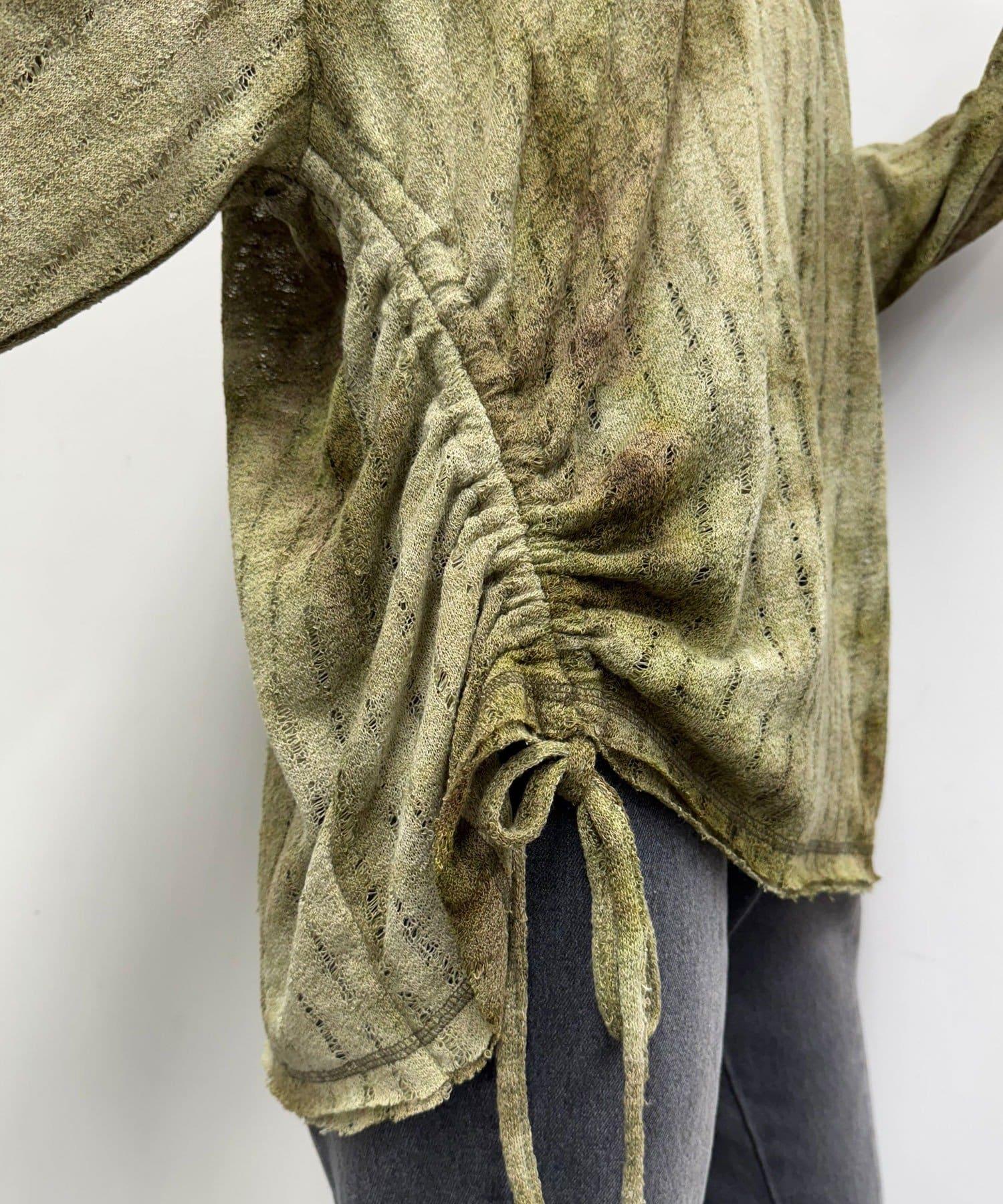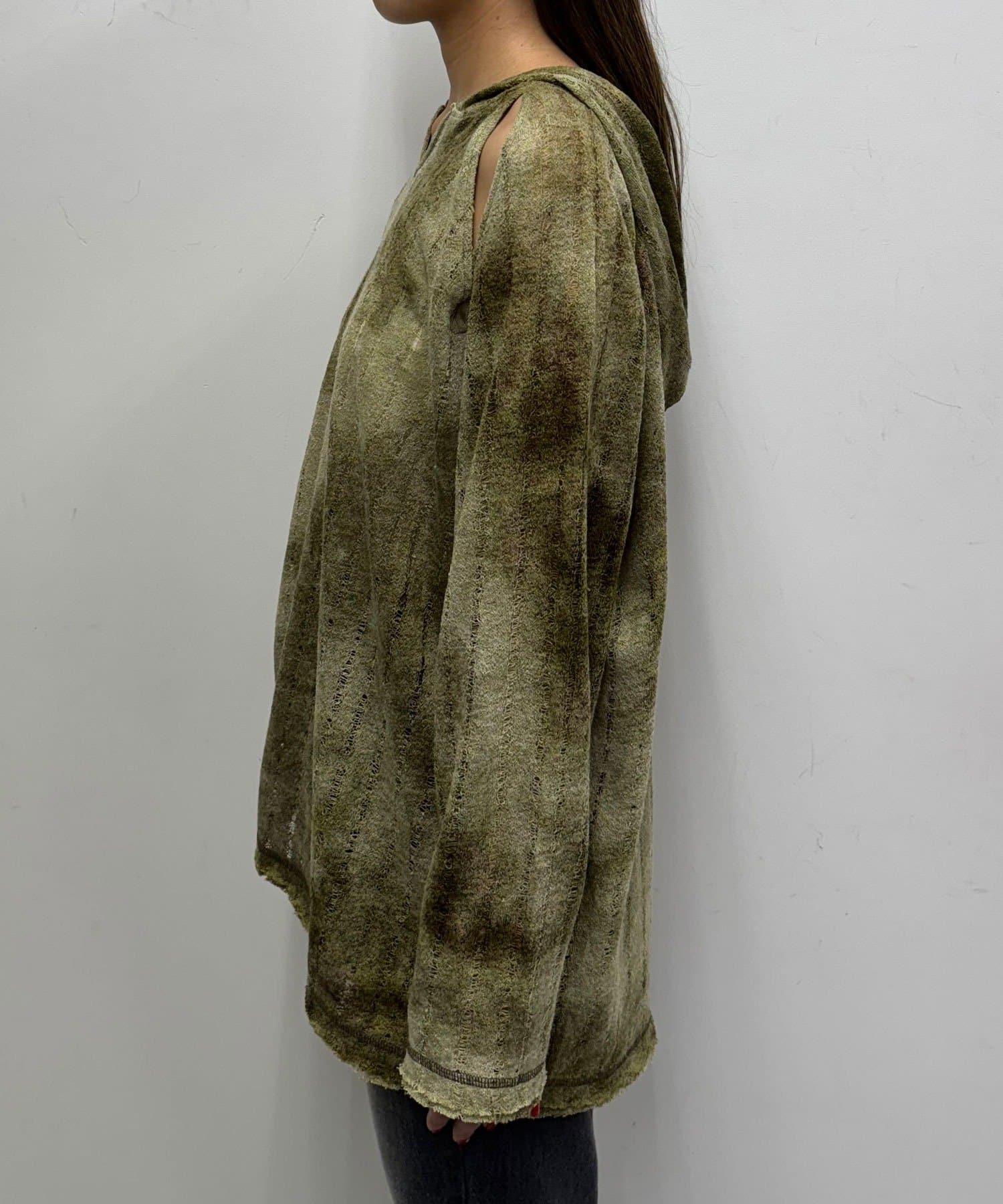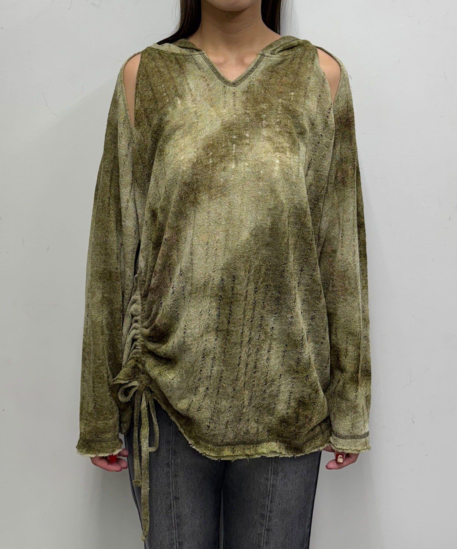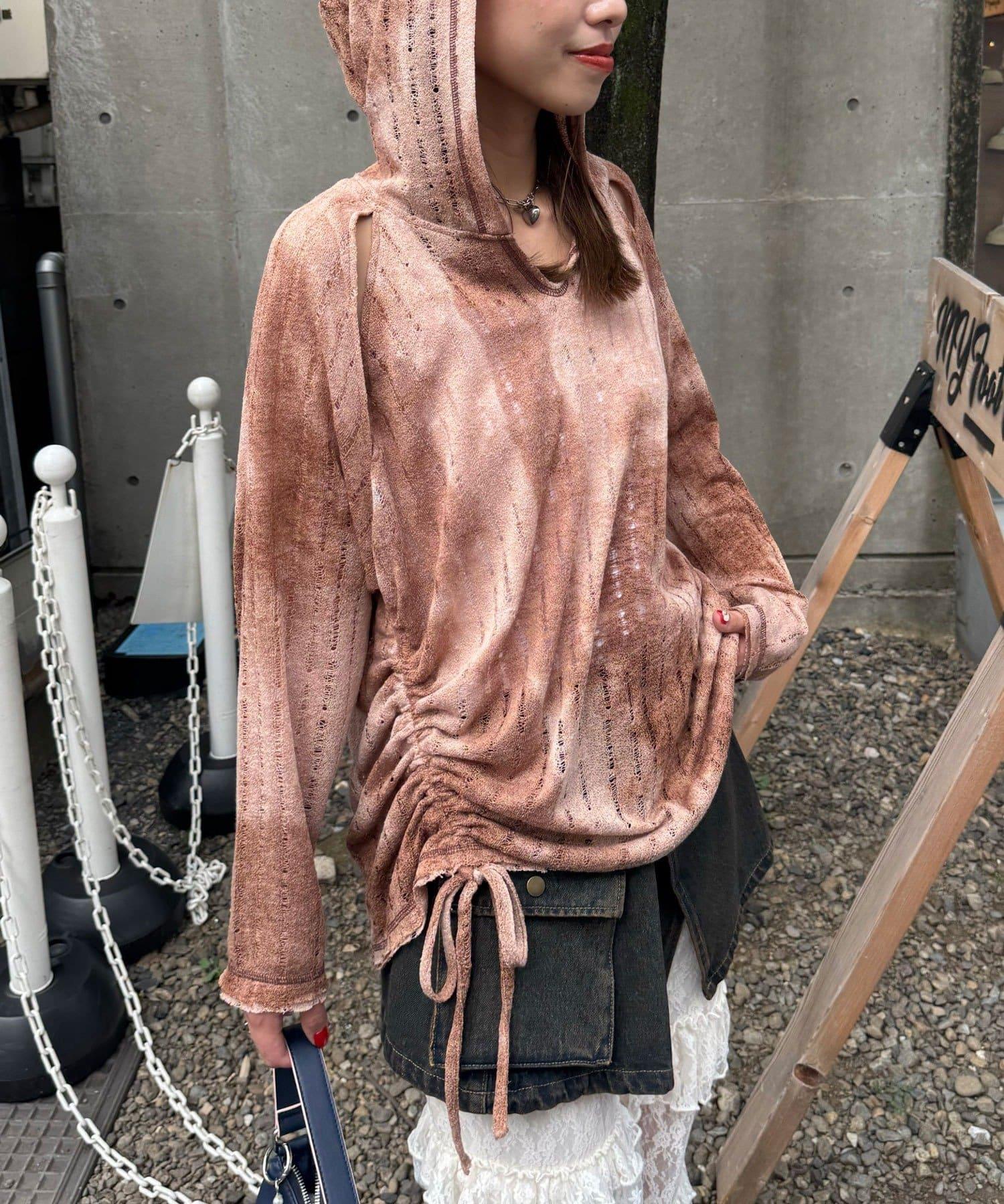 這款扎染連帽衫肩部開衩,在寬鬆感和露膚之間取得了精緻的平衡。