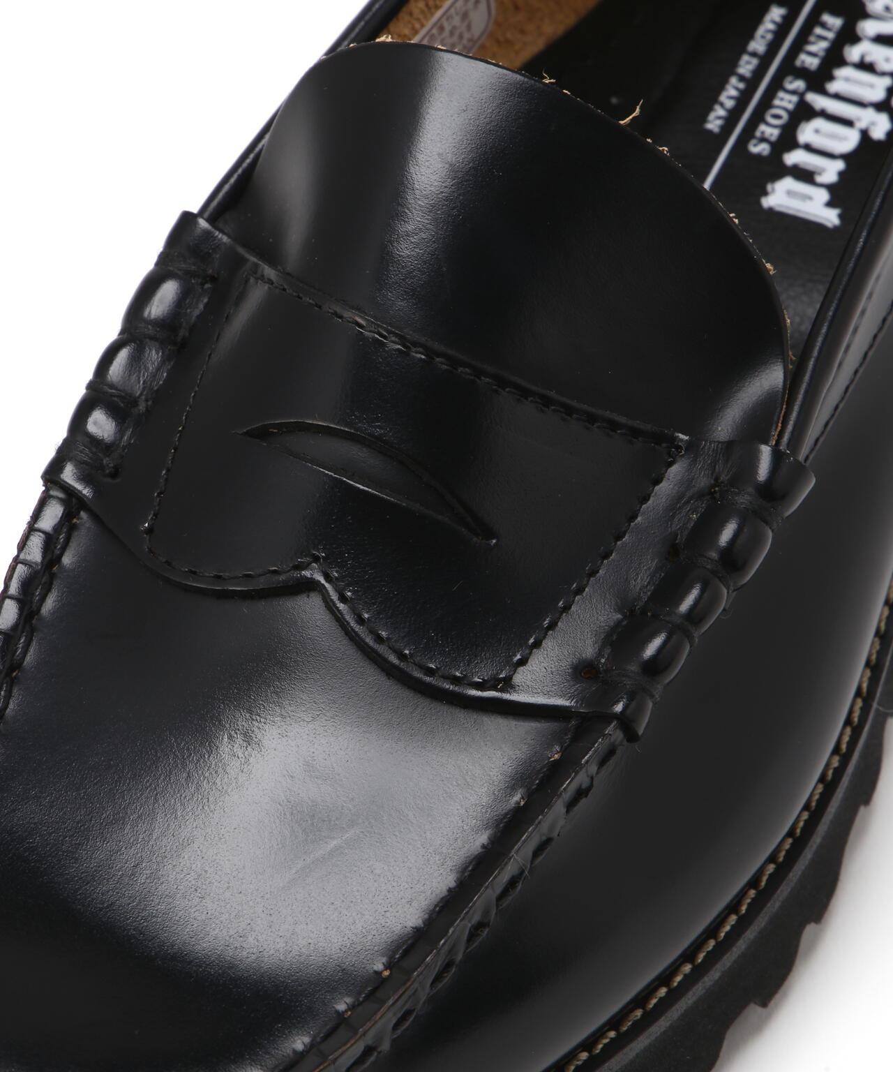 Kenford Fineshoes / Kenford Fine Shoes / MENS TANK SOLE LOAFERS / BLACK [消除皮鞋僵硬感的新標準] 為了提高舒適度,在皮鞋上加厚了約 3 厘米的坦克底。改進了緩衝性能,力求達到即使長時間穿著也不易疲勞的規格。大底由 EVA 材料製成,這種材料也用於運動鞋,因此既寬大又輕便。這雙鞋既能穿出靴子的感覺,又不失寬鬆、豐滿的底面。木質的外形保證了寬度和高度,並以平衡的方式適合粗糙的造型。這款鞋也適合牛肉卷和踢腿。