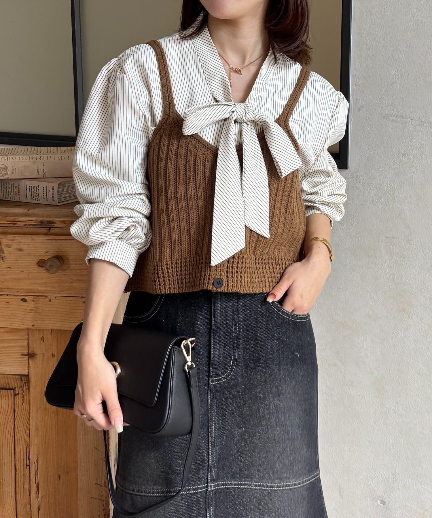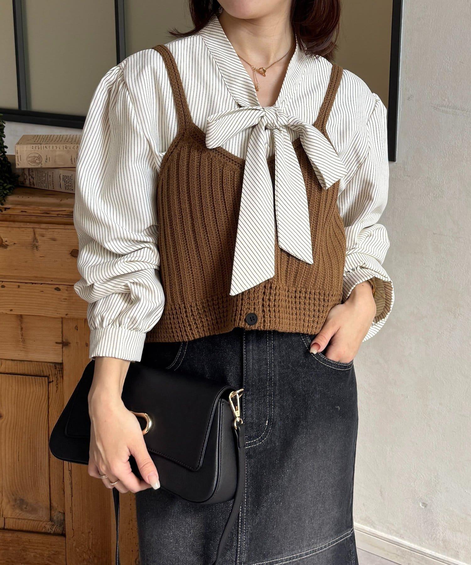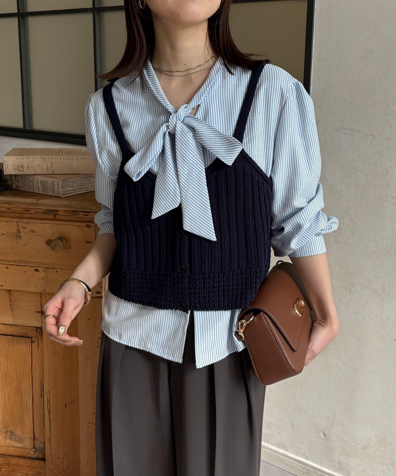 #Set item #Bow tie #Bustier #Blouse #Wear it #Beautiful