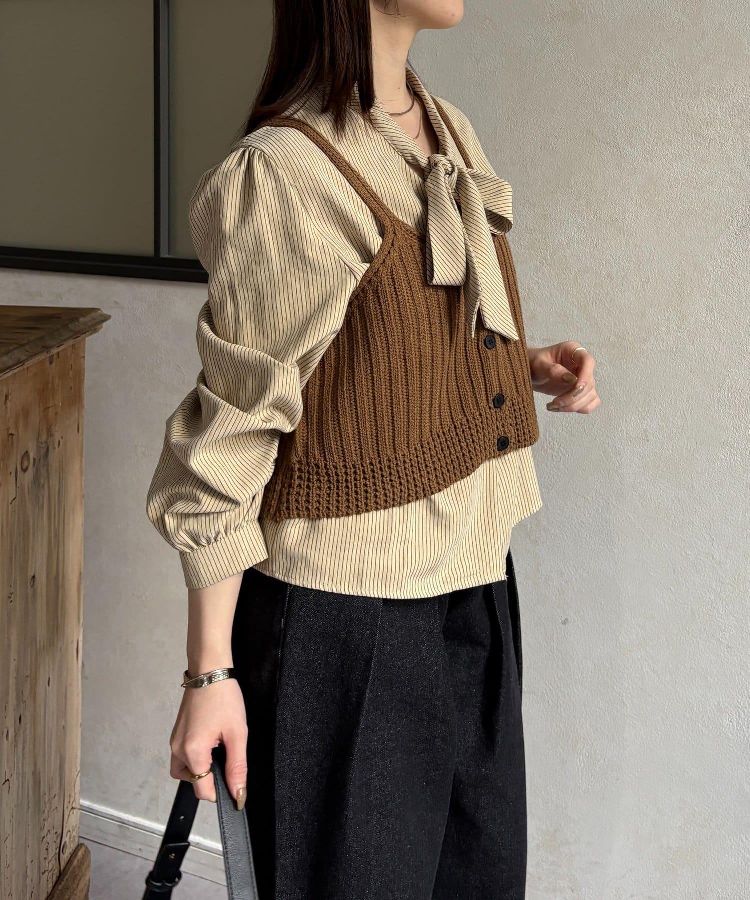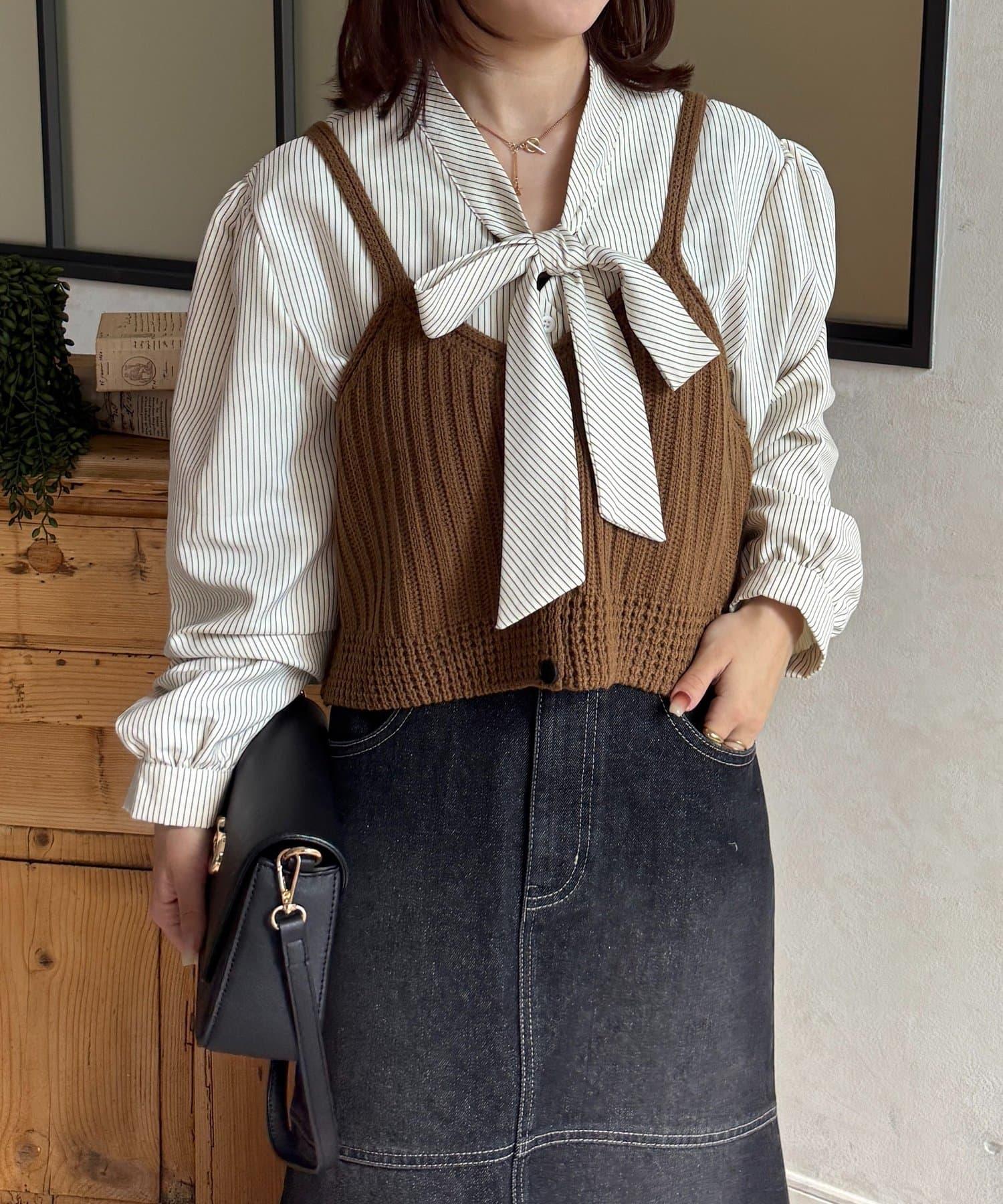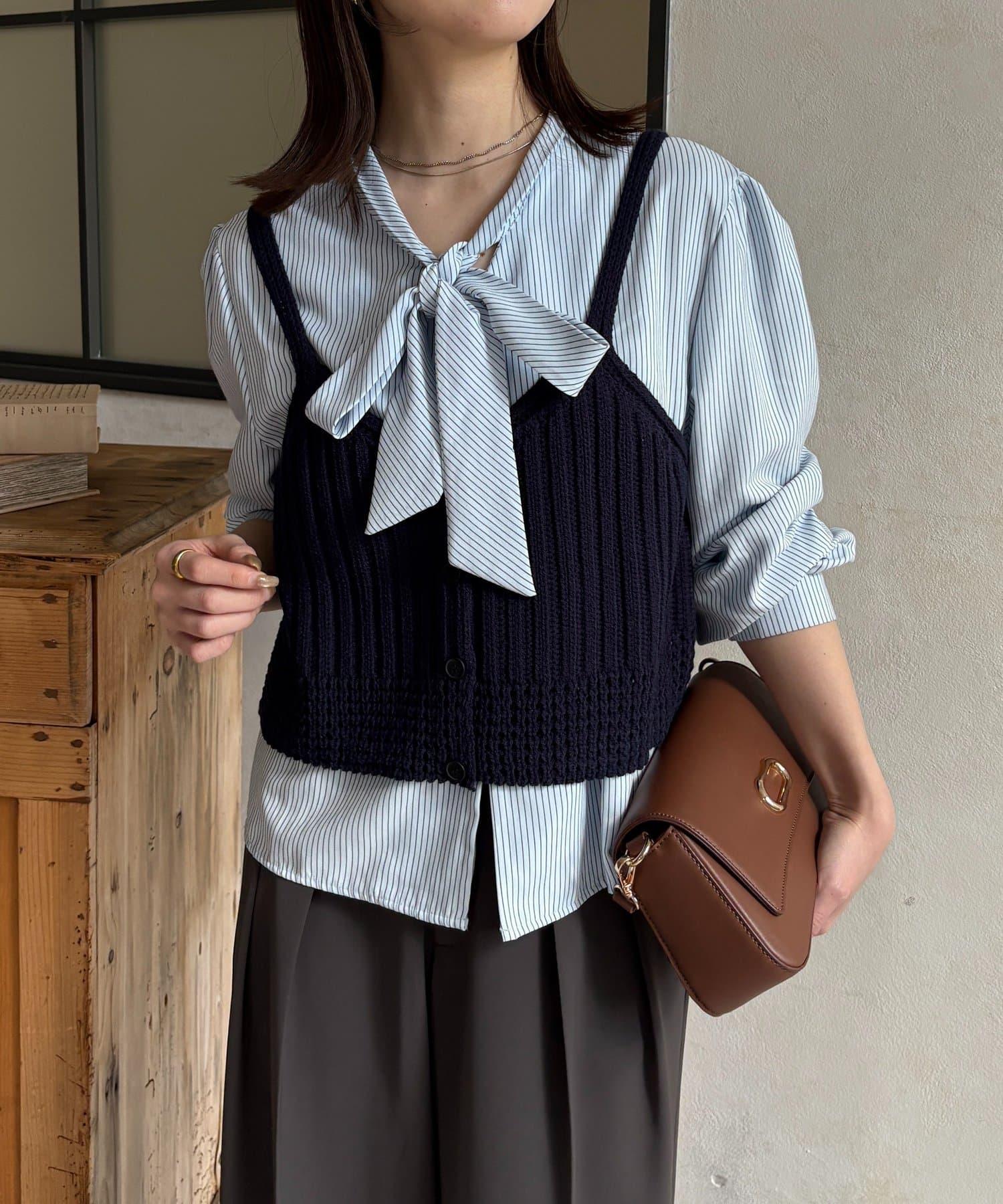 #Set item #Bow tie #Bustier #Blouse #Wear it #Beautiful