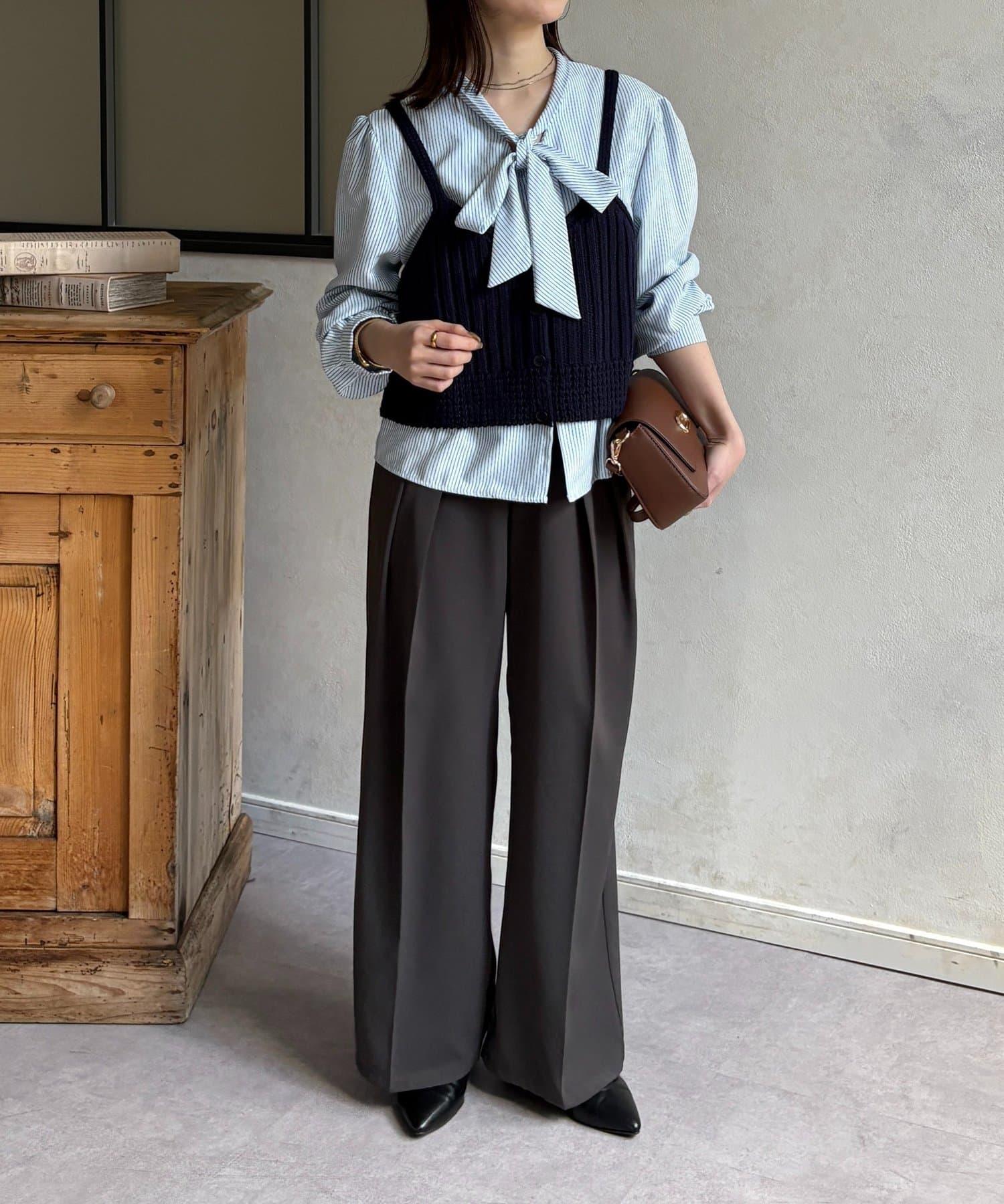上衣、半身裙和休閒褲搭配穿著,也能穿出辦公室的整潔風格。搭配樂福鞋,增添精緻感。