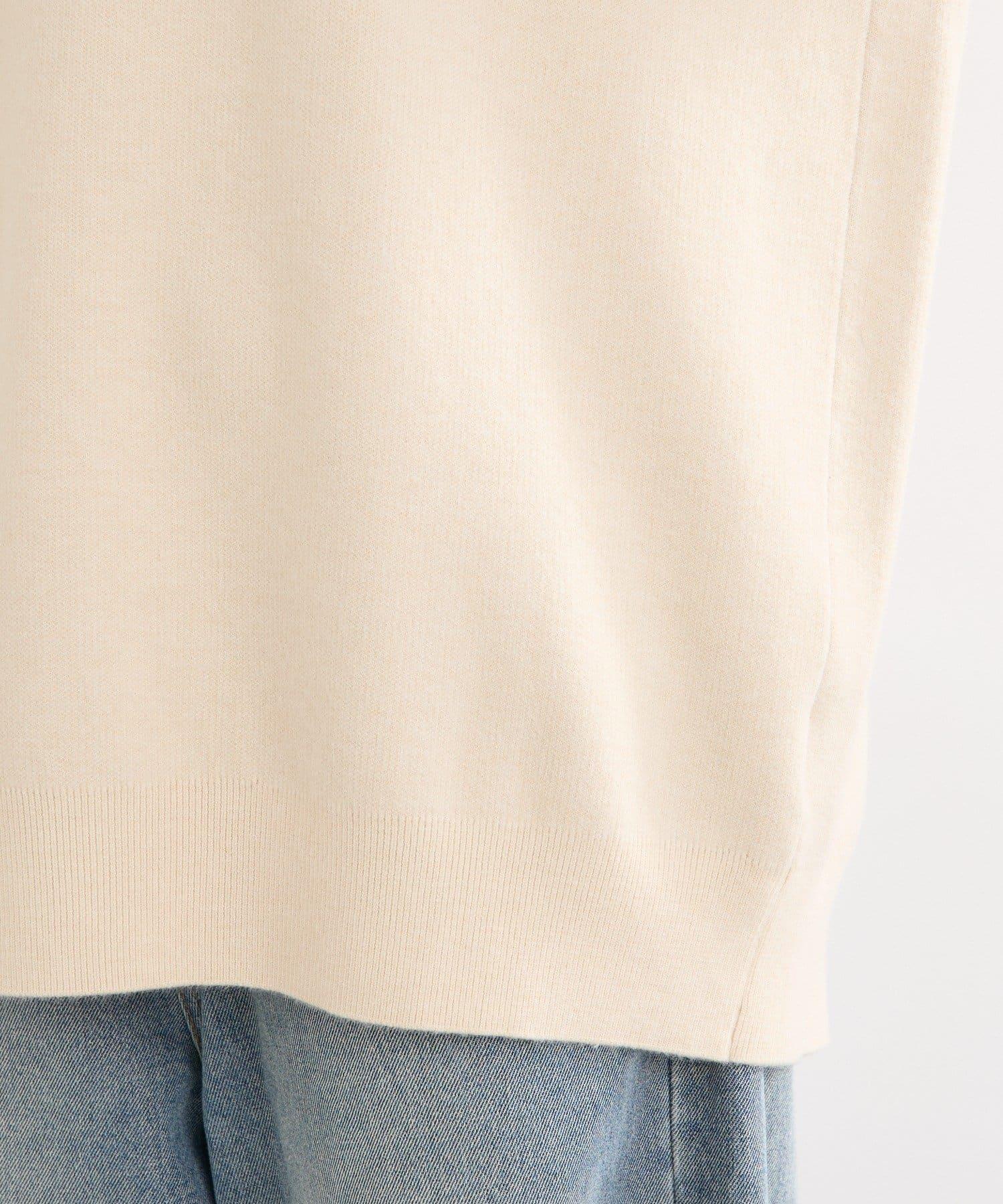 領口的開口設計便於白色 T 恤或襯衫的展示。這是一款適合成人穿著的休閒針織衫。