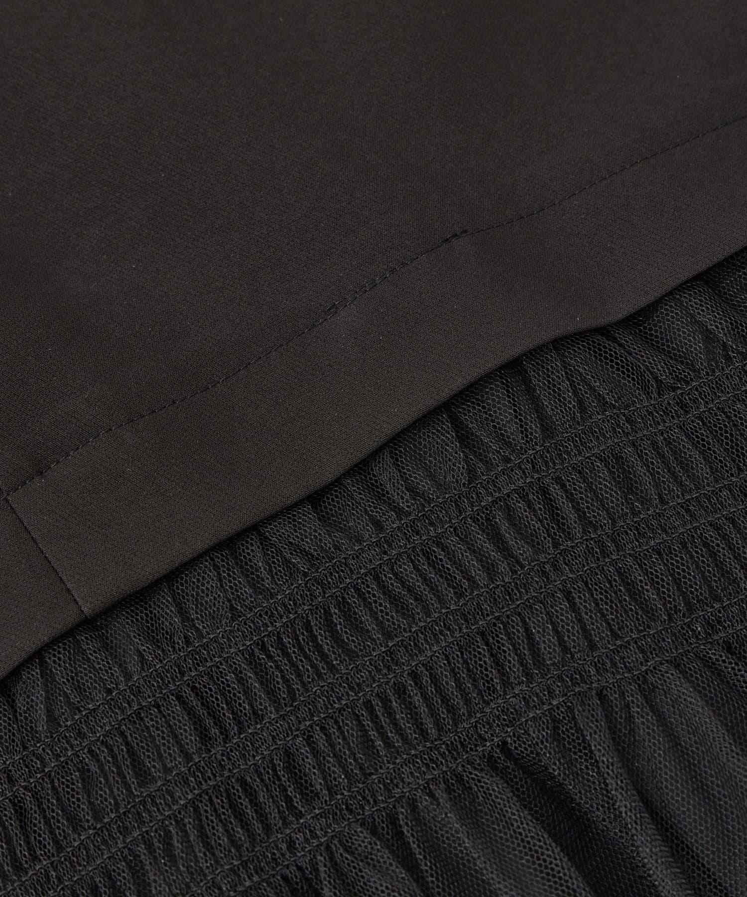 向下擺延伸的喇叭形輪廓遮住了腰部,而下襬的垂墜感隨著每一個動作而擺動,增添了優雅的氛圍。