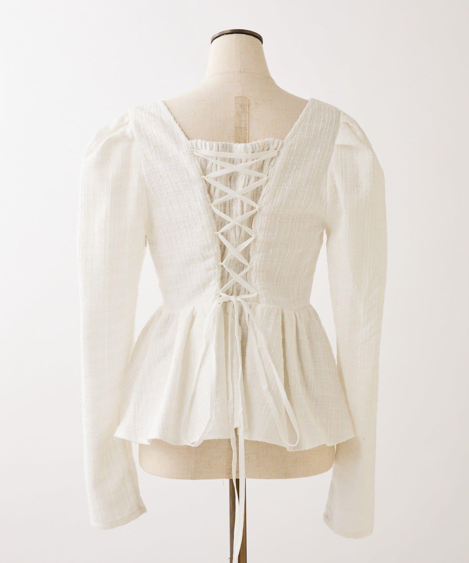 背部繫帶荷葉邊上衣
