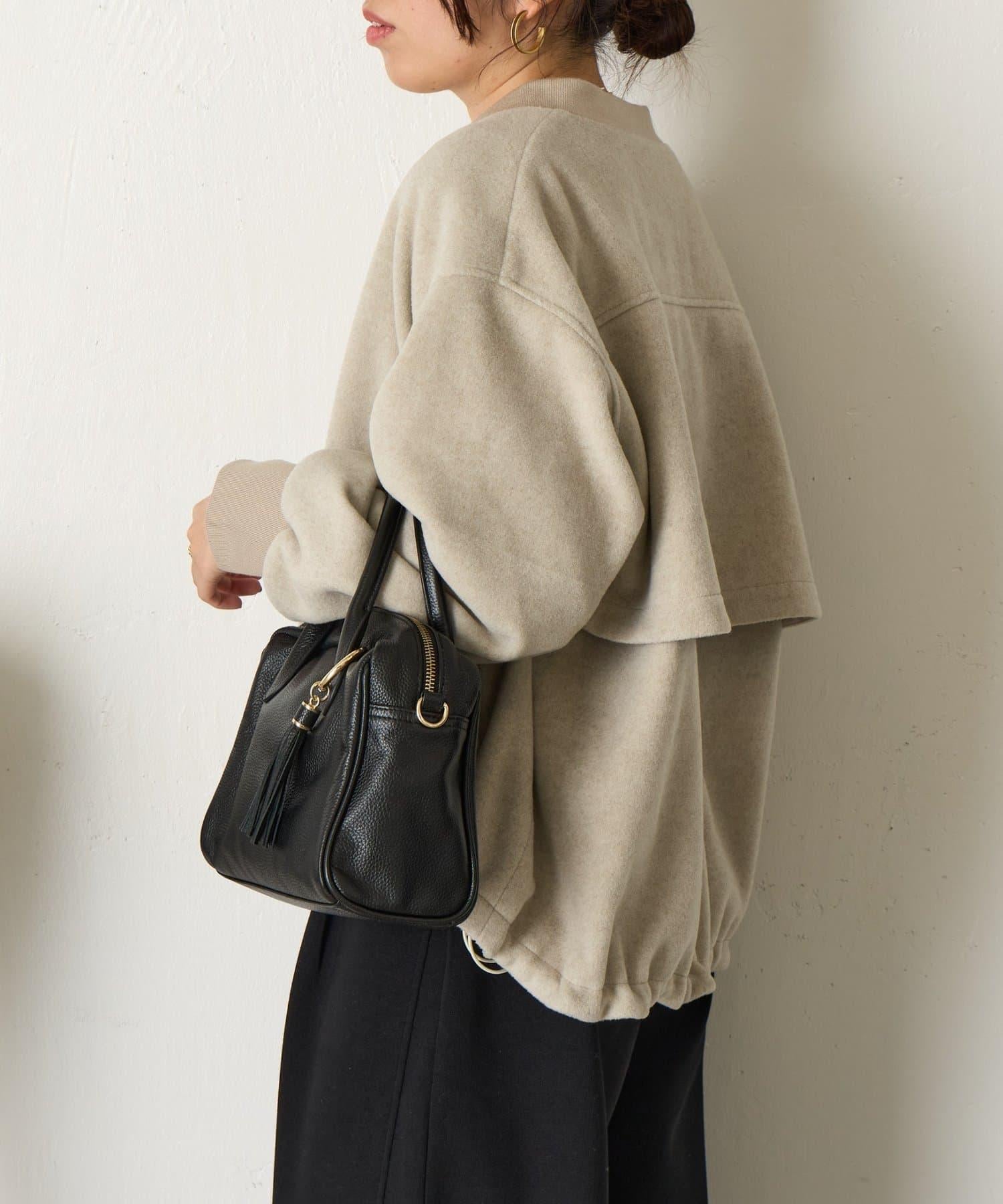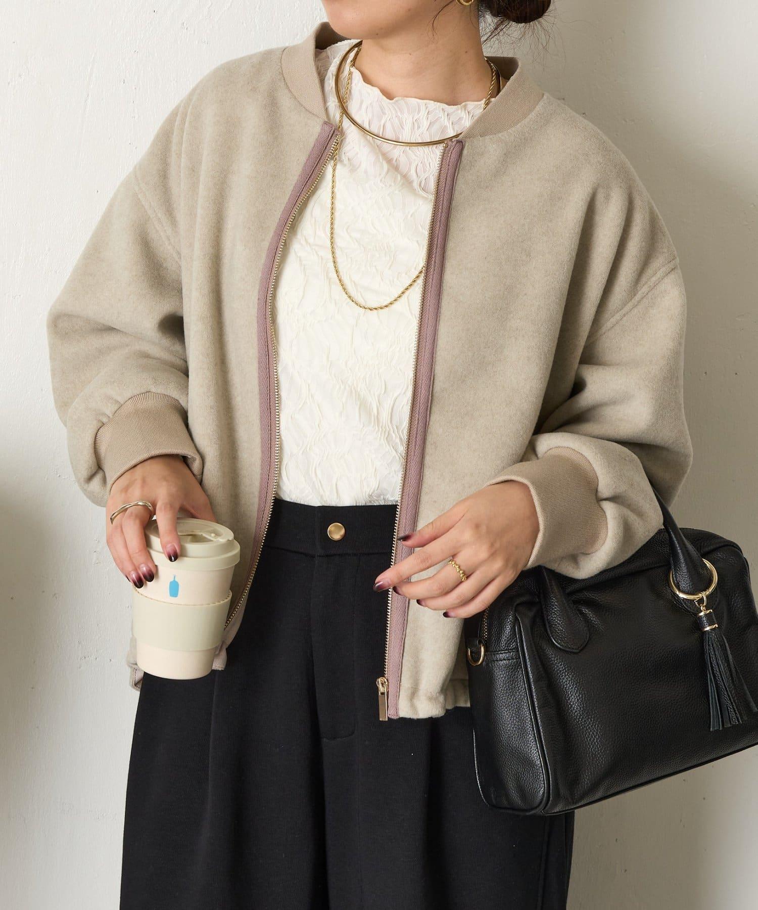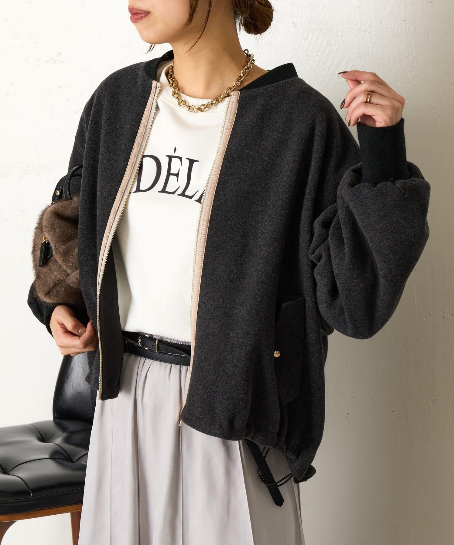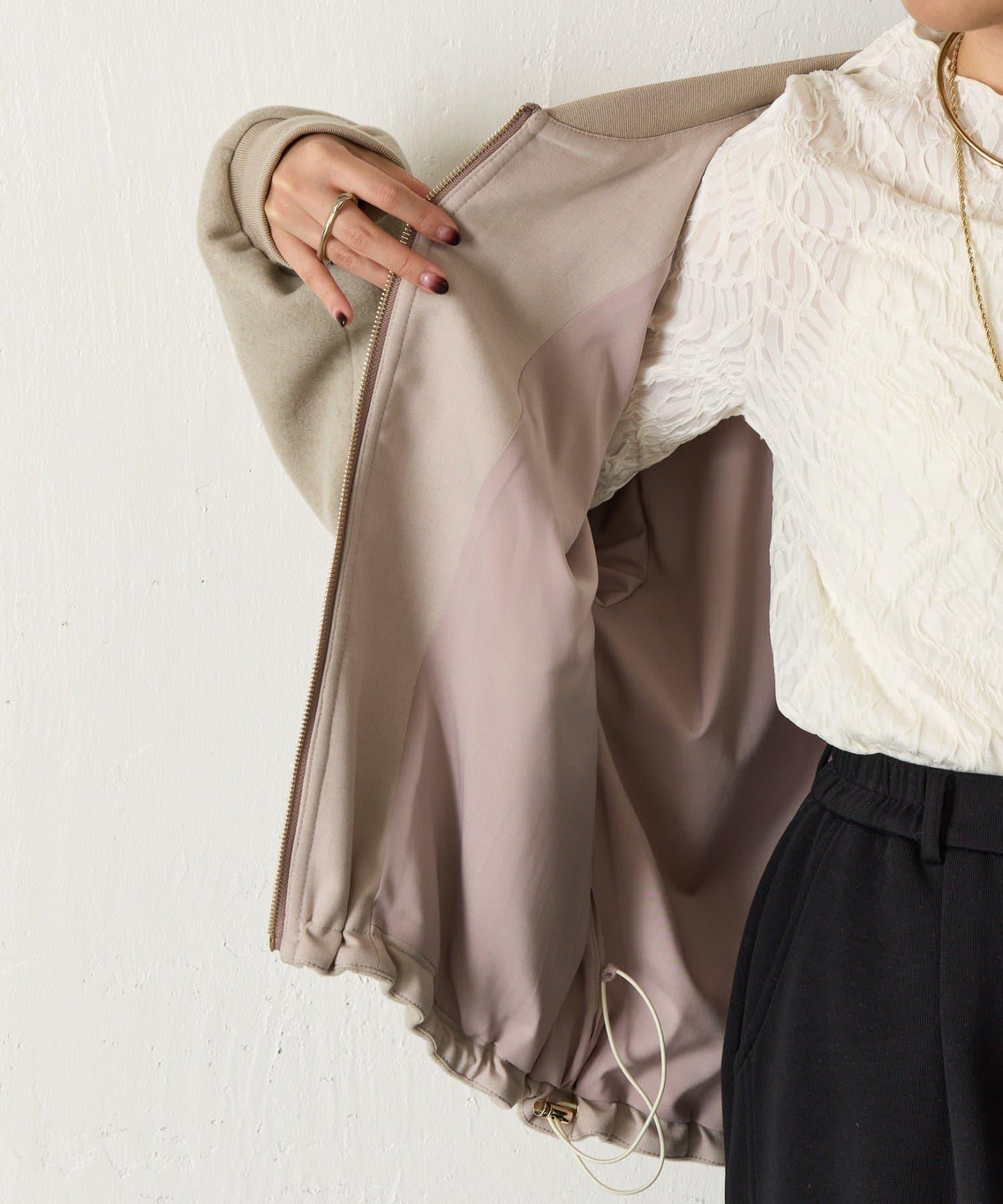 優雅的拉鍊夾克,具有柔軟的拉絨質感,背部有荷葉邊設計。
