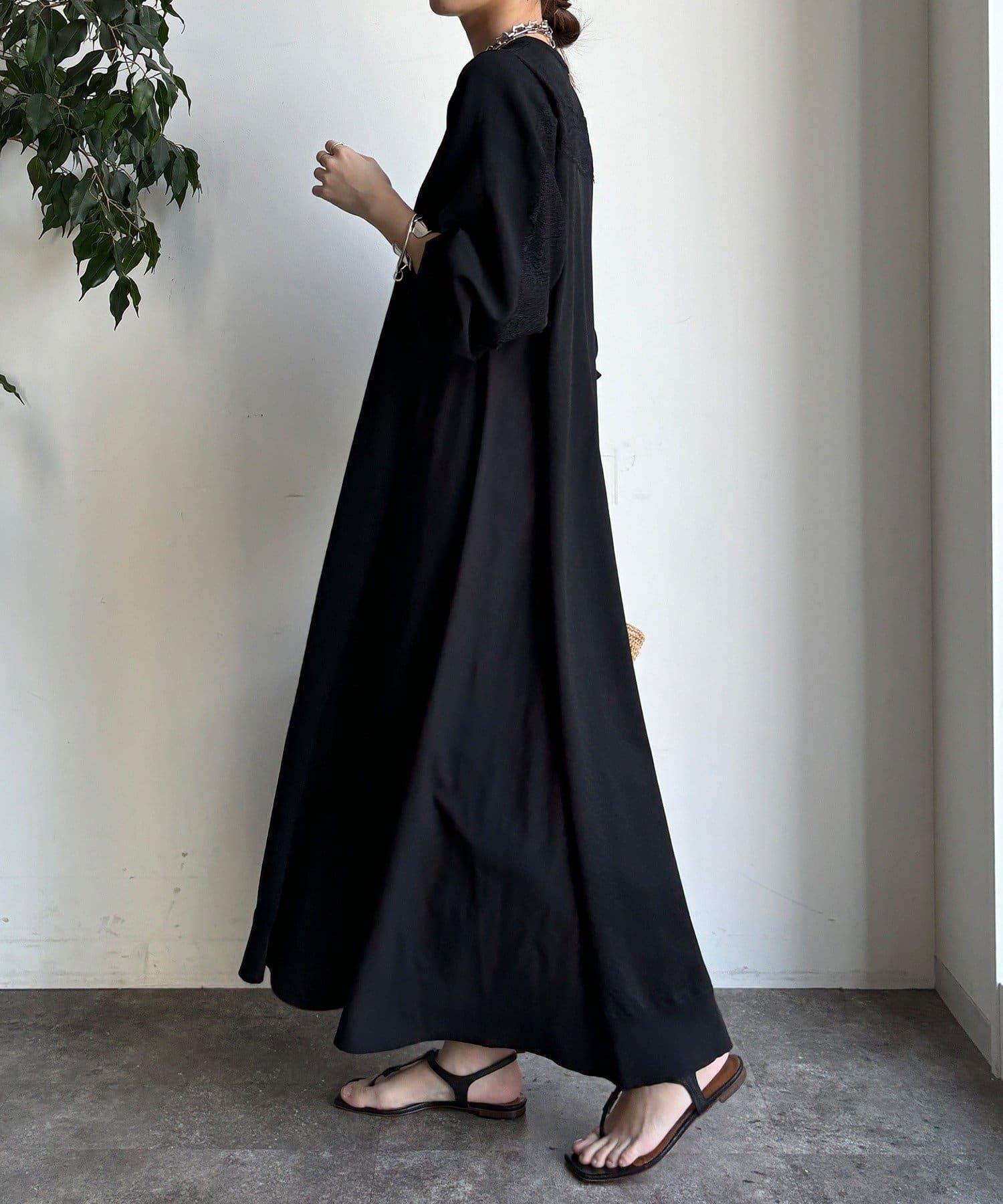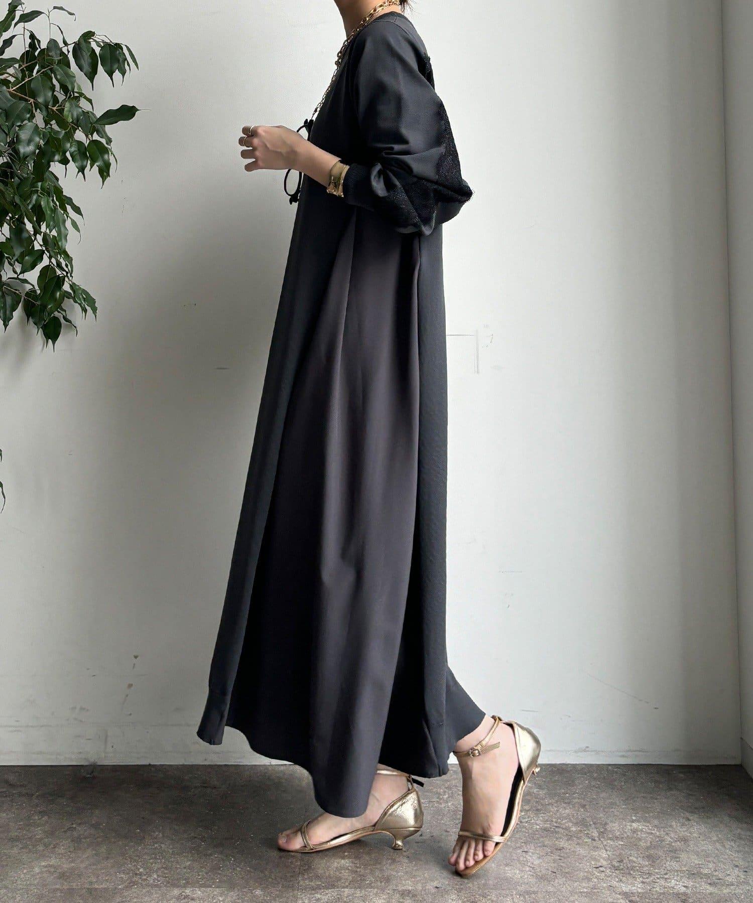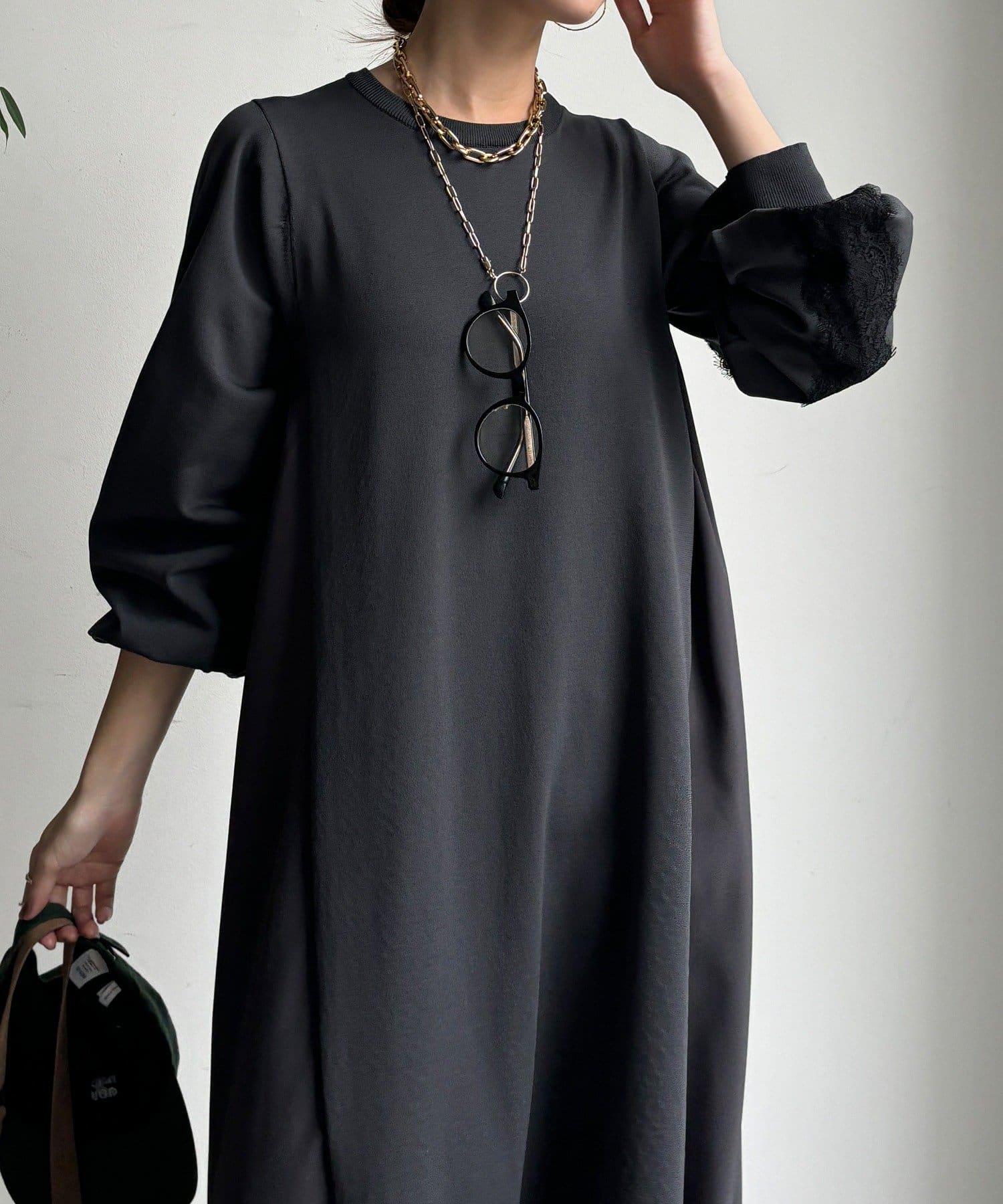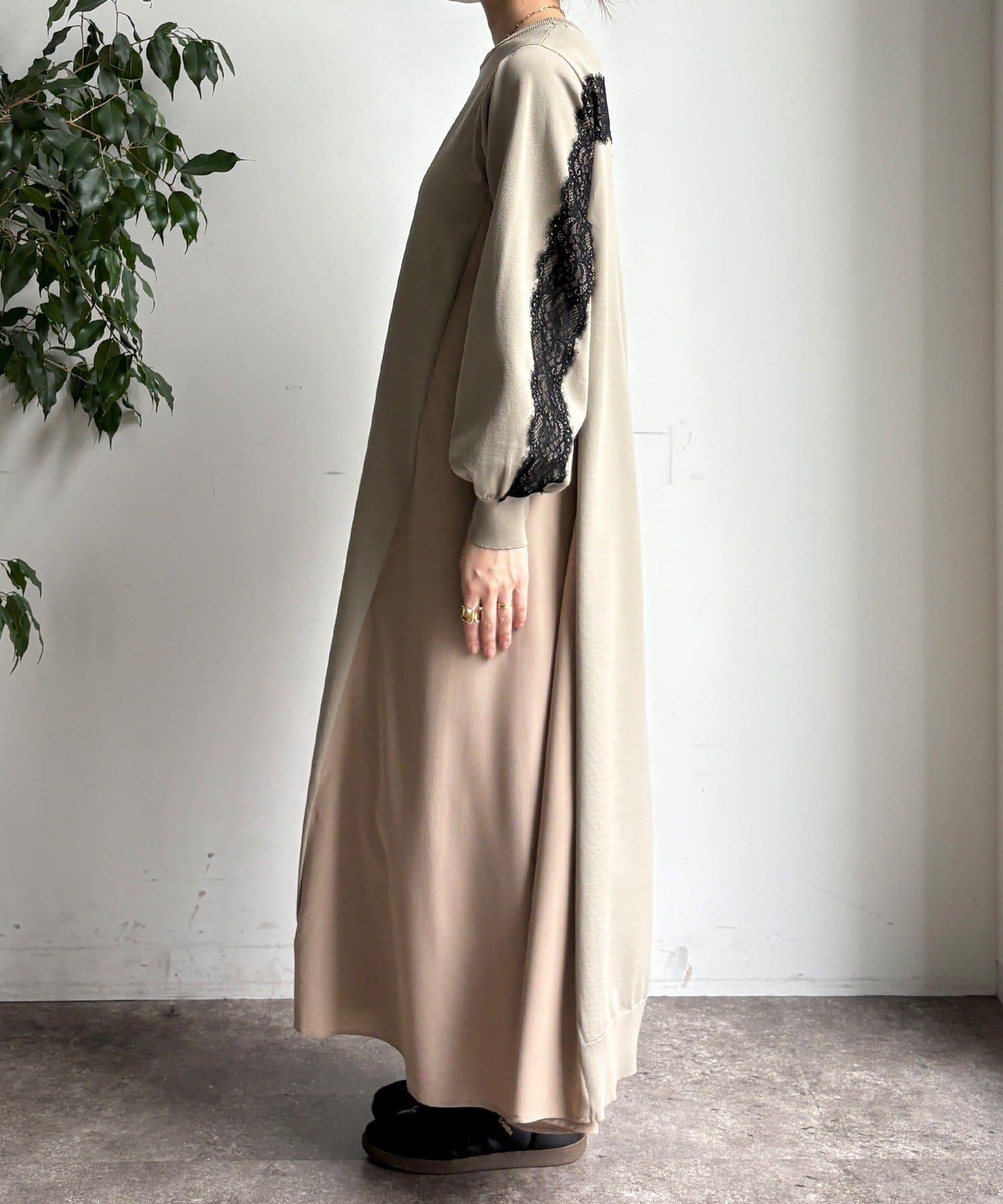 這種蕾絲設計很隨意,不會太普通,是一件很難和別人穿在一起的連身裙。