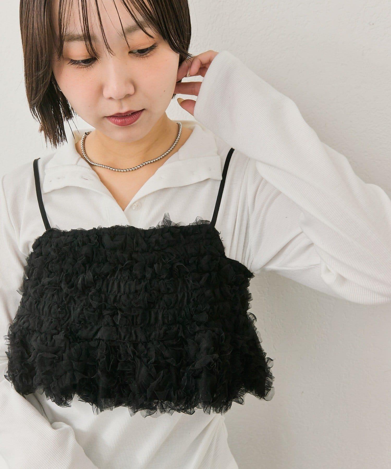 細細的肩帶和短短的長度相得益彰,打造出纖細而時尚的造型。