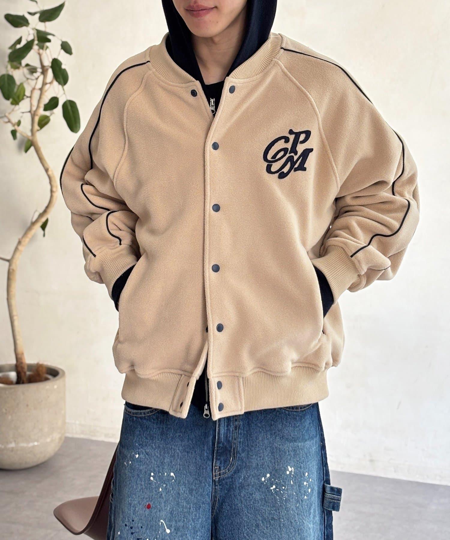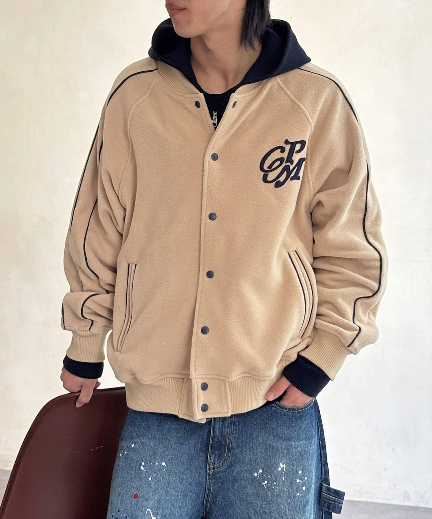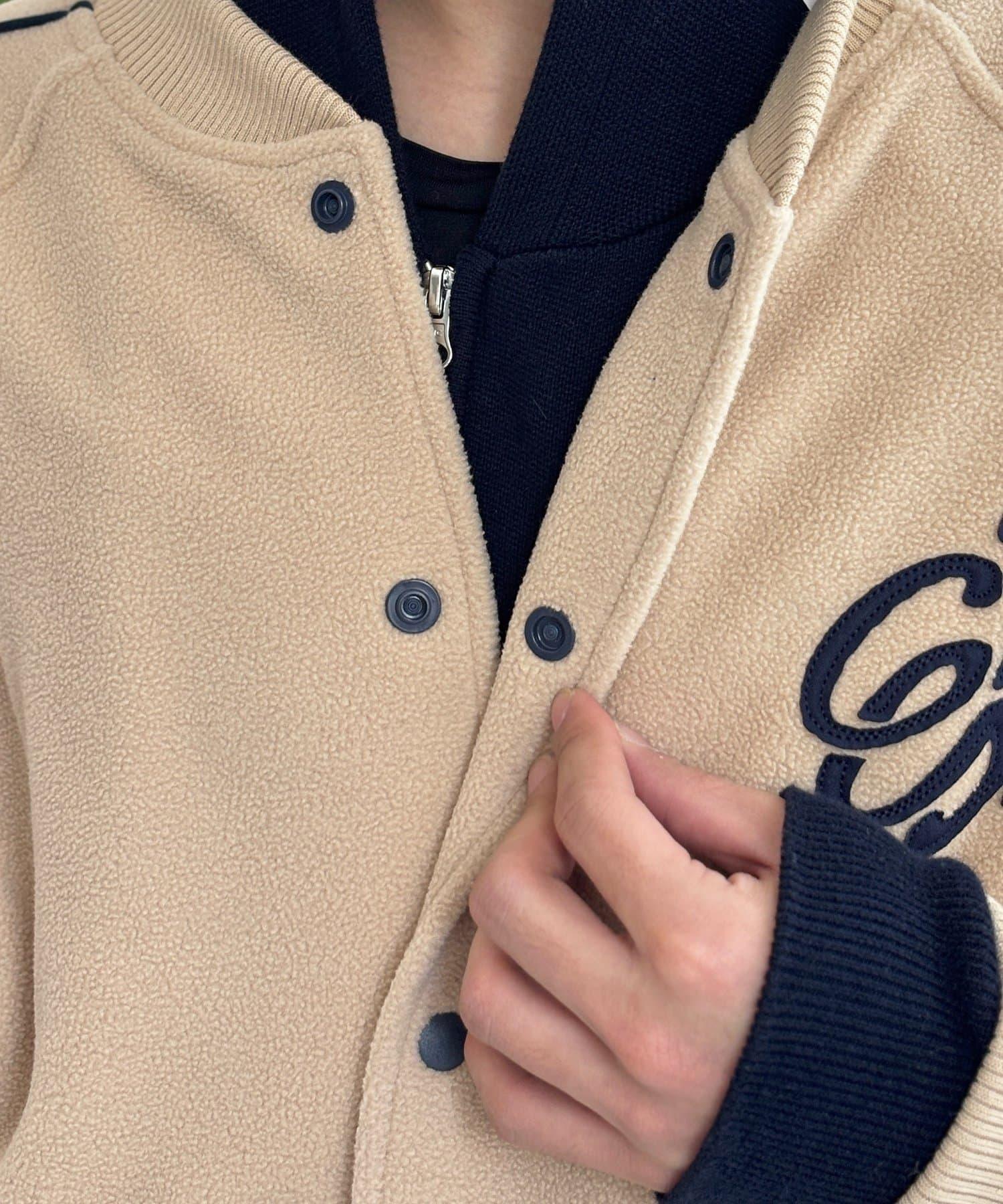 引人注目的體育場夾克,採用彩色滾邊和徽標刺繡。