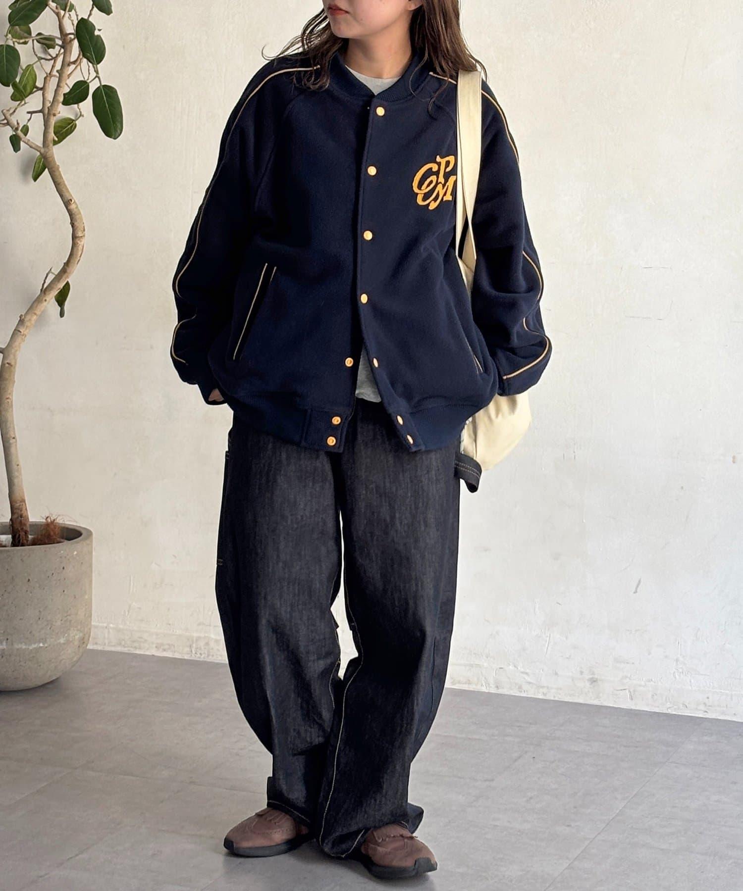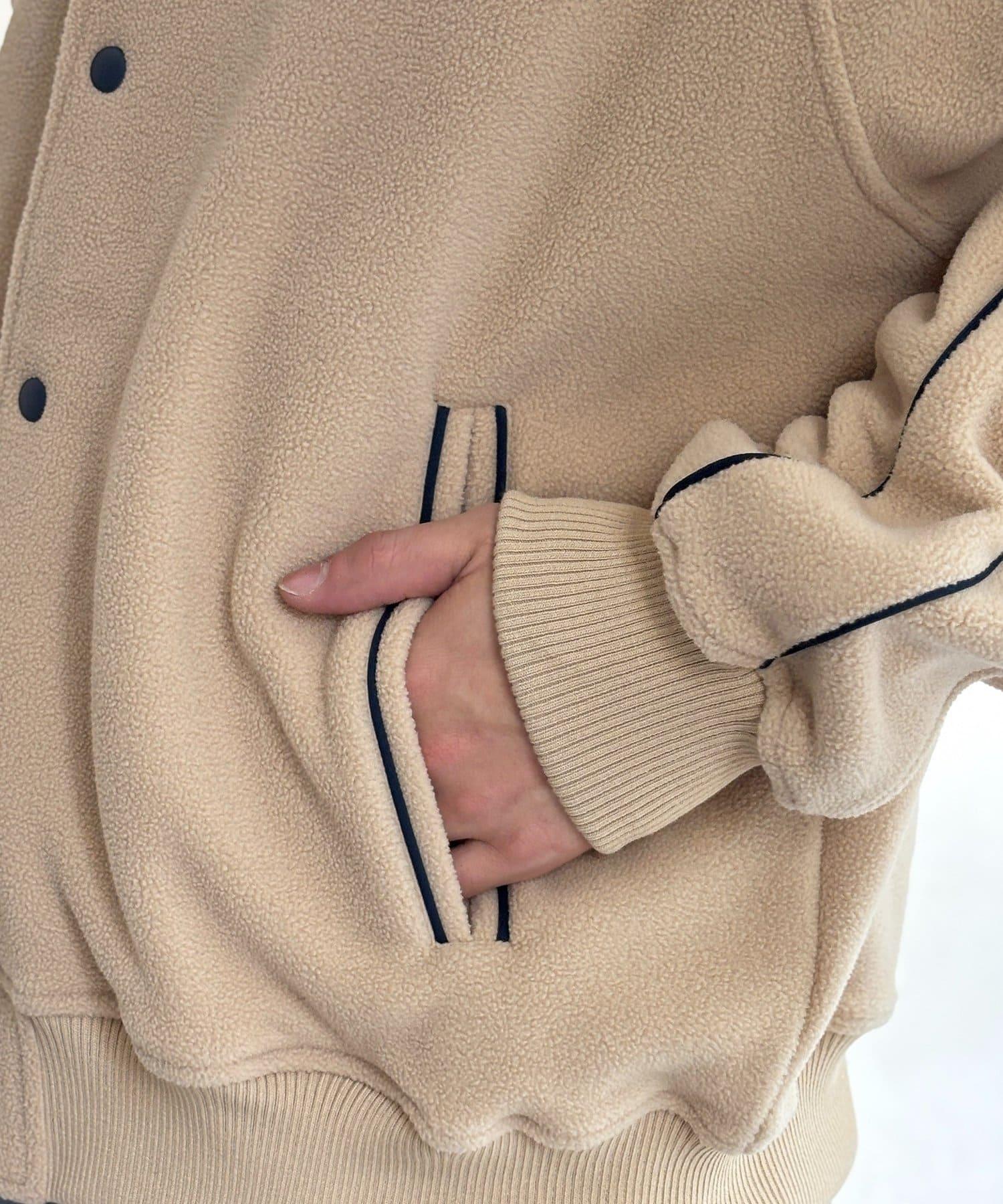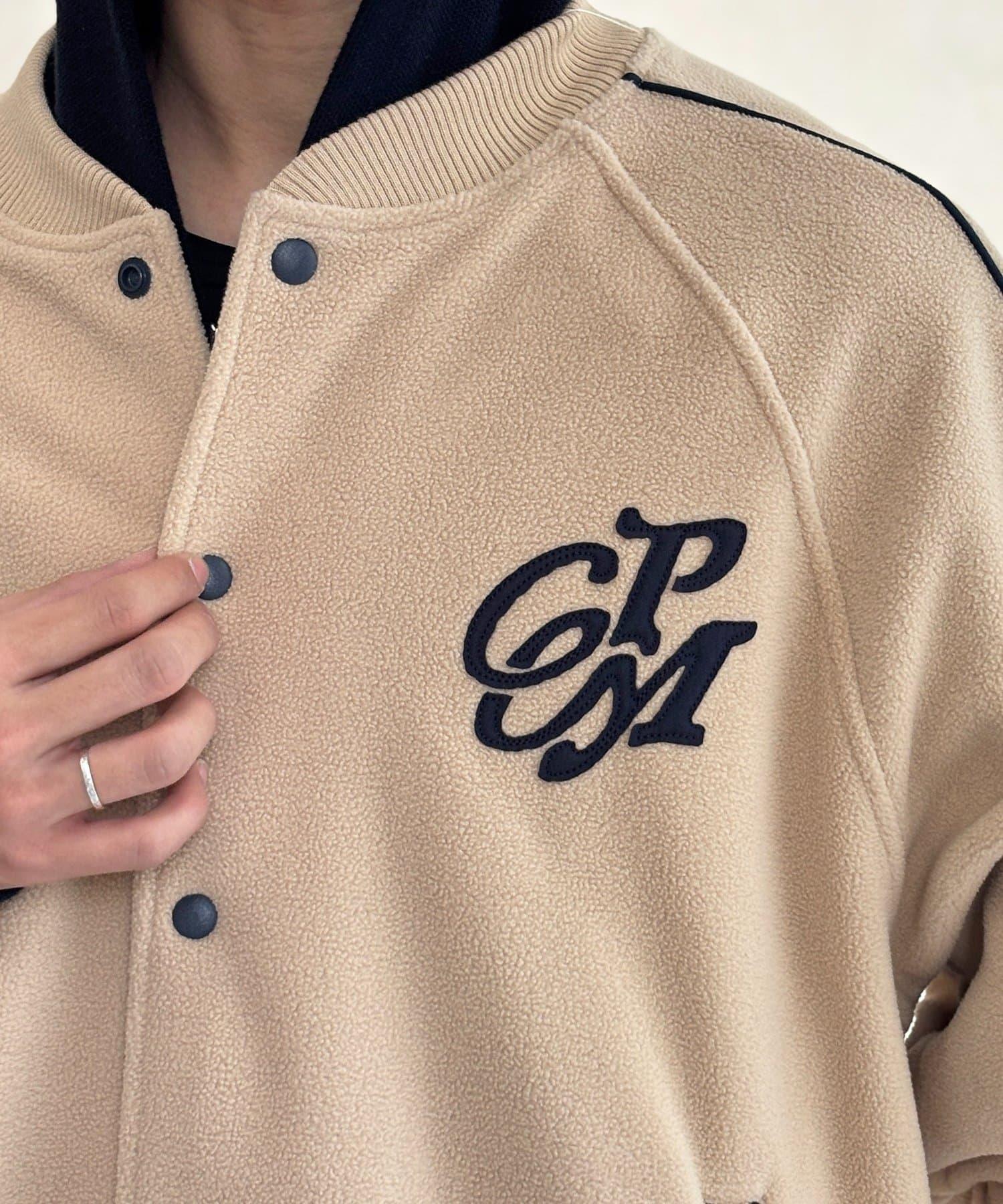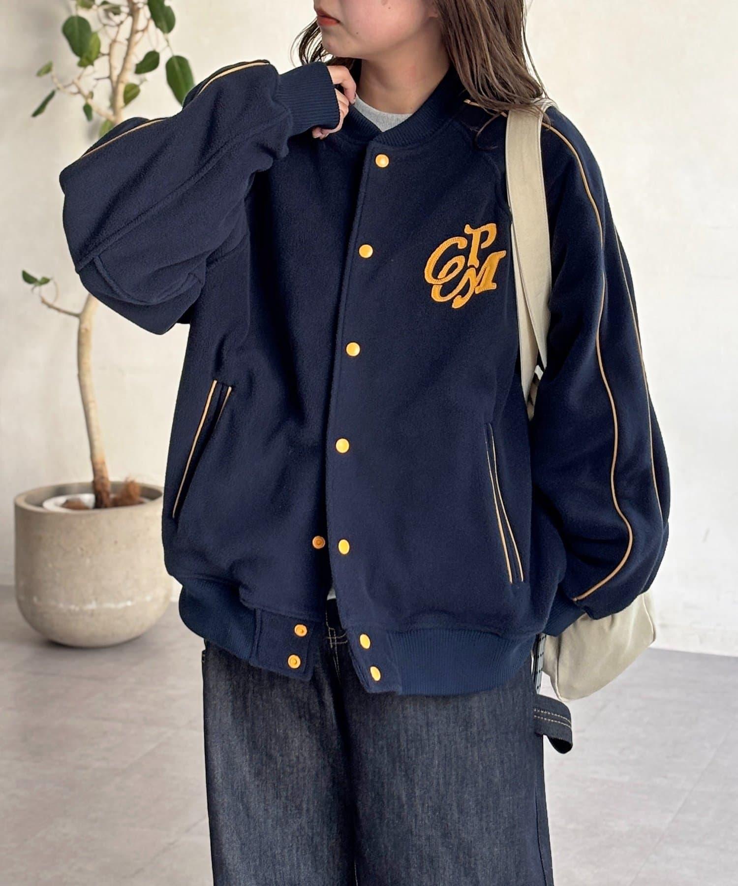 引人注目的體育場夾克,採用彩色滾邊和徽標刺繡。