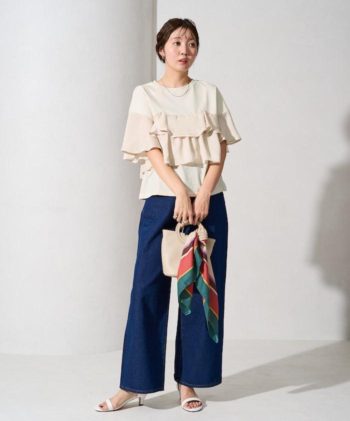 搭配簡單的直筒牛仔褲,凸顯流蘇效果。