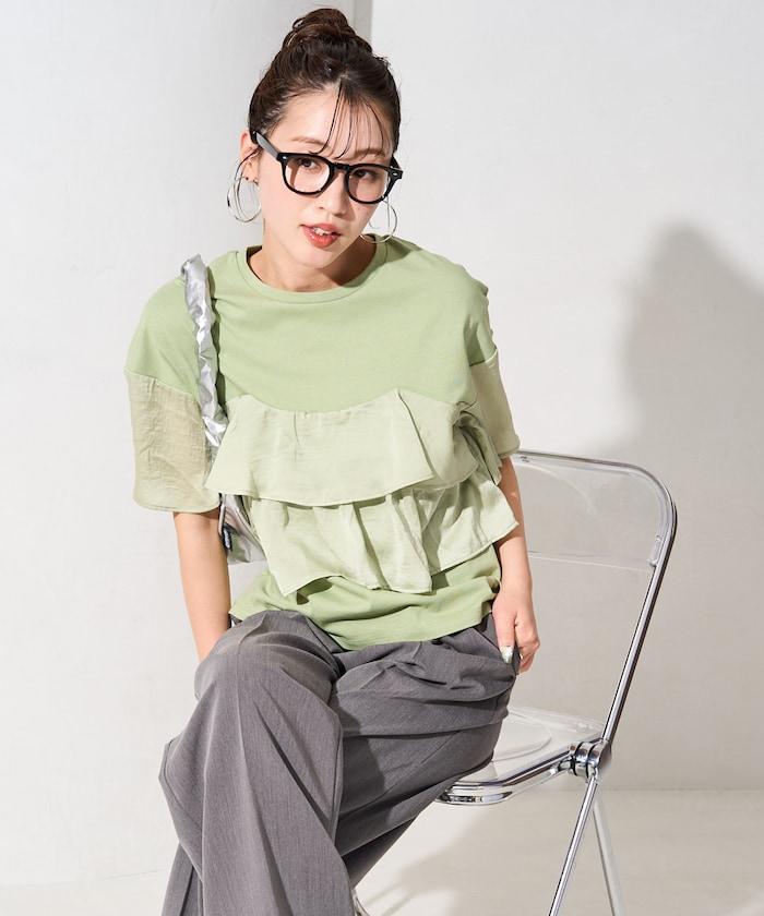 胸衣風 鋪層 褶邊 短袖 上衣