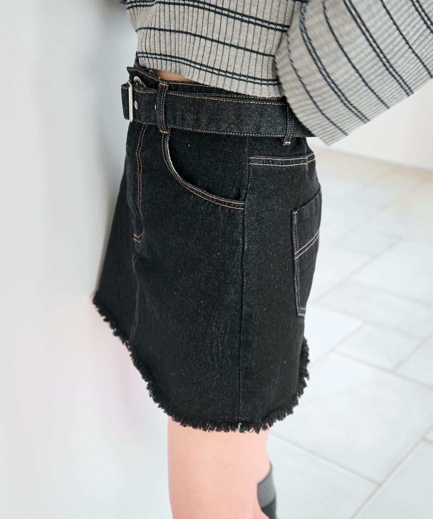 腰帶牛仔迷你裙