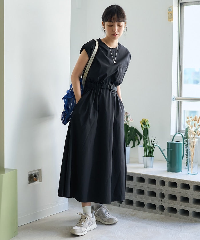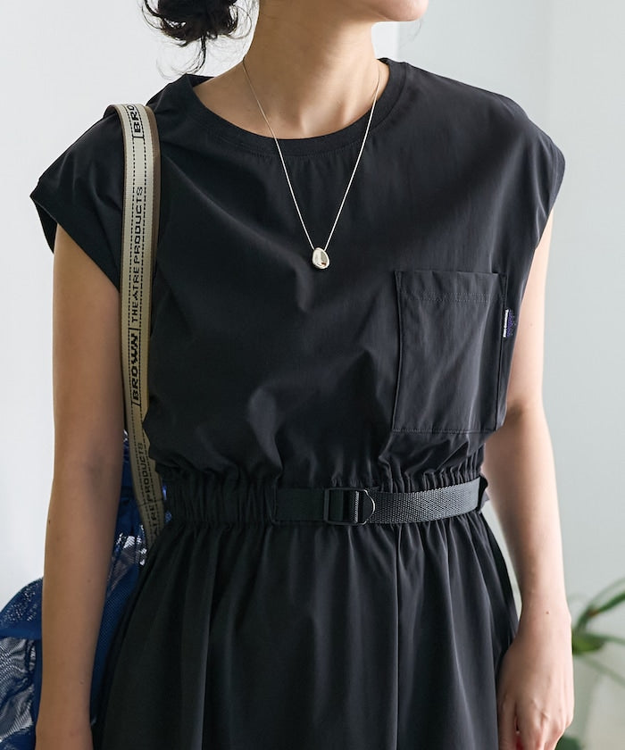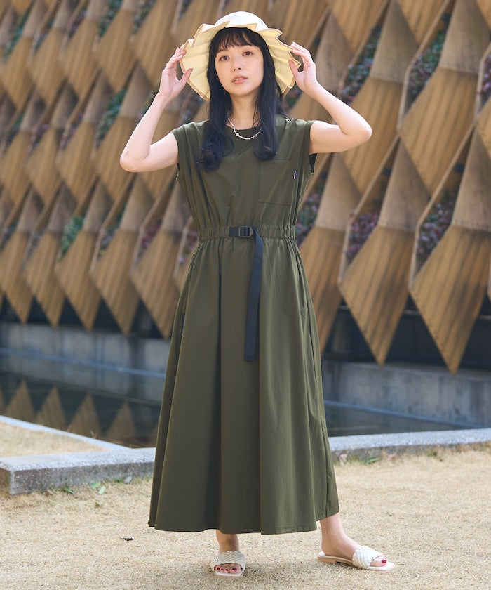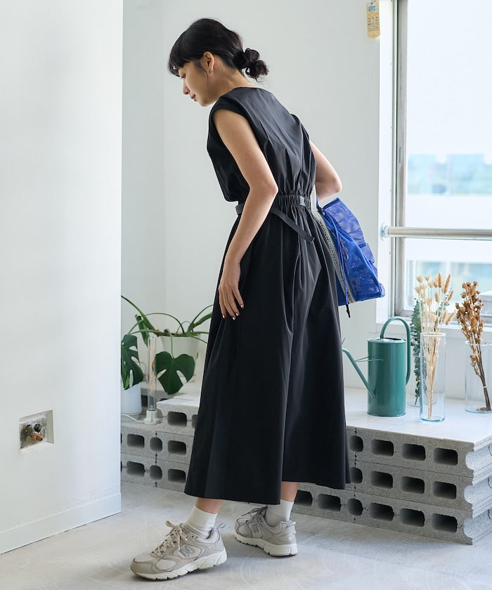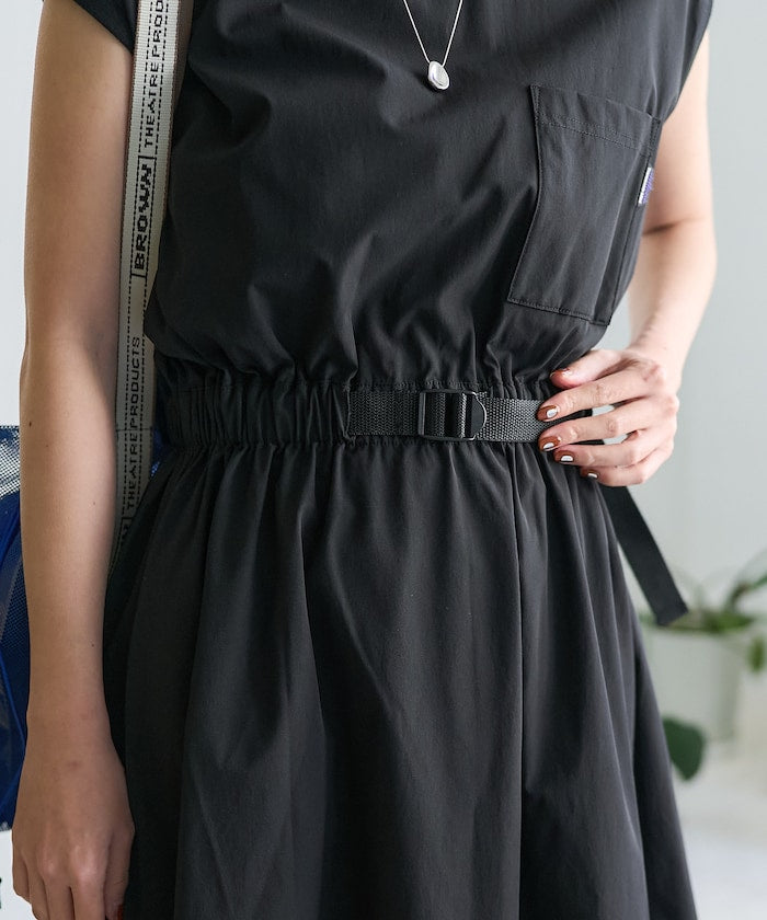 這款連衣裙採用 THOUSAND MILE 的獨創面料,由輕質高強度尼龍和可伸縮聚氨酯編織而成。