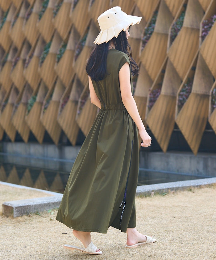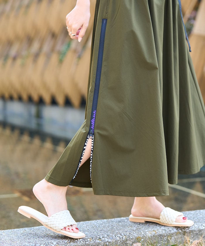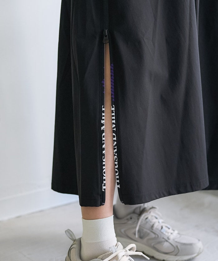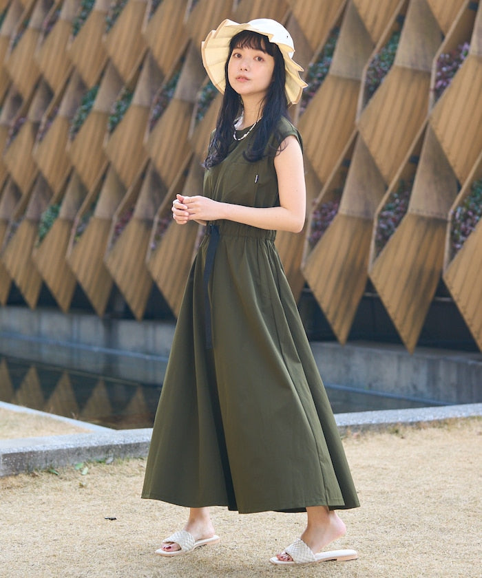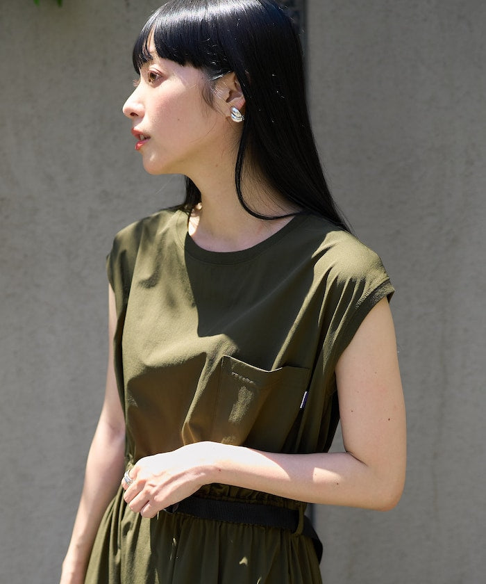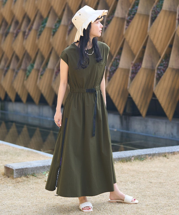 這款連衣裙採用 THOUSAND MILE 的獨創面料,由輕質高強度尼龍和可伸縮聚氨酯編織而成。