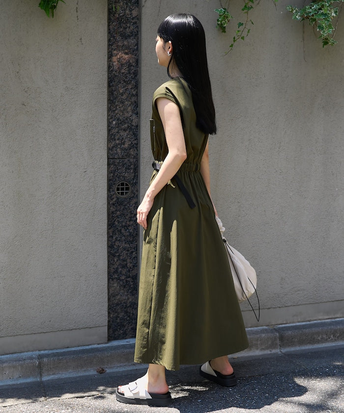 一款可通過腰帶和法式袖子進行造型的連衣裙。