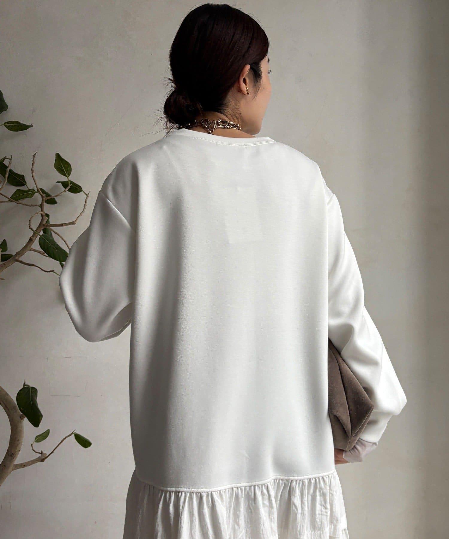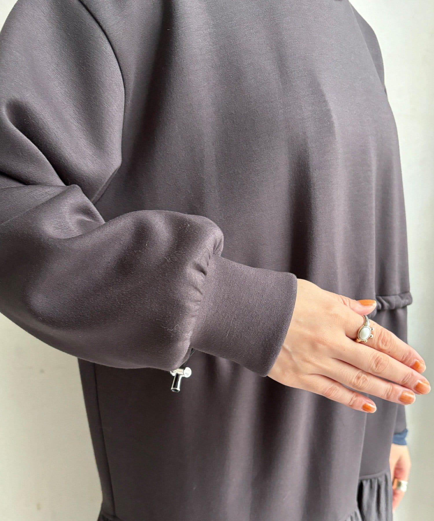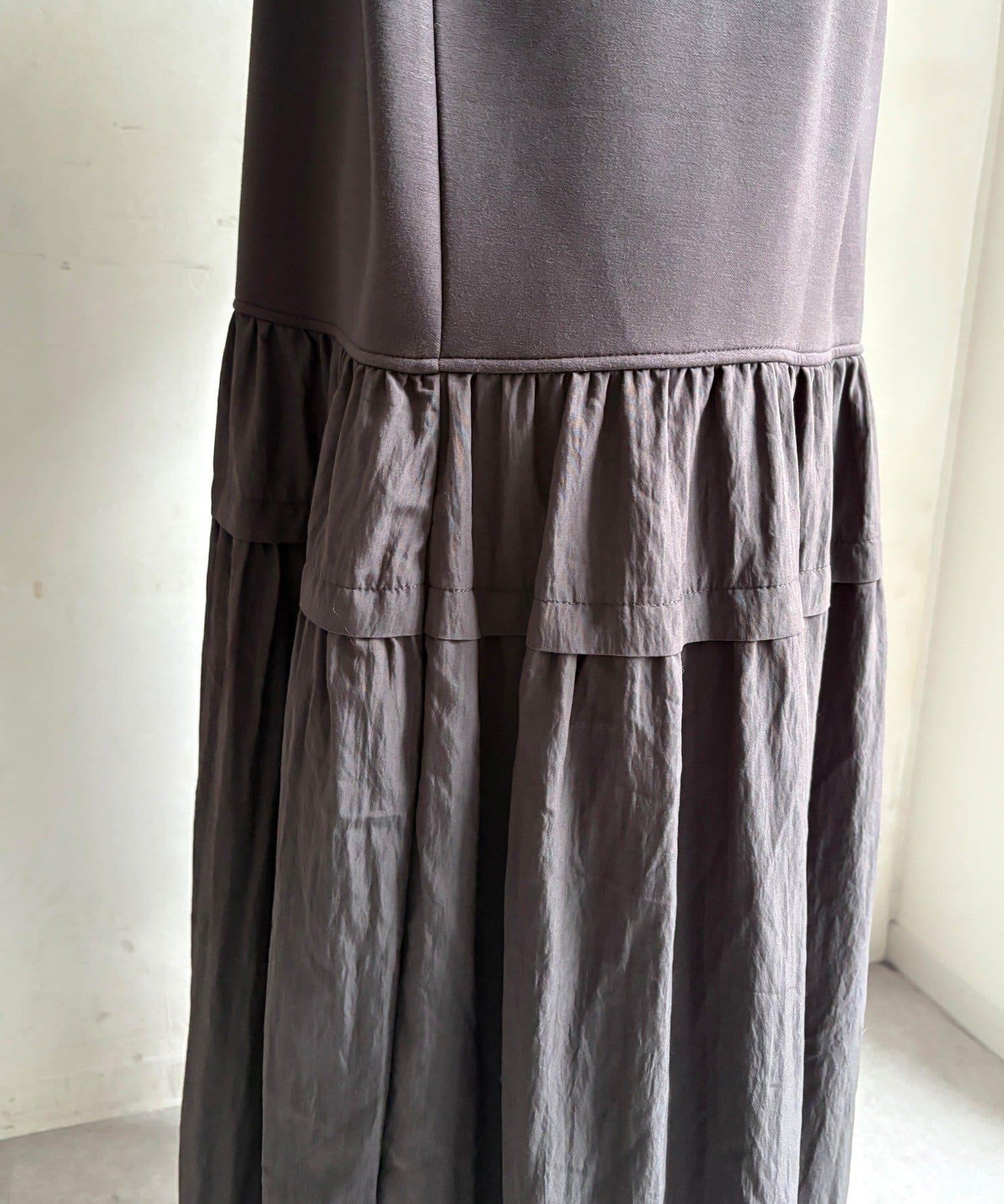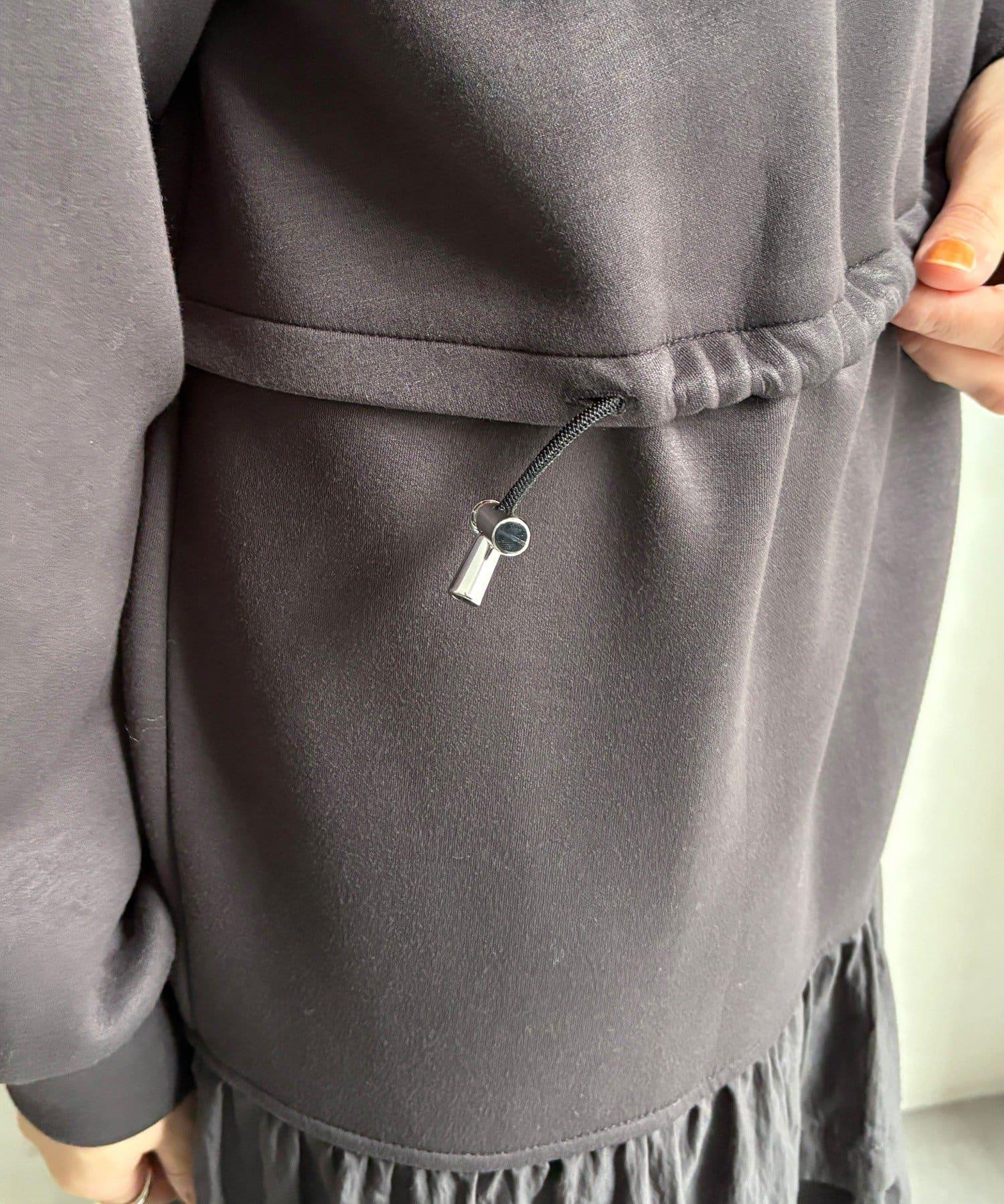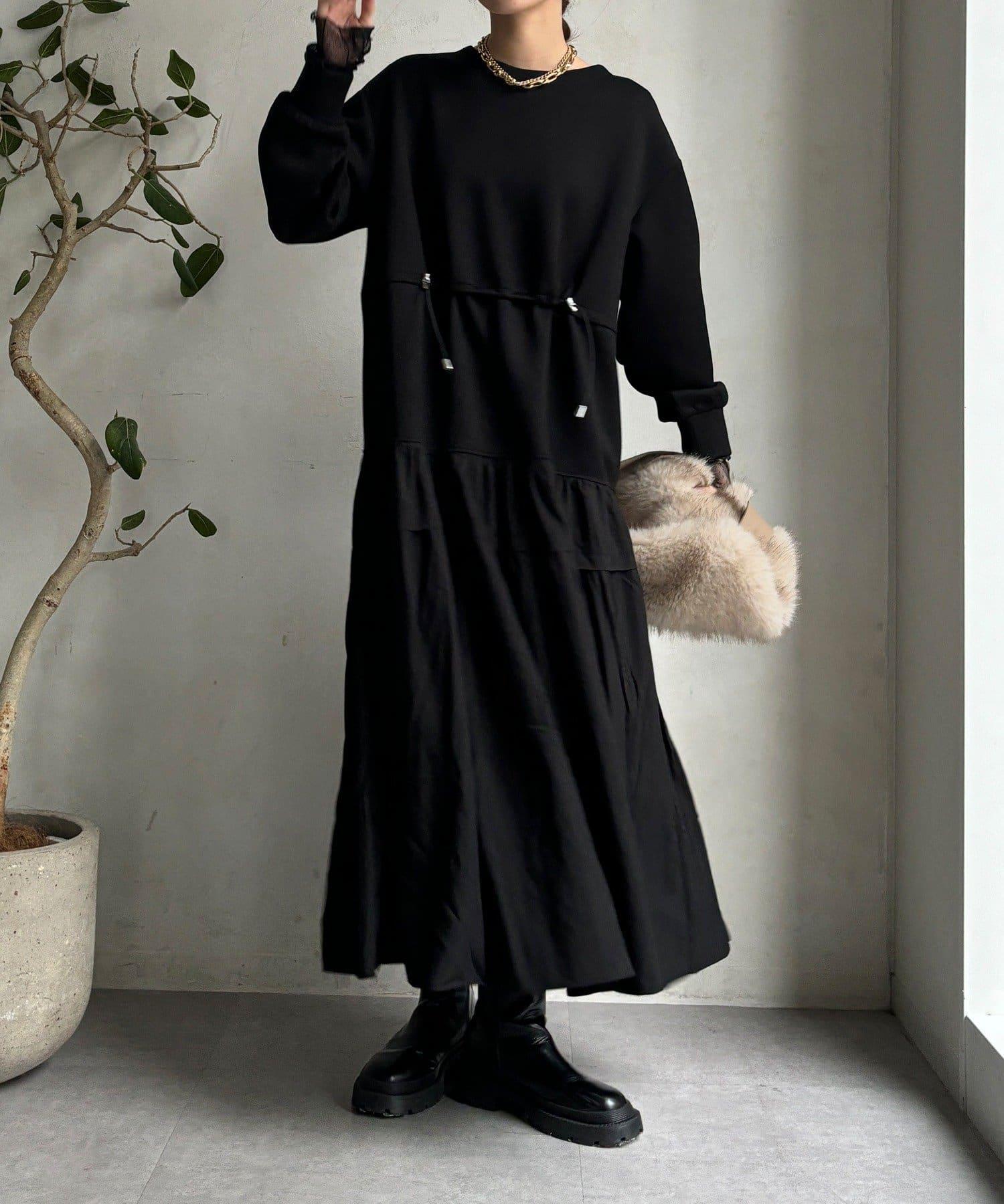 不同面料的變換帶來恰到好處的彈力和落差,增添了優雅的印象,使這款連衣裙成為適用於各種場合的百搭連衣裙。