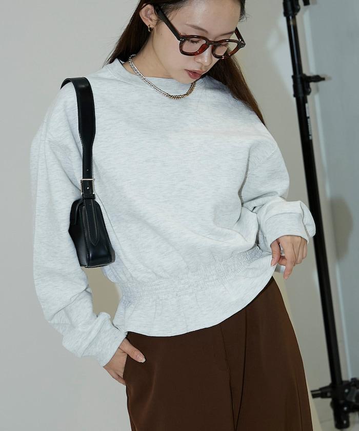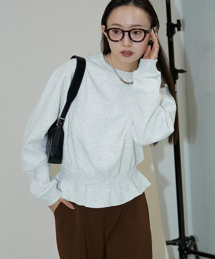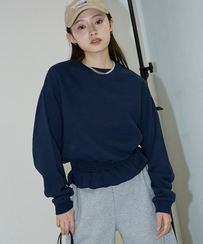 休閒女性化的汗衫套頭衫,腰部採用束腰設計。