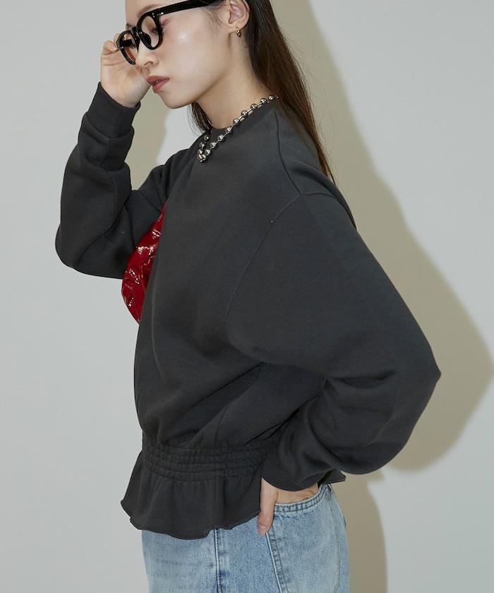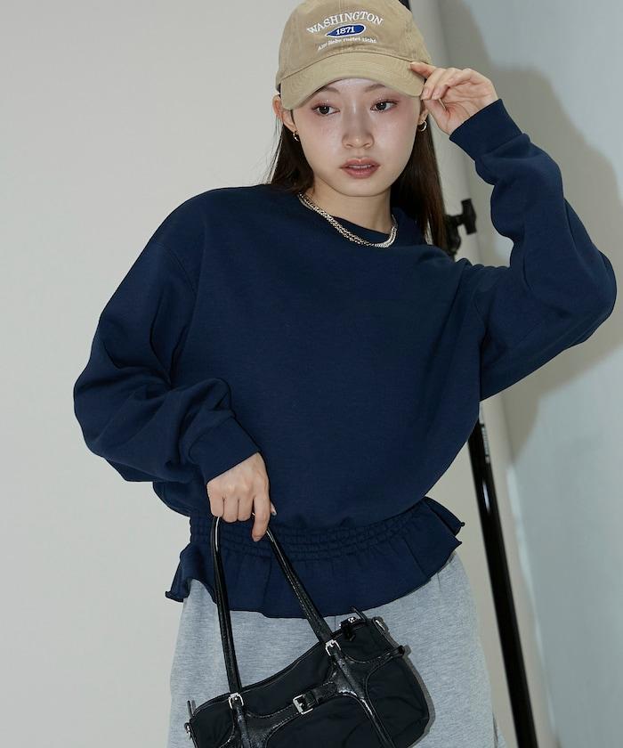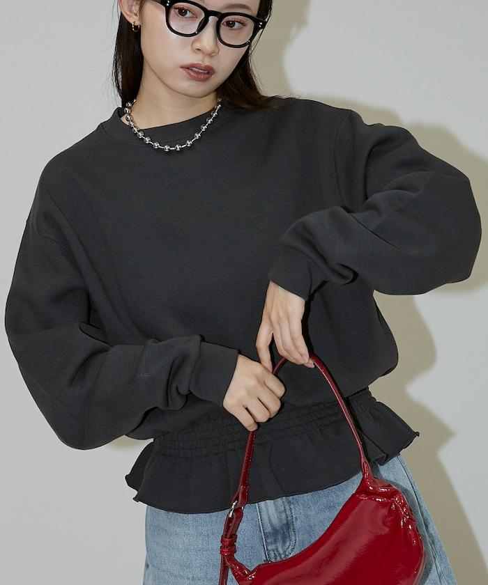 蓬蓬裙式的廓形搭配柔和的下襬,雖然是運動衫,卻給人女性化的印象。
