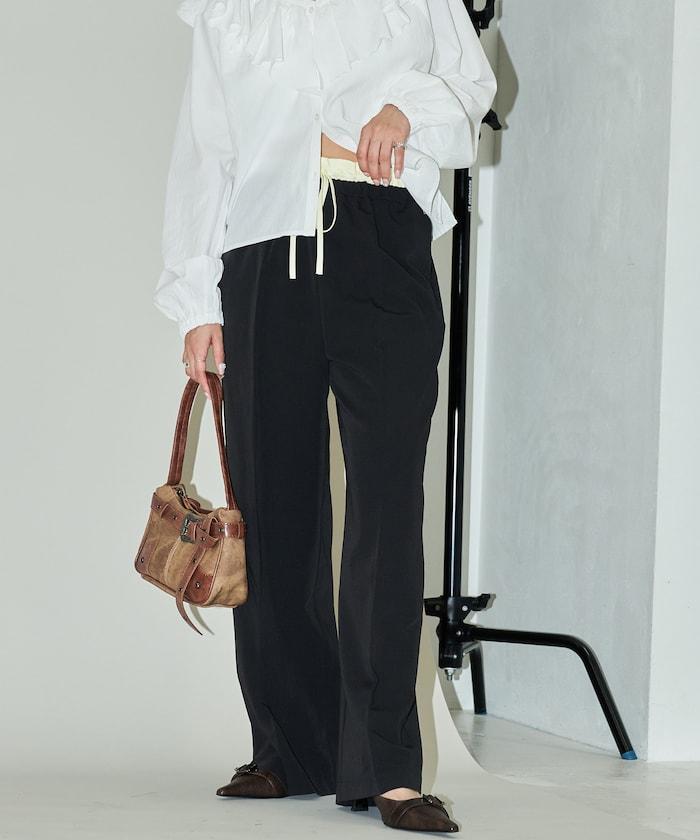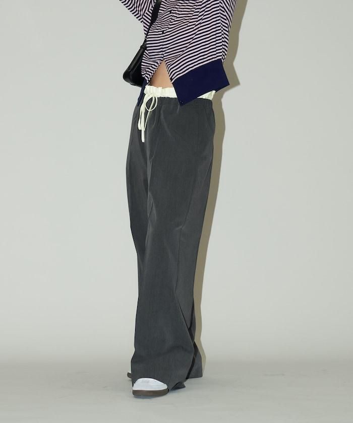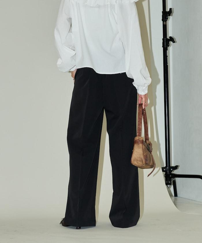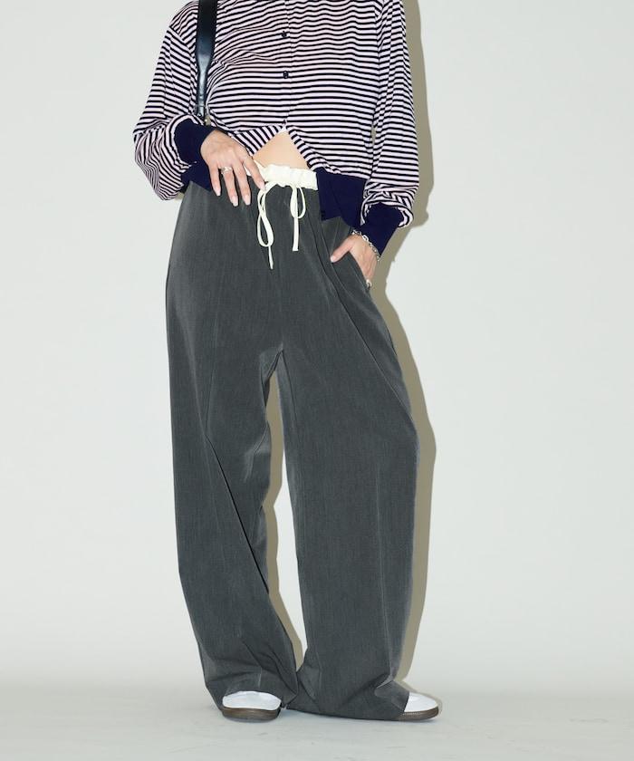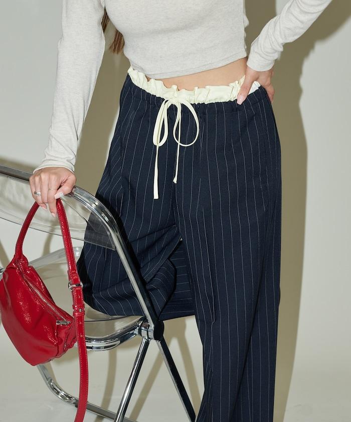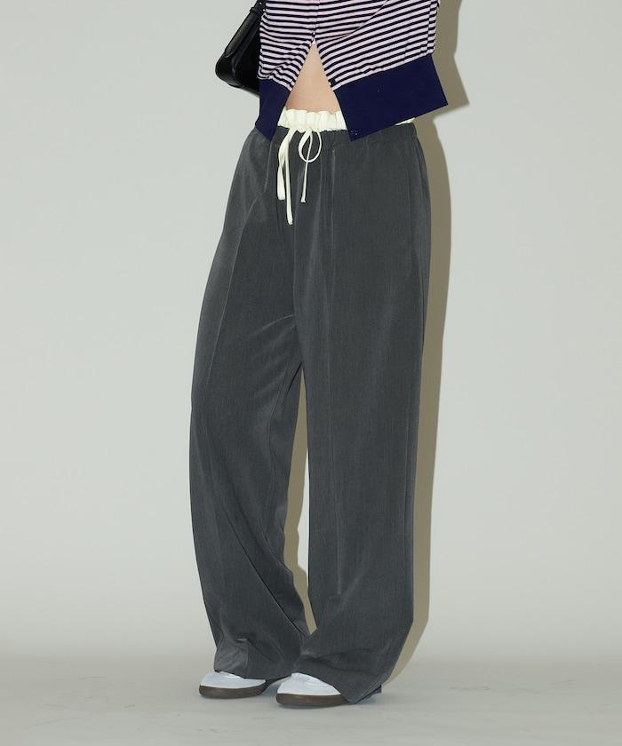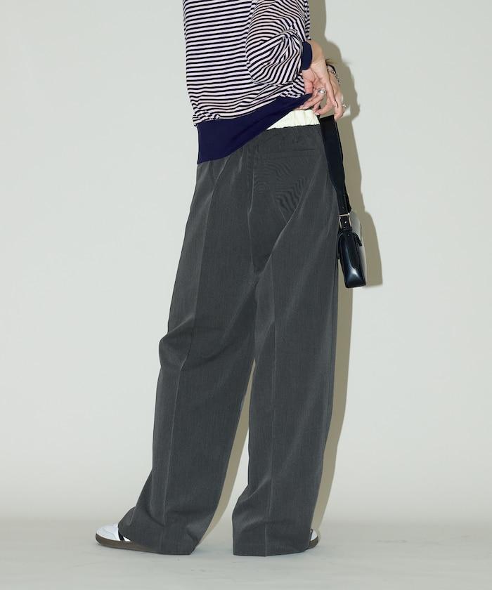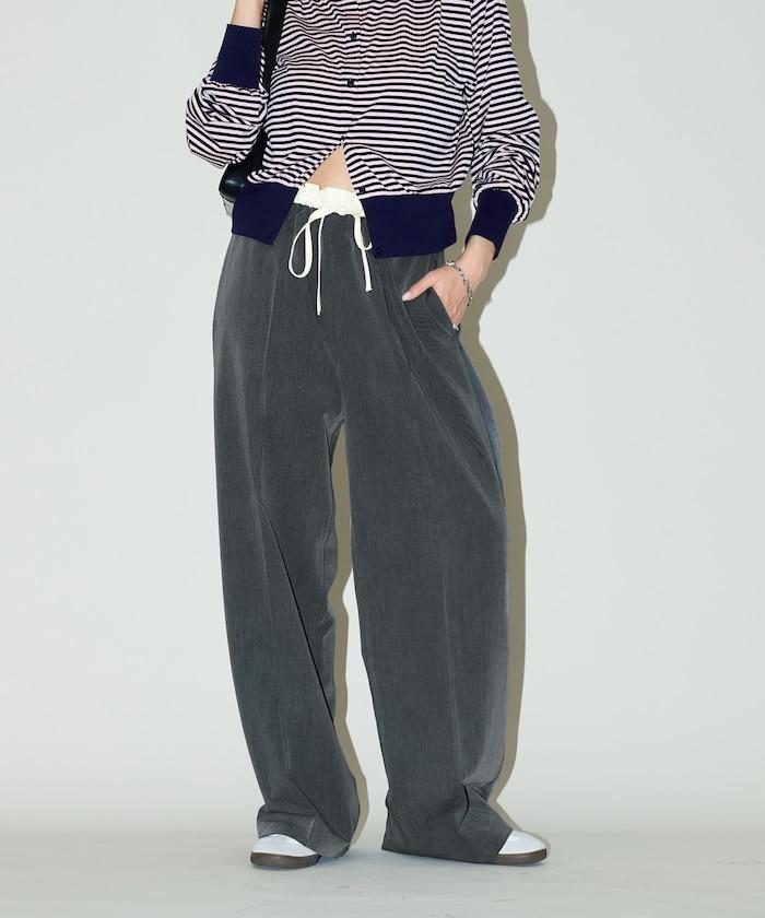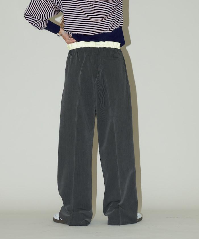 腰部收褶拼接休閒西褲褲子