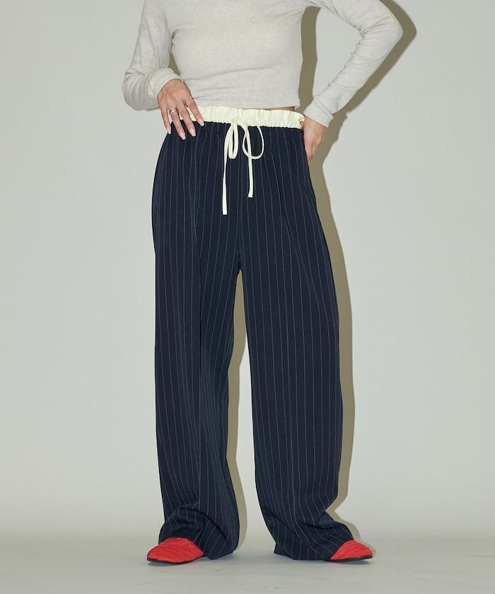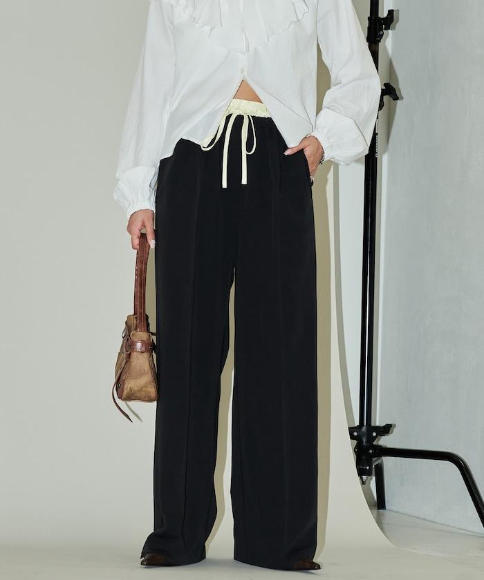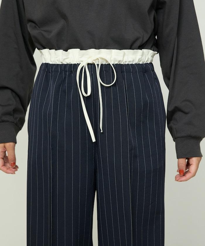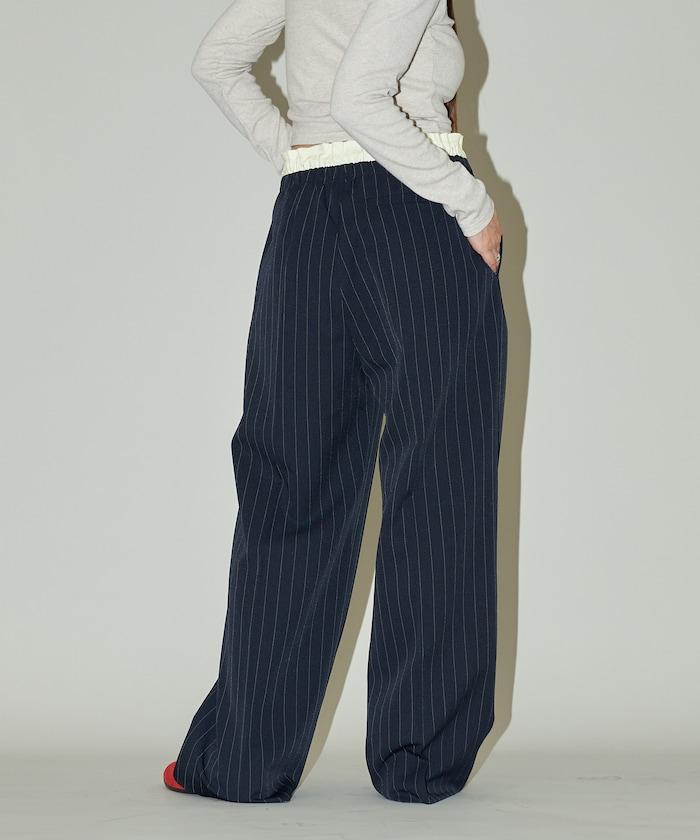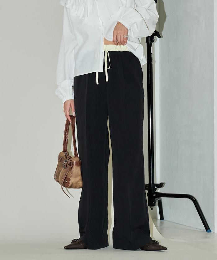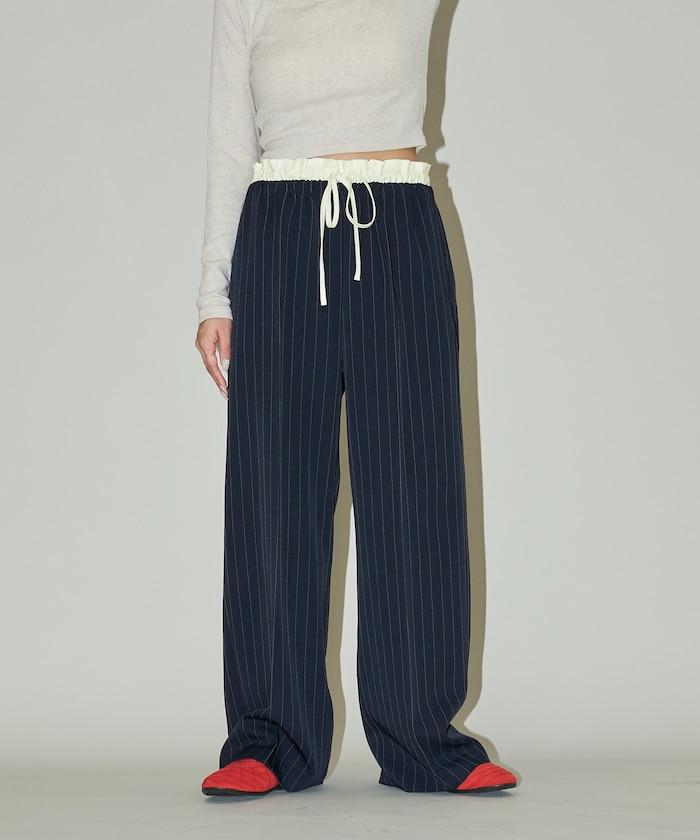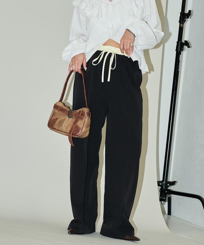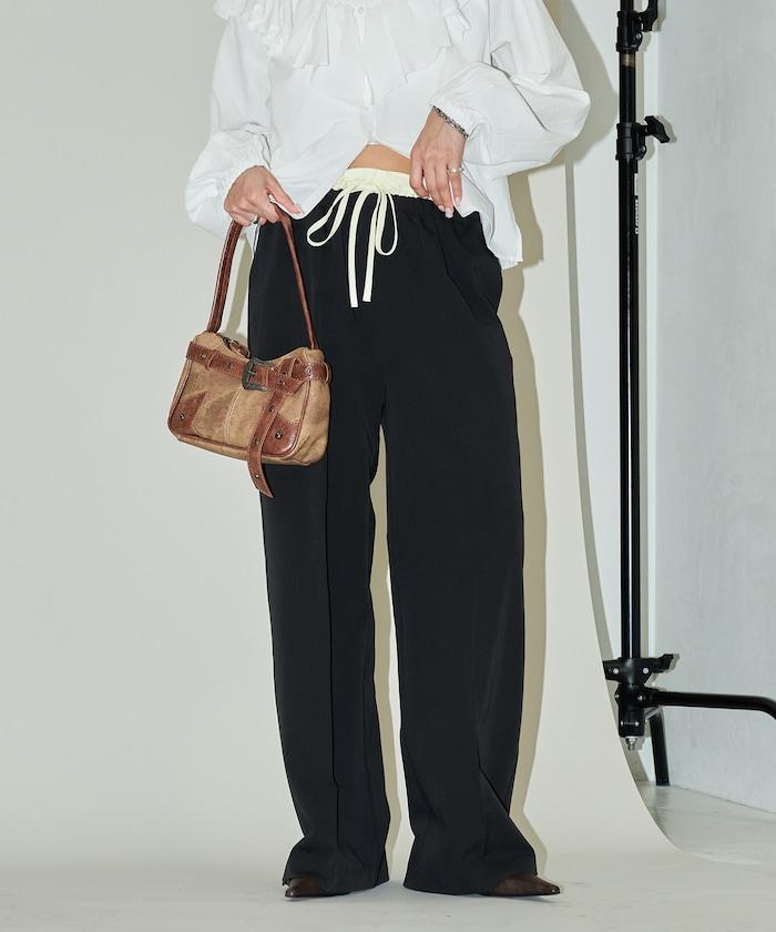 腰部收褶拼接休閒西褲褲子
