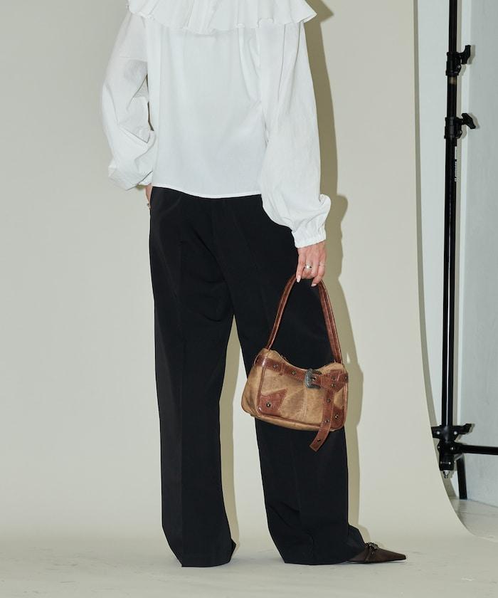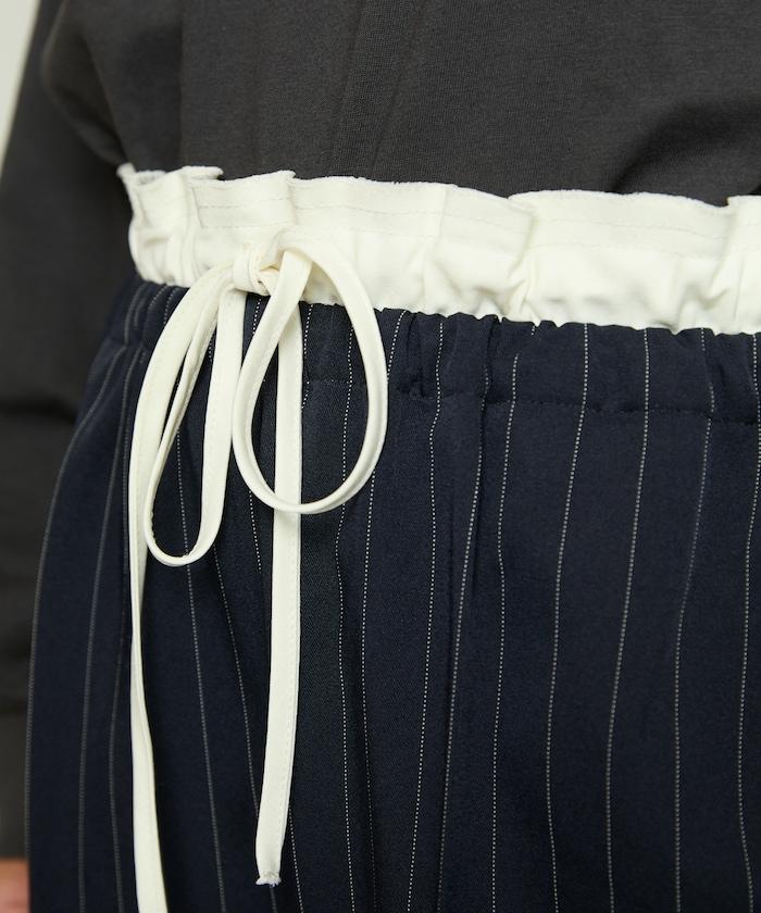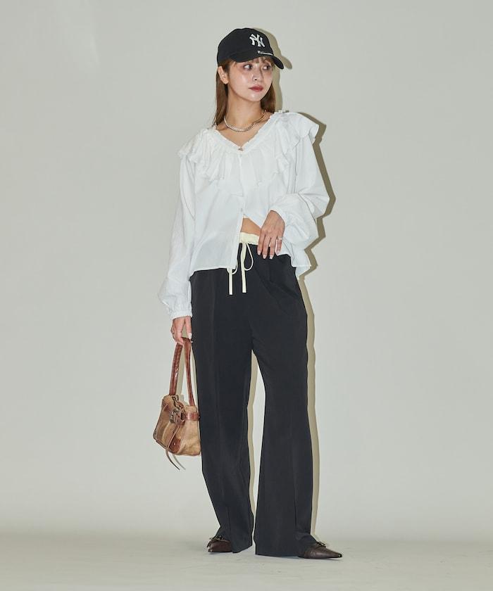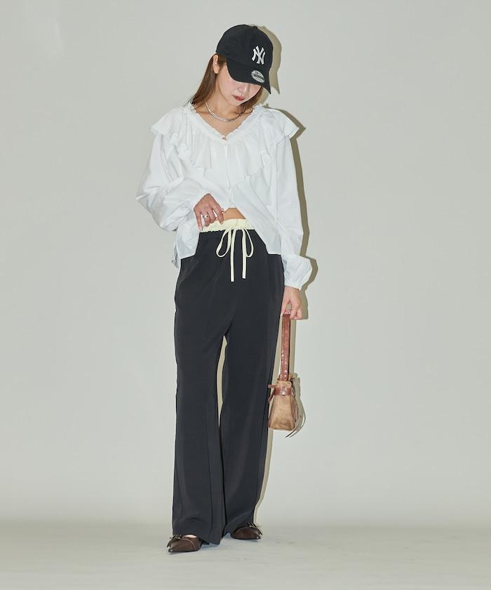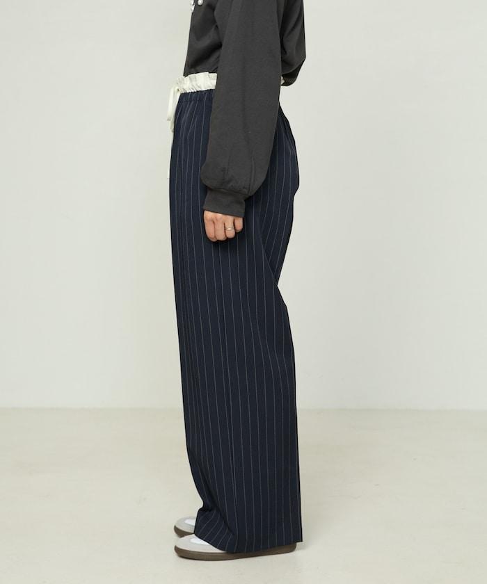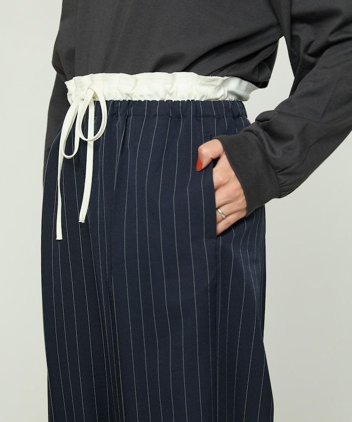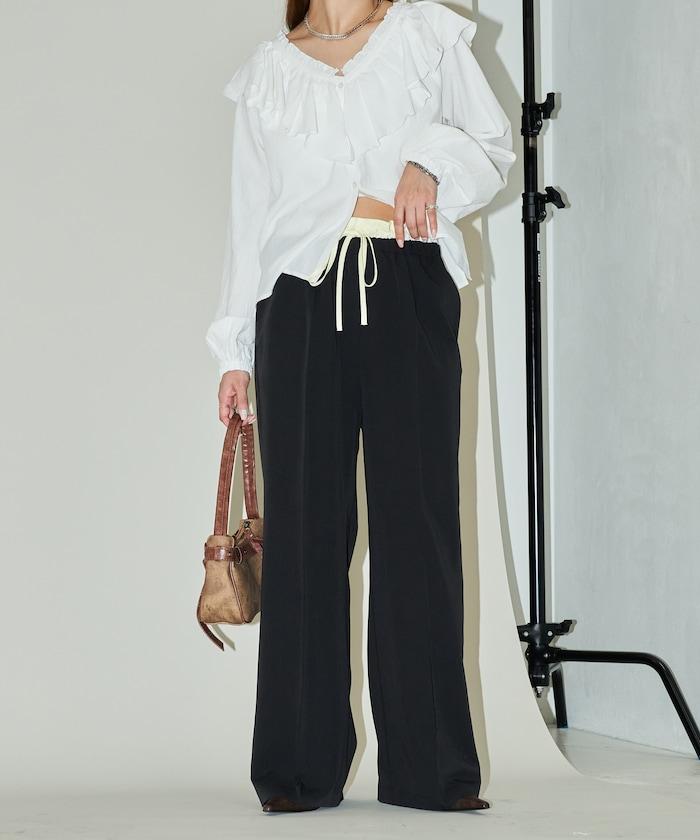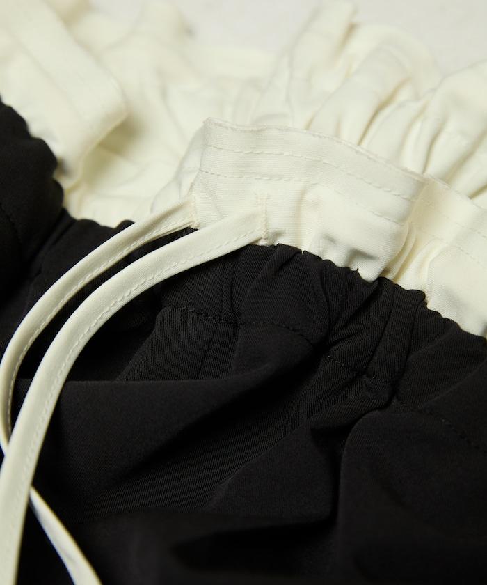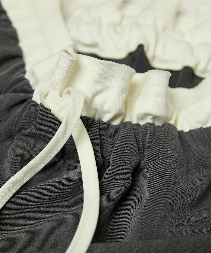 腰部收褶拼接休閒西褲褲子